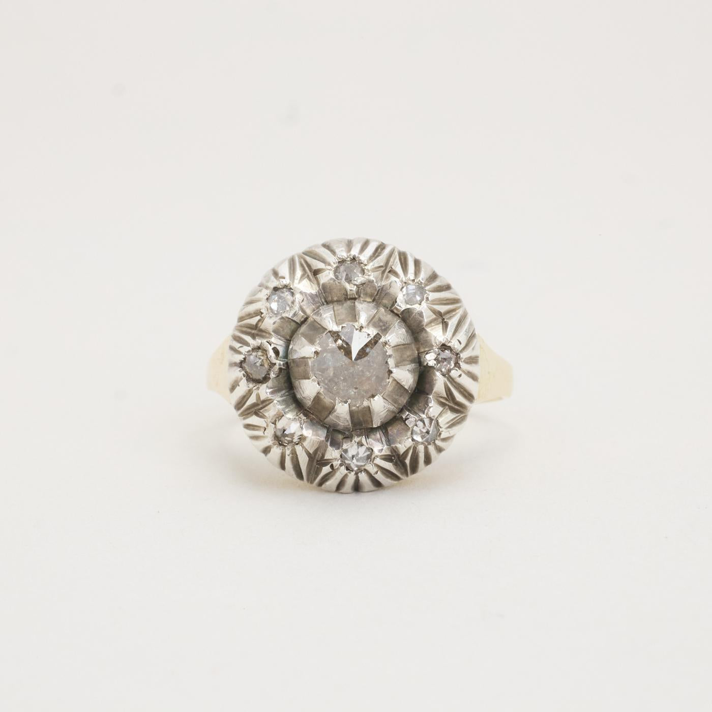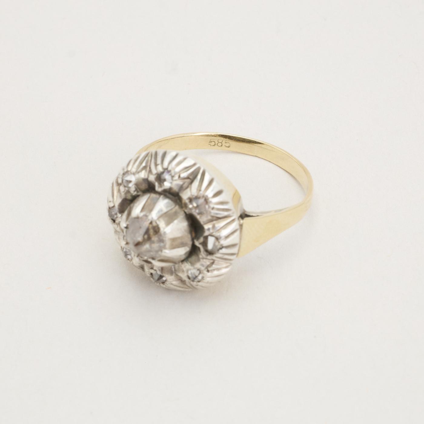 Rosettring med diamant (0.3 ct) i 14 karat str. 52