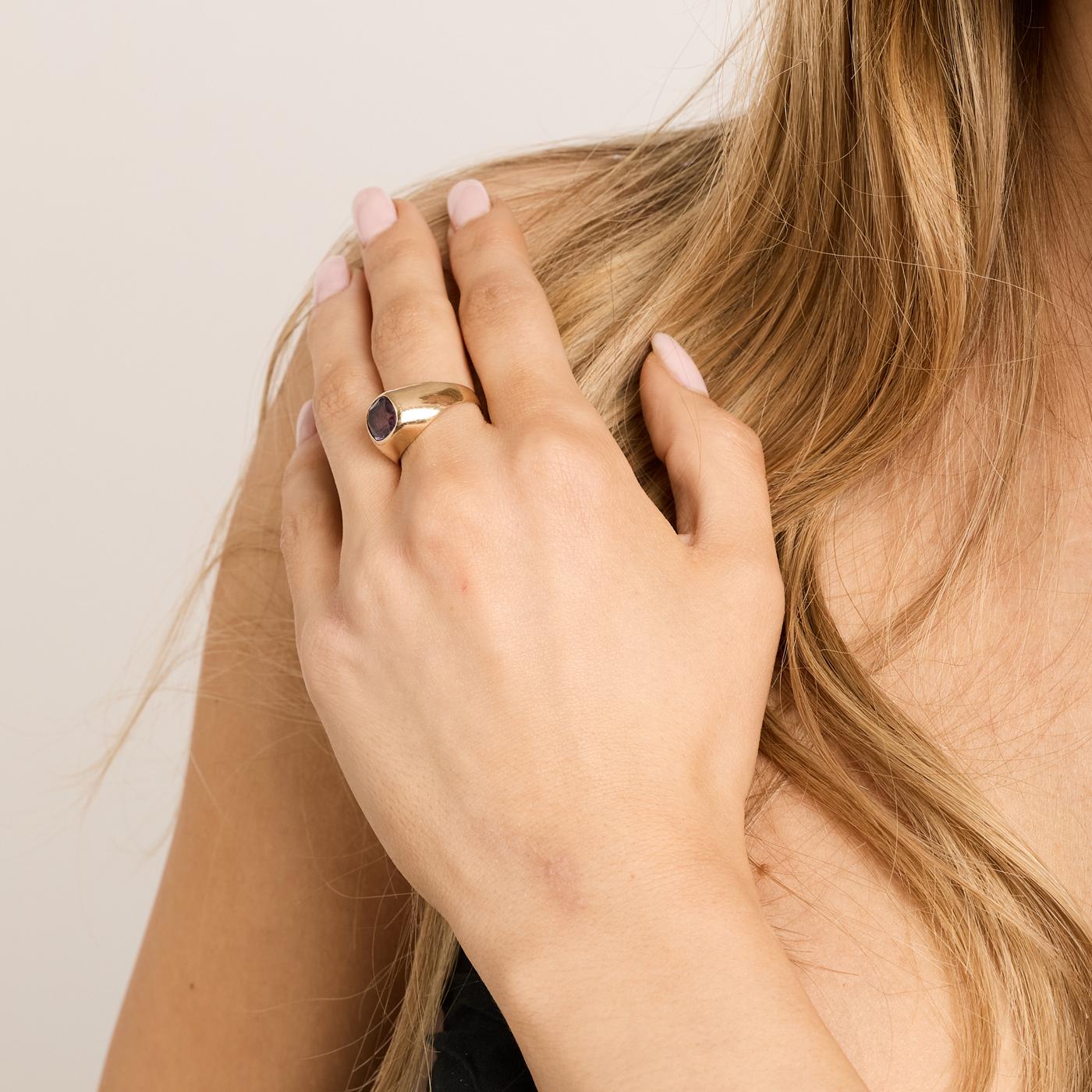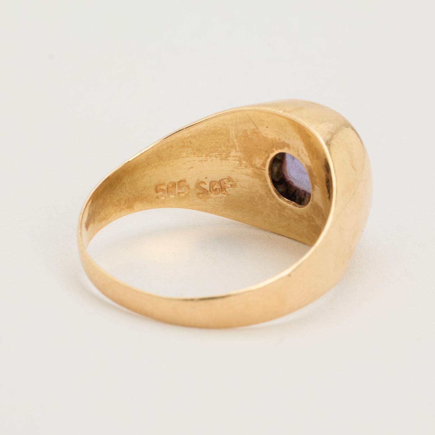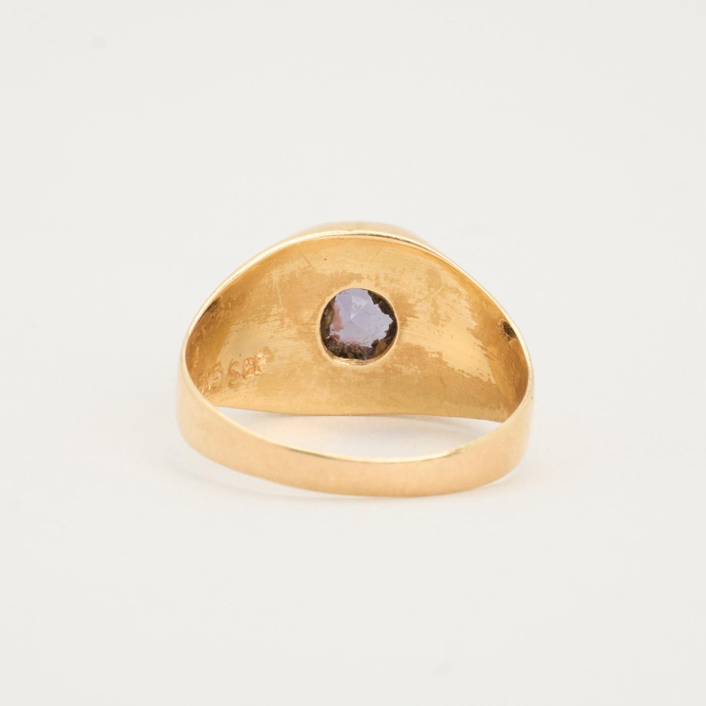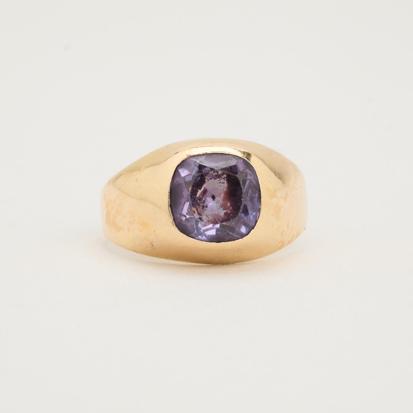 Modell: Signaturring i 14 karat med en syntetisk safir str. 55