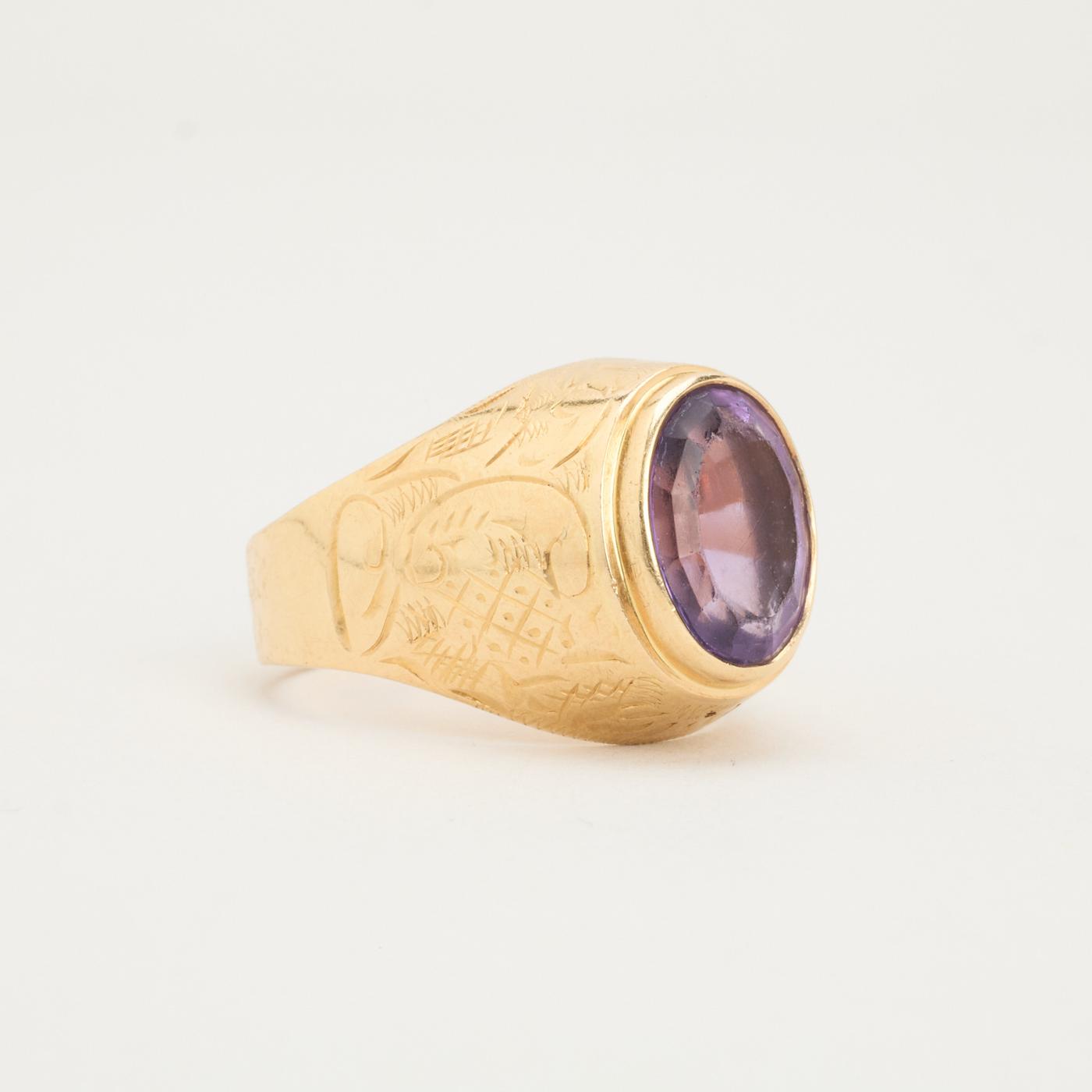Modell: Signaturring i 14 karat med en ametyst str. 57