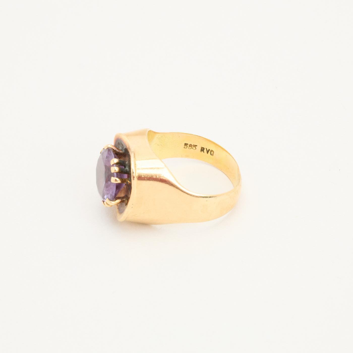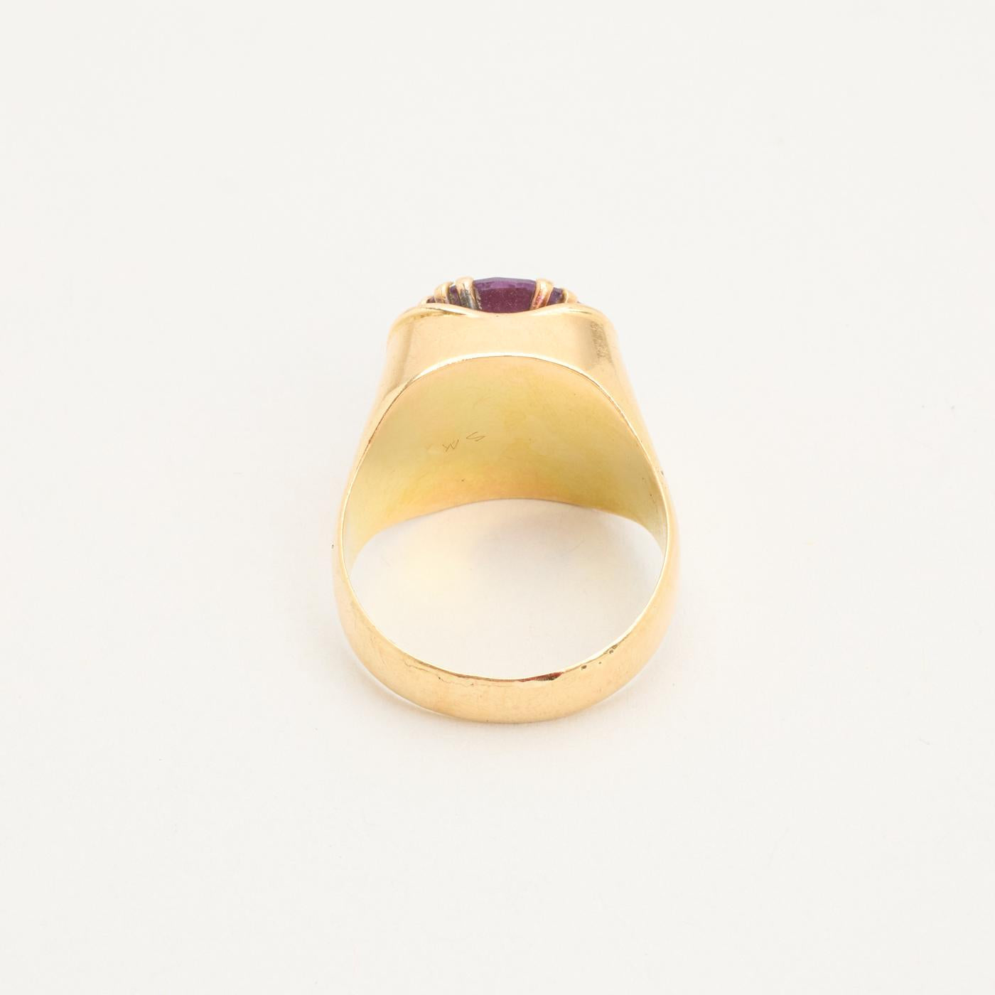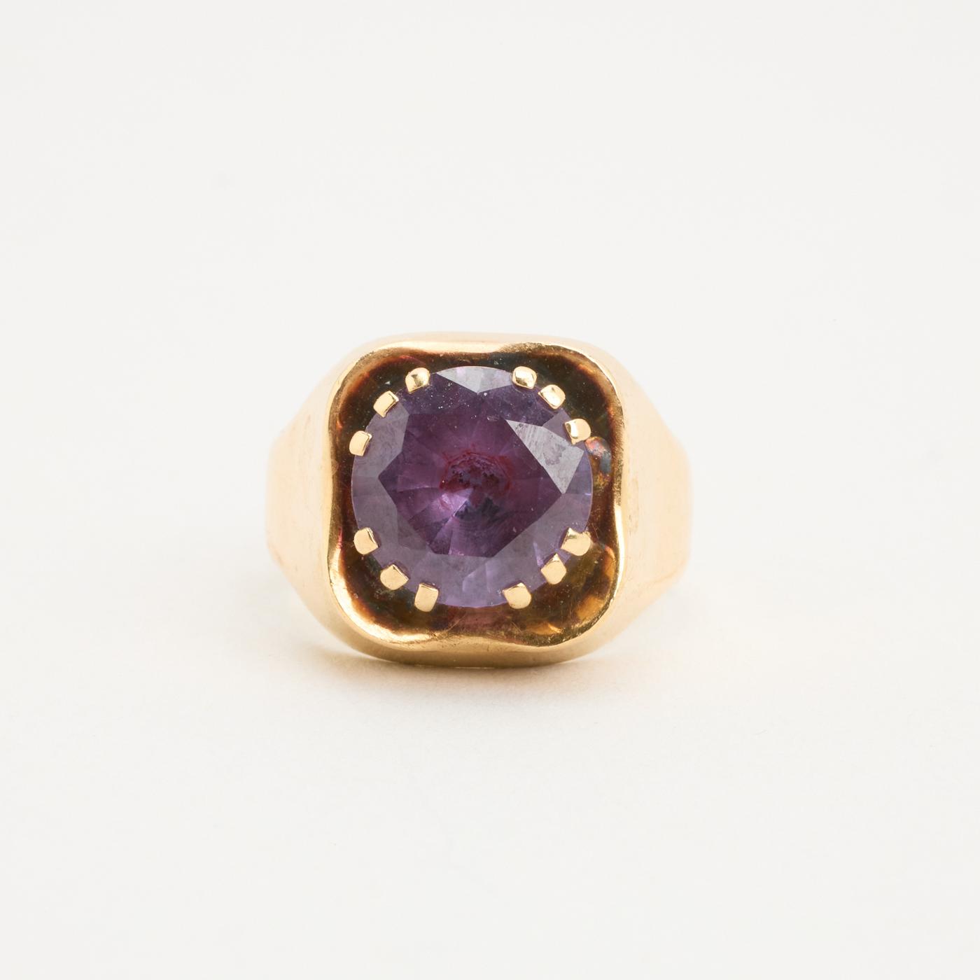 Modell: Signaturring i 14 karat med en syntetisk safir str. 55 - 56