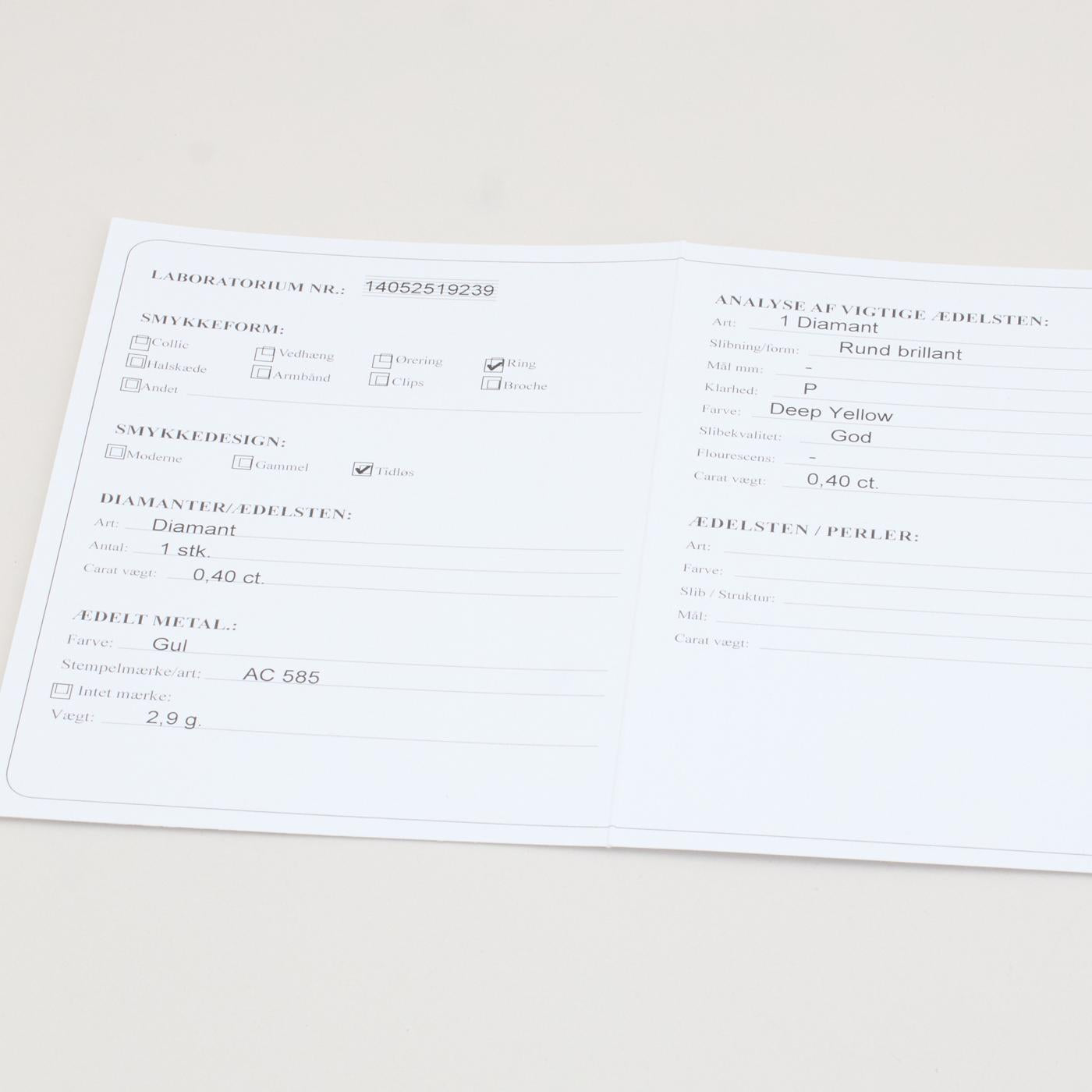 Modell: Solitairring med diamant (0.4 ct) i 14 karat str. 62