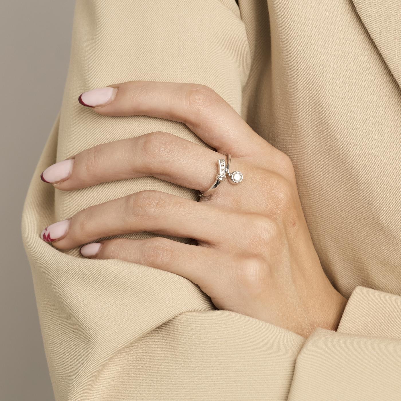 Modell: Crossoverring med diamant (0.3 ct) i 14 karat str. 56