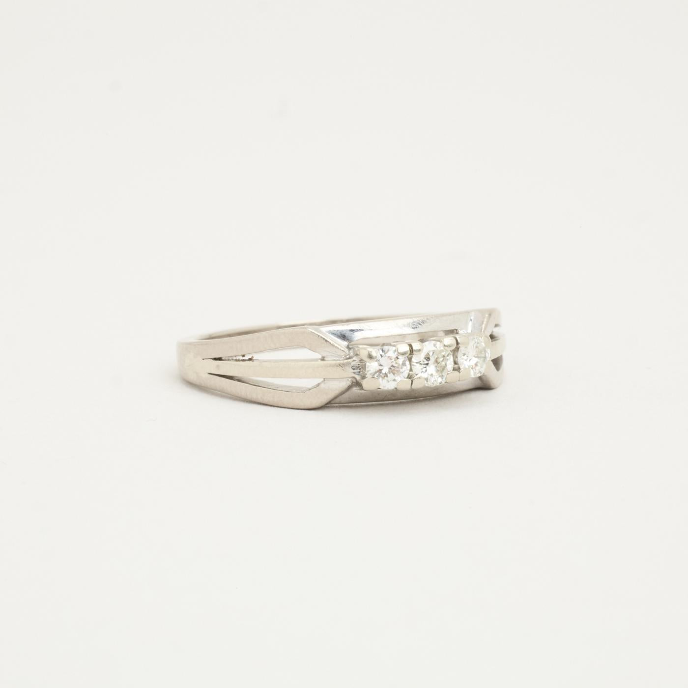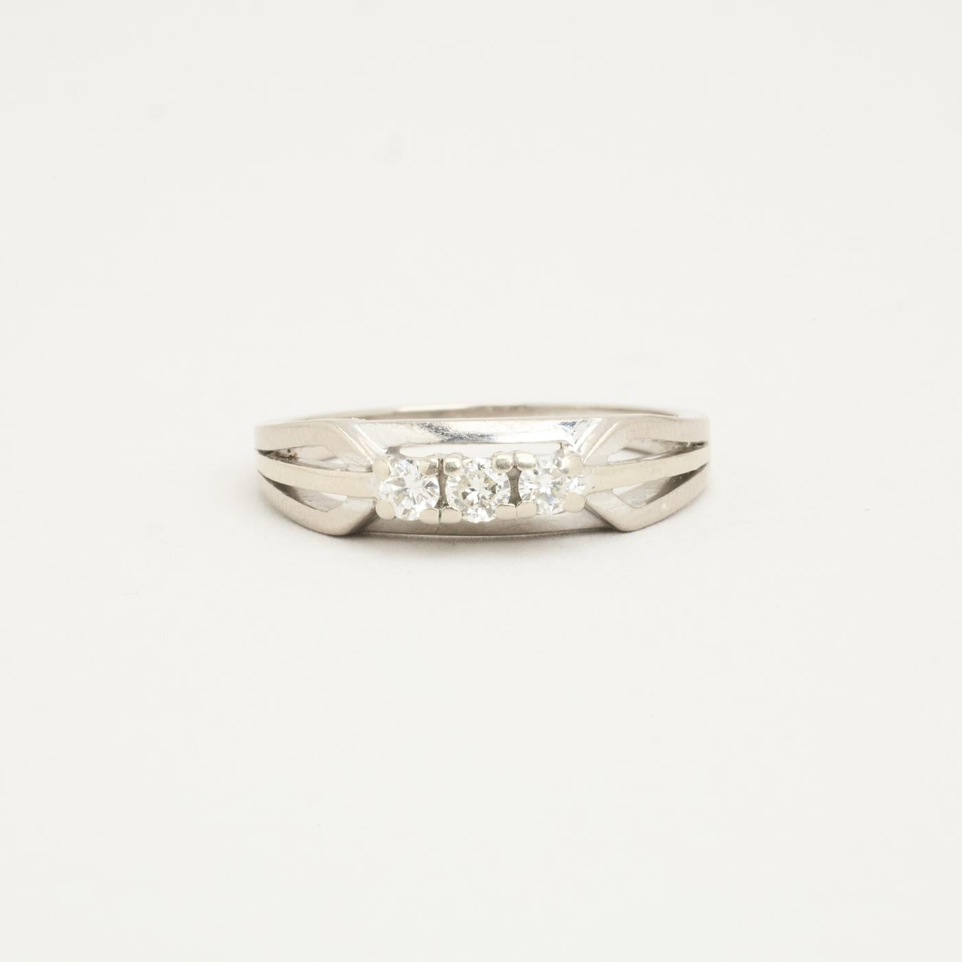 Modell: Tre stein ring med diamant (0.19 ct) i 14 karat str. 54
