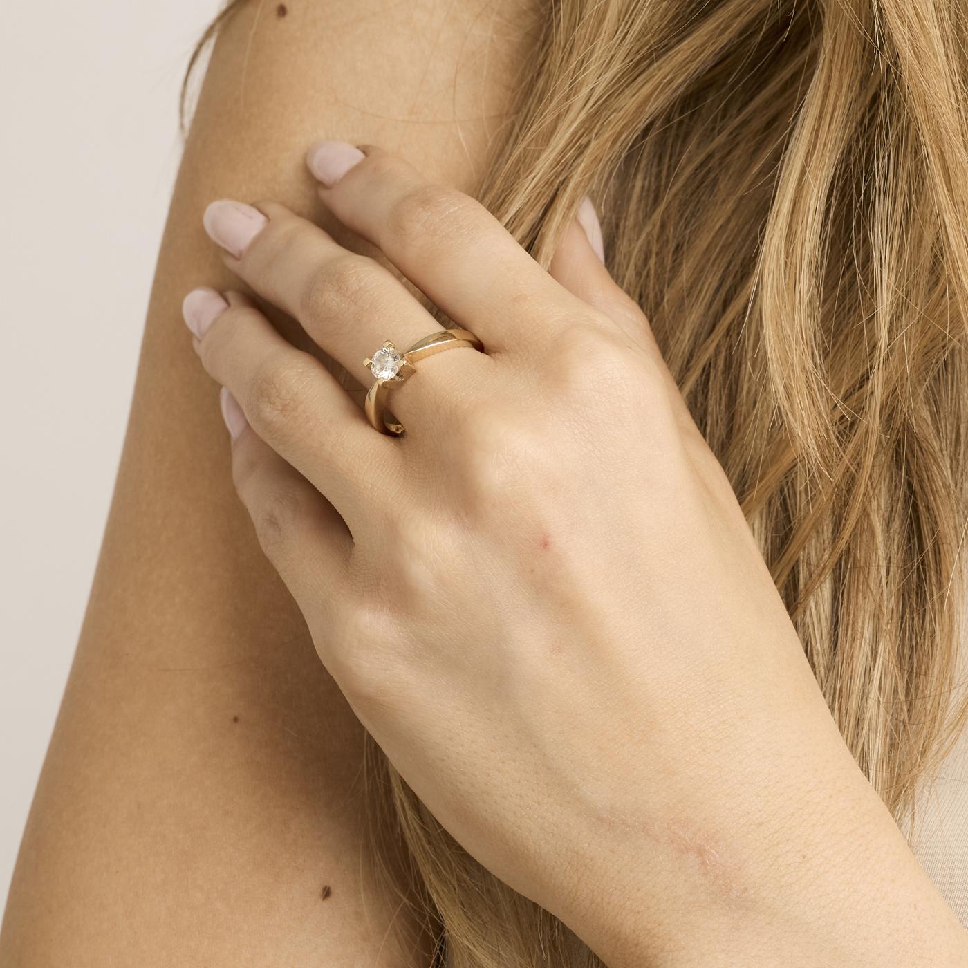Modell: Solitairring med diamant (0.54 ct) i 14 karat str. 58