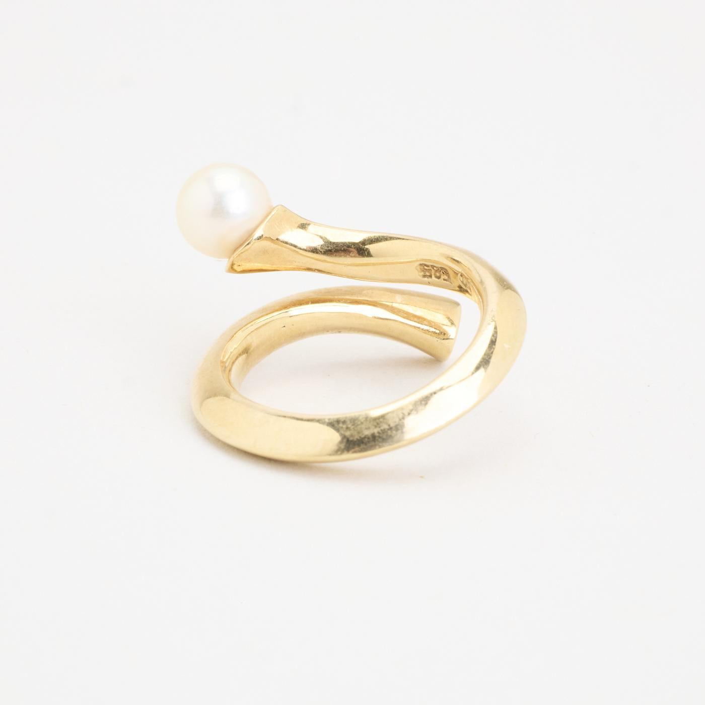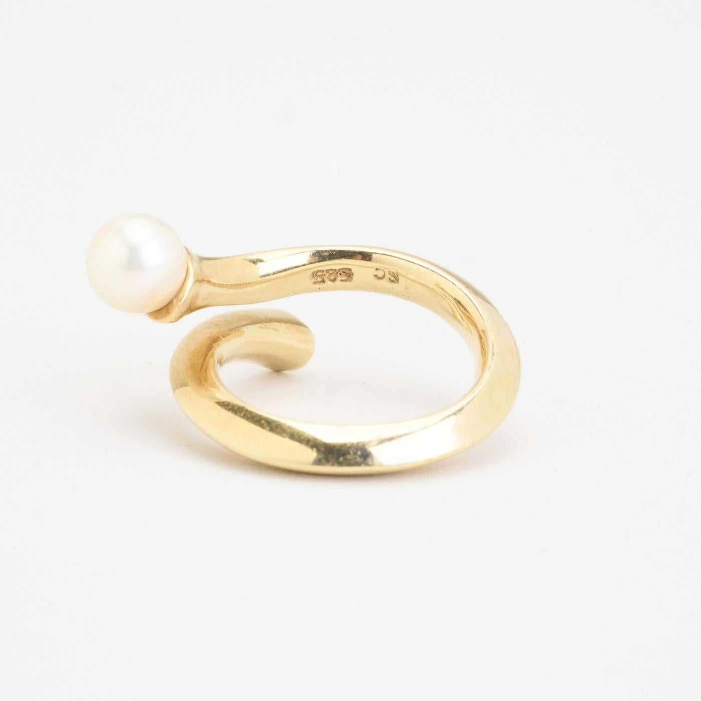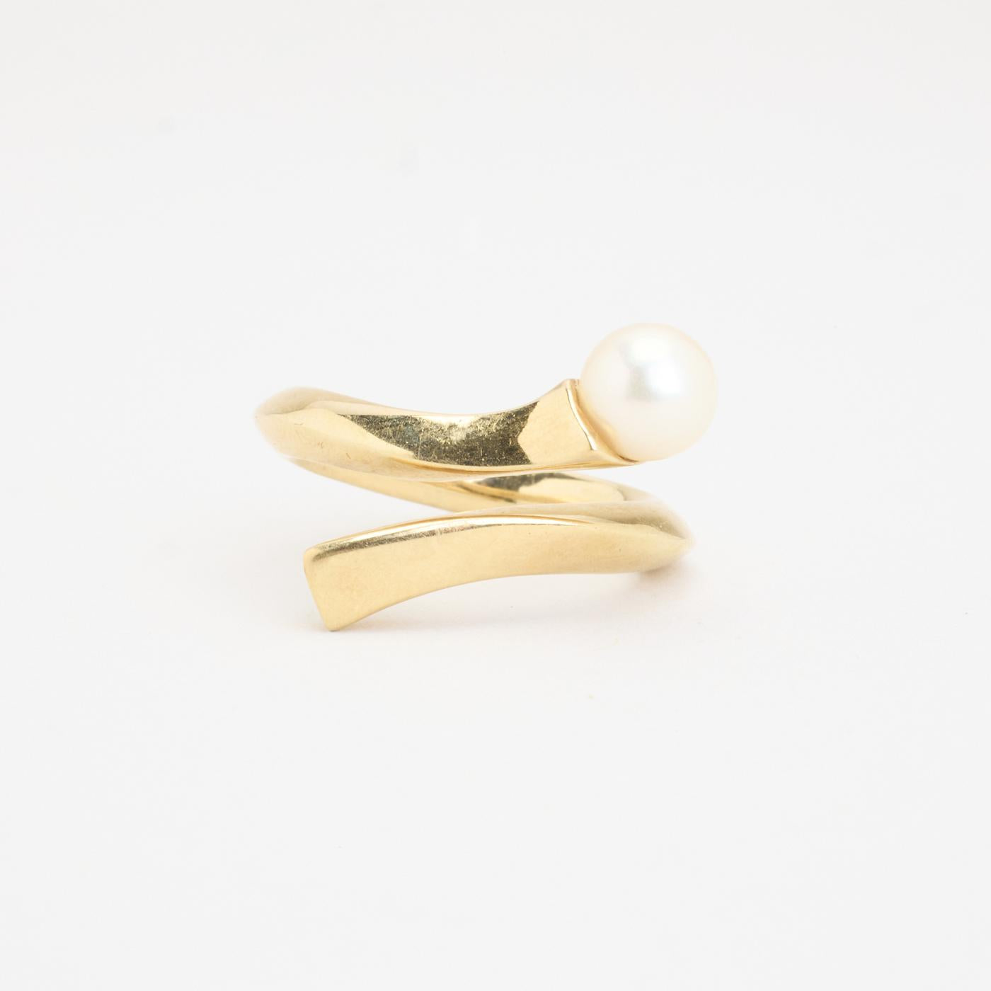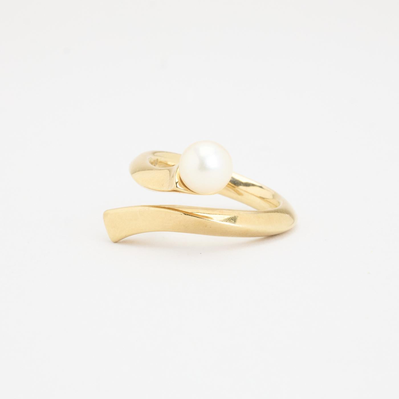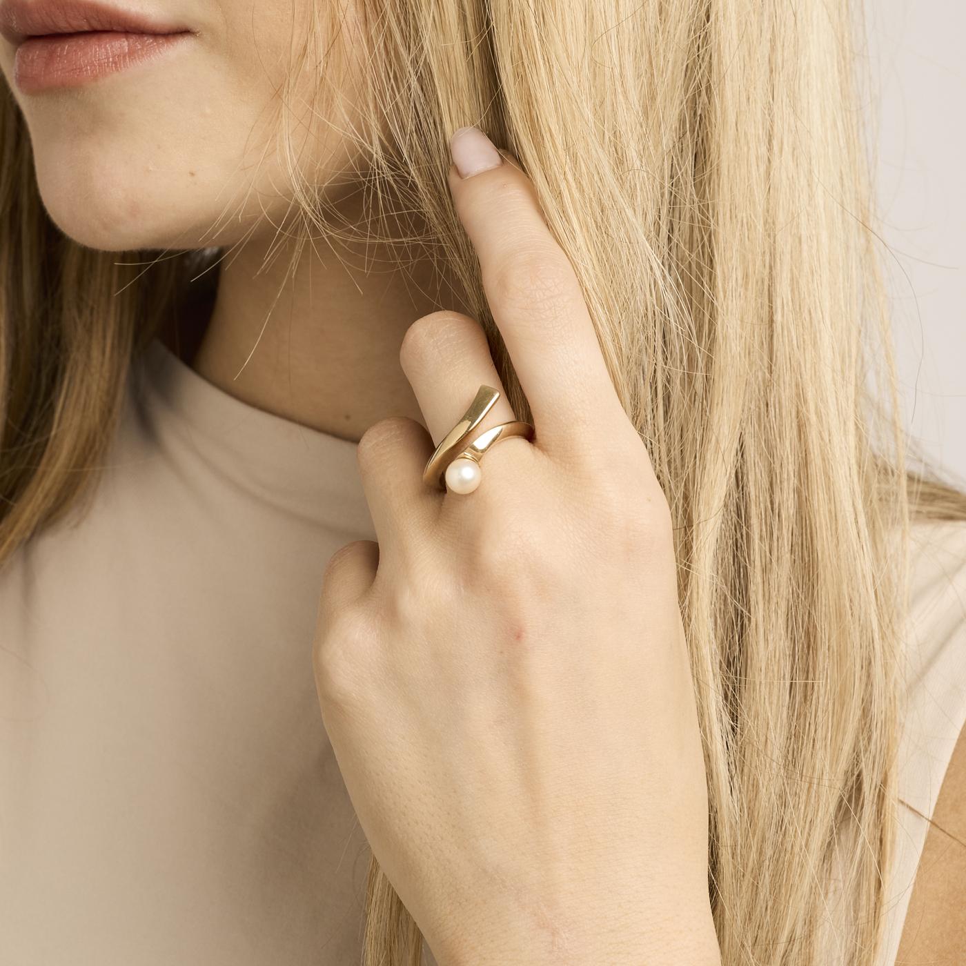 Modell: Crossoverring i 14 karat med en perle str. 52