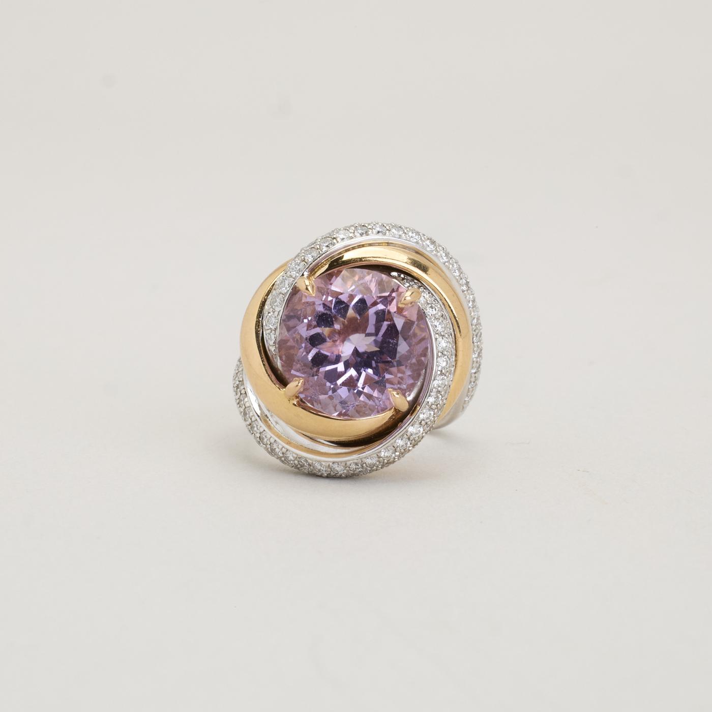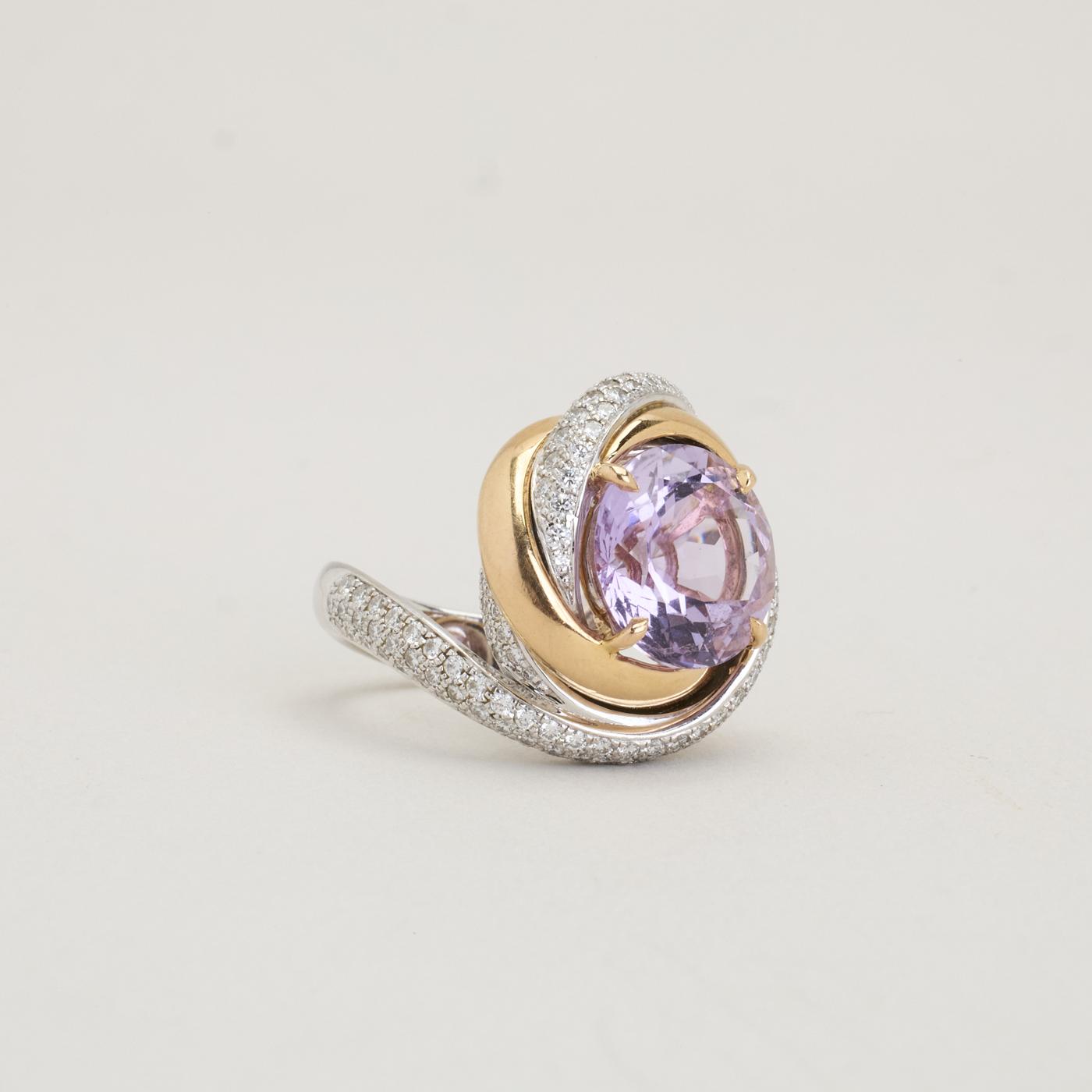 Modell: Cartier Trinity Ring Uttalelse ring med diamant (1.7 ct) i 18 karat med en kunzitt str. 52