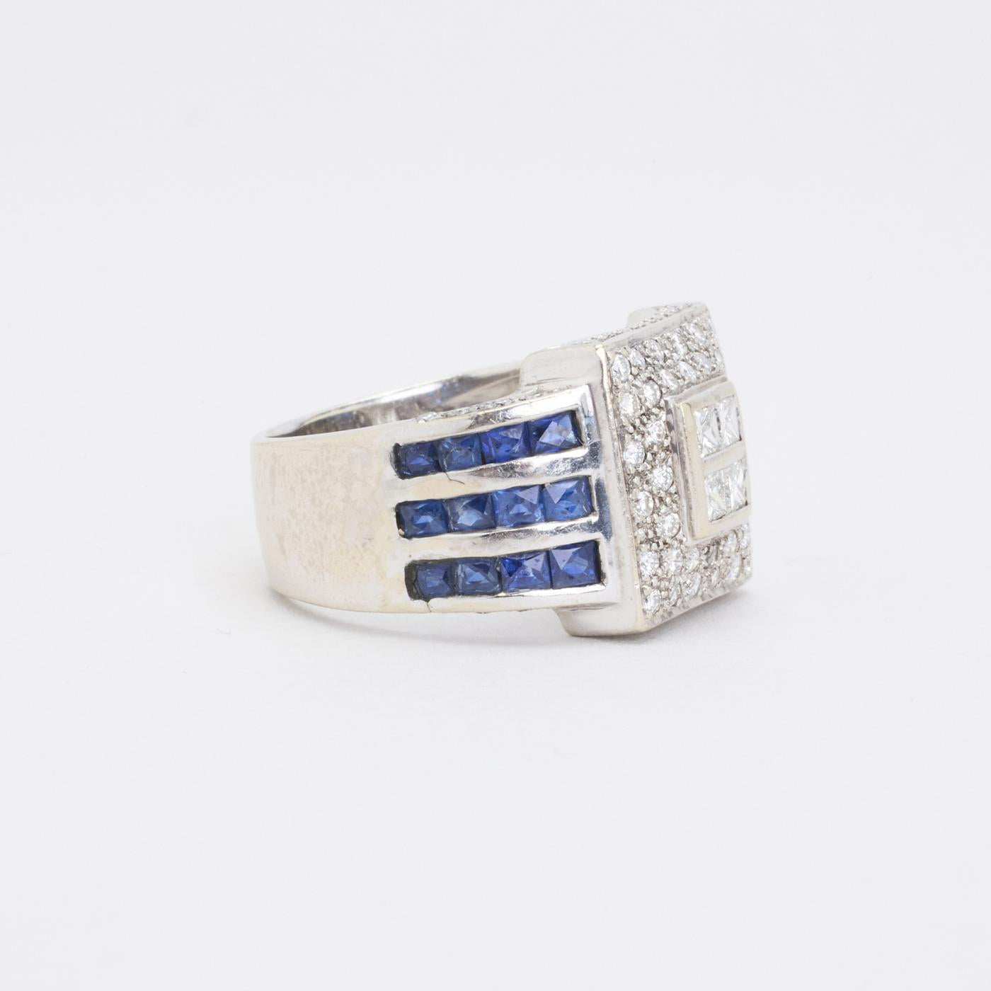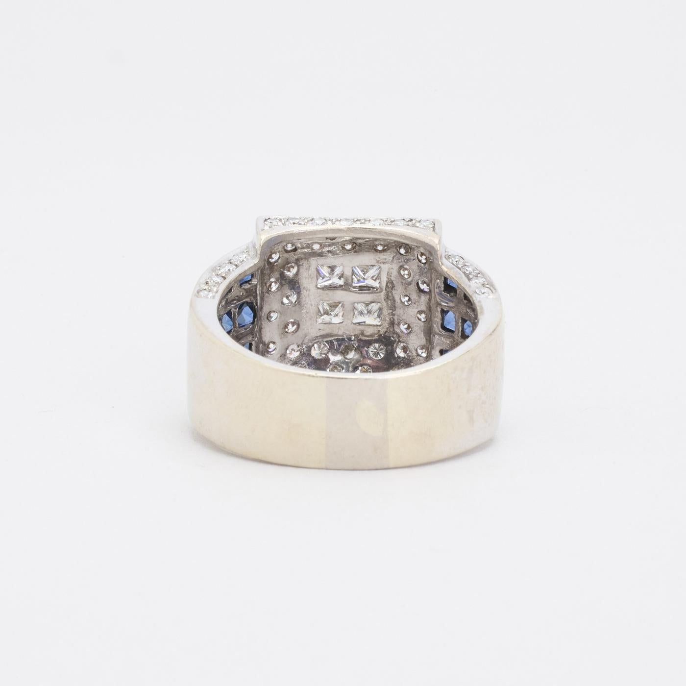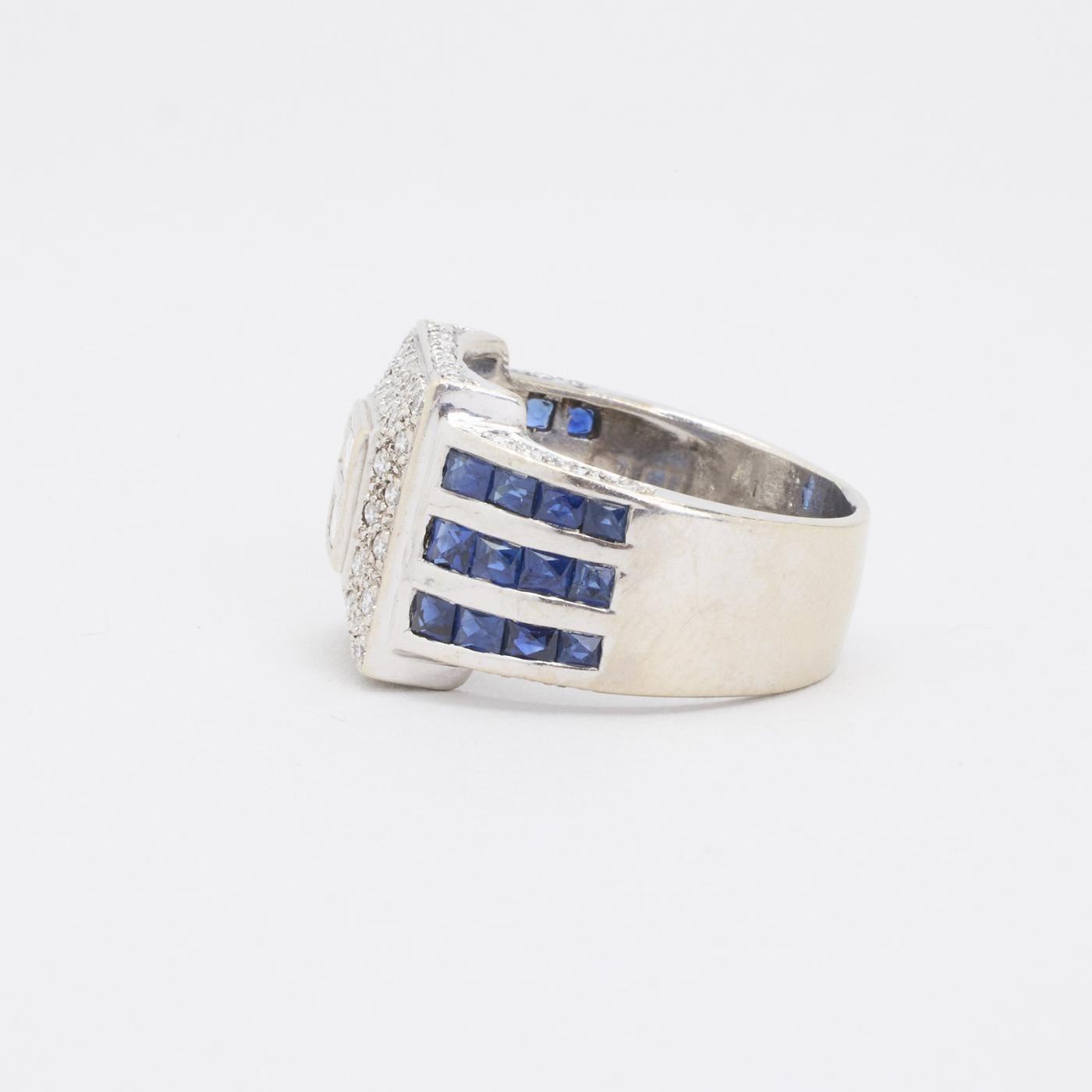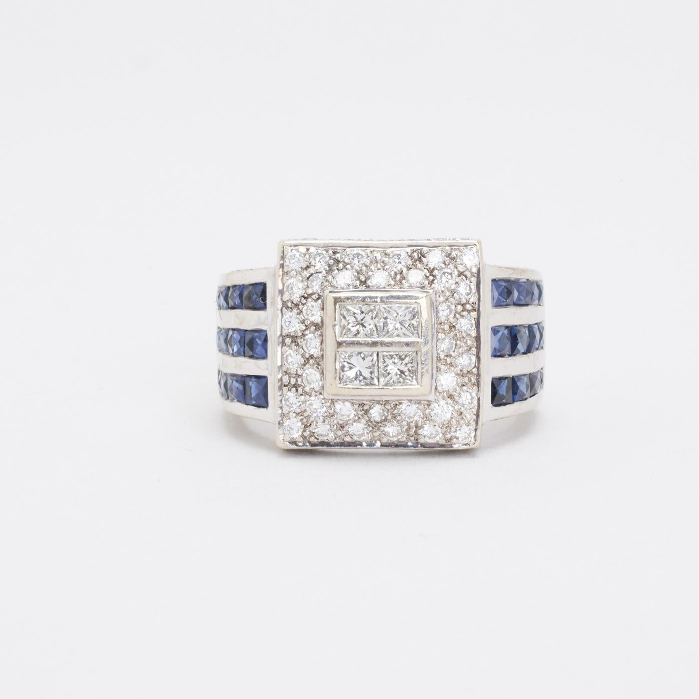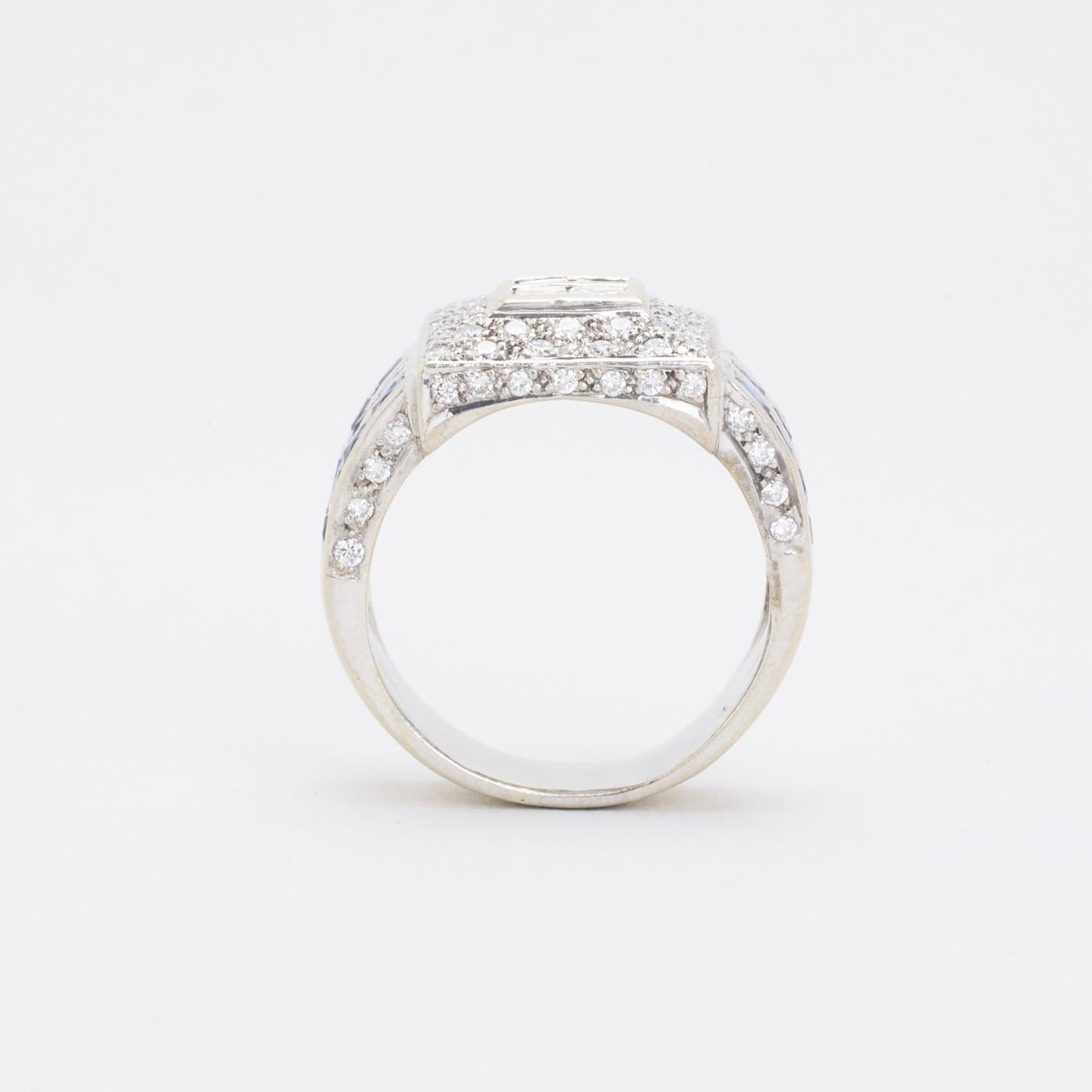 Modell: Geometrisk ring med diamant (0.3 ct) i 14 karat med en safir str. 57
