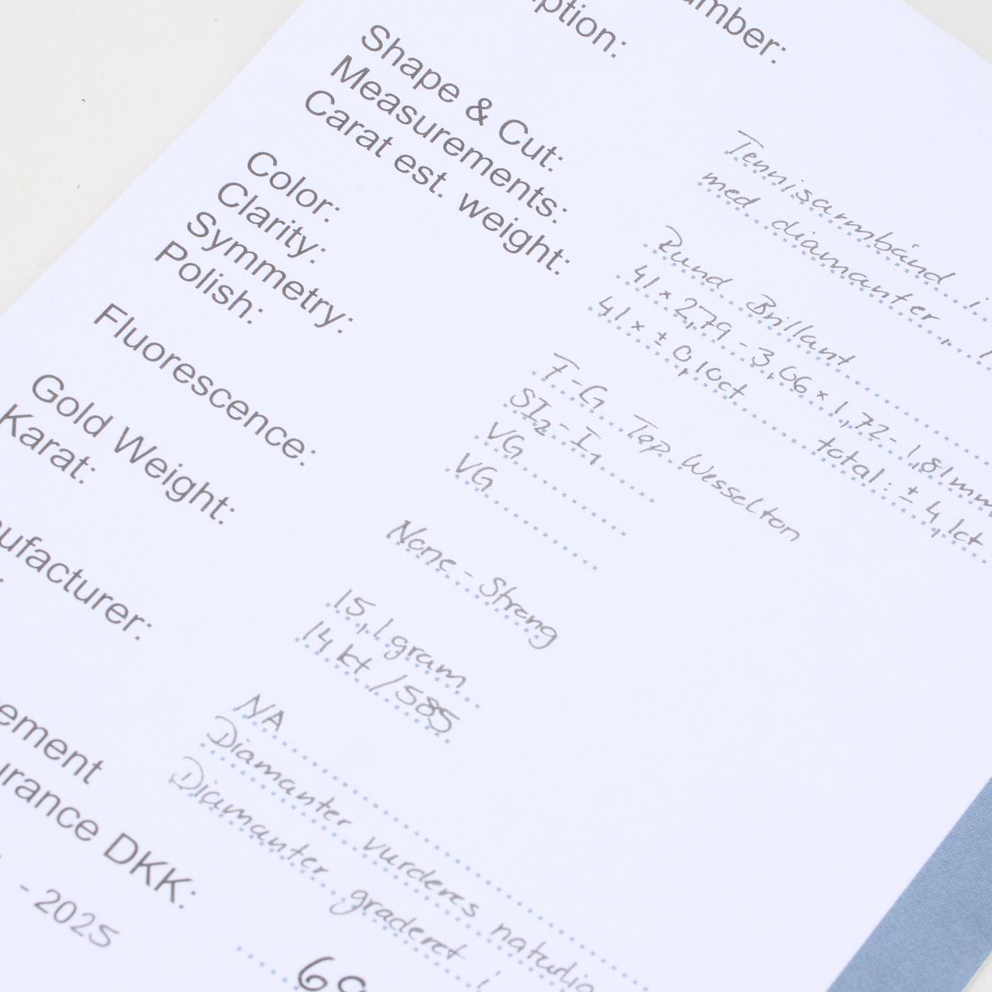 Tennisarmbånd med diamant (4 ct) i 14 karat, 17.5 cm