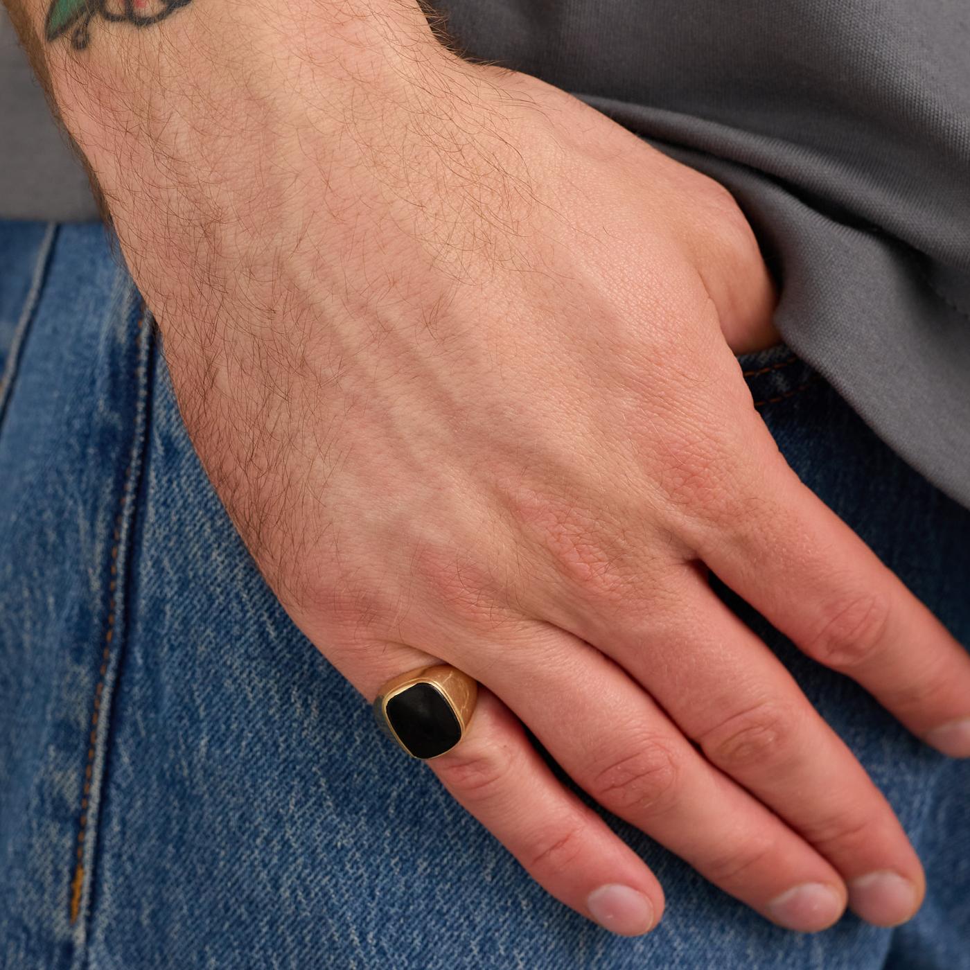 Modell: Signaturring i 14 karat med en onyx str. 57