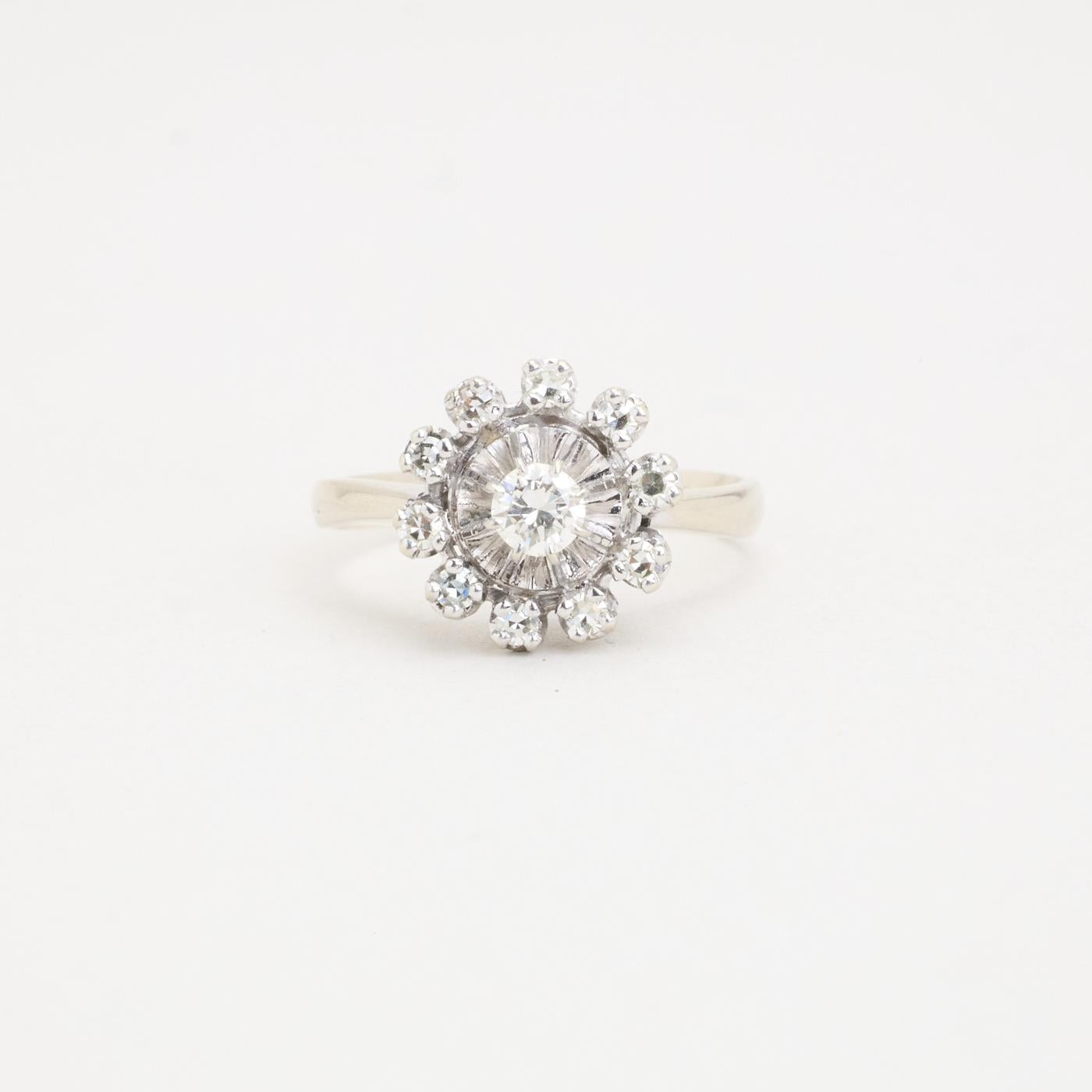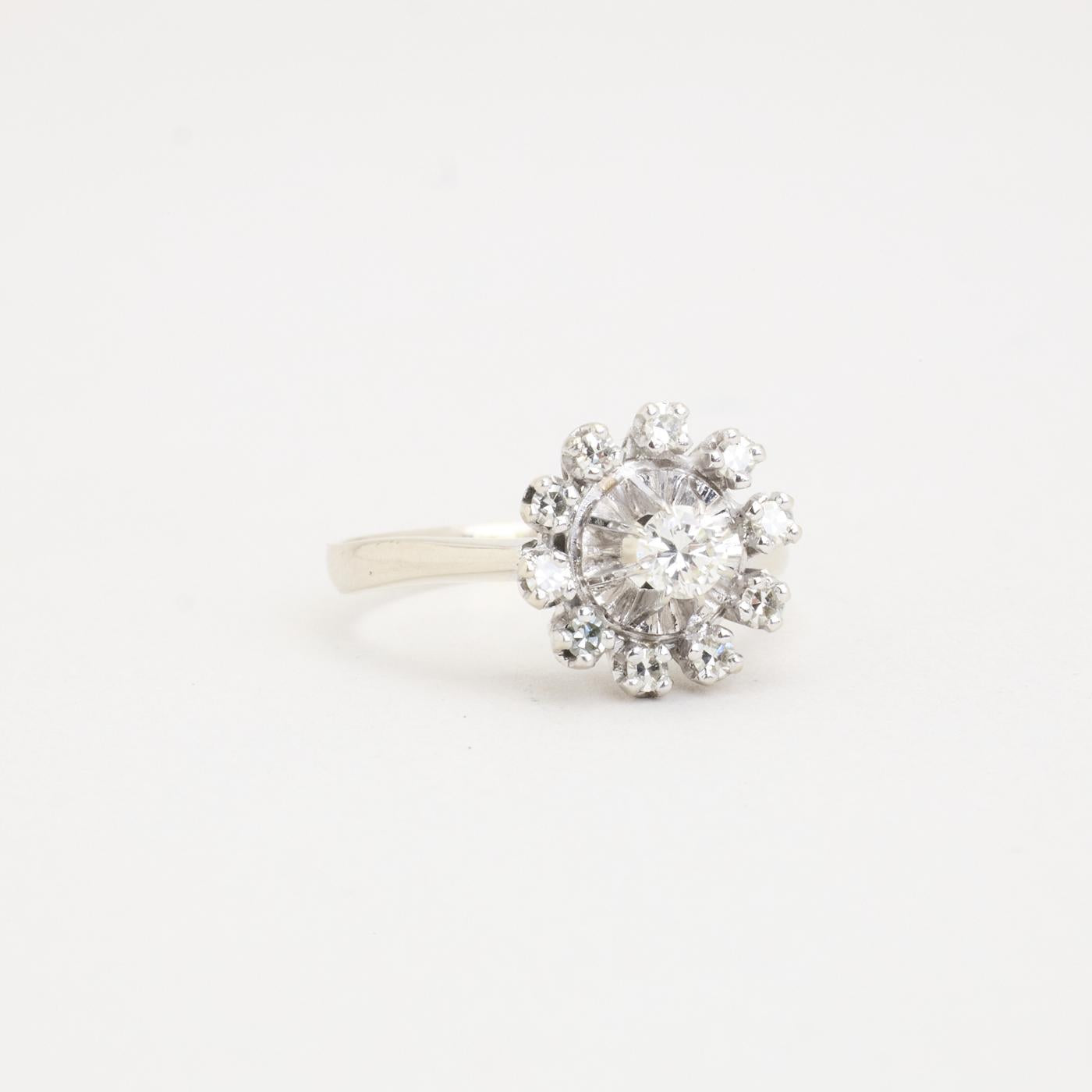 Rosettring med diamant (0.37 ct) i 14 karat str. 53