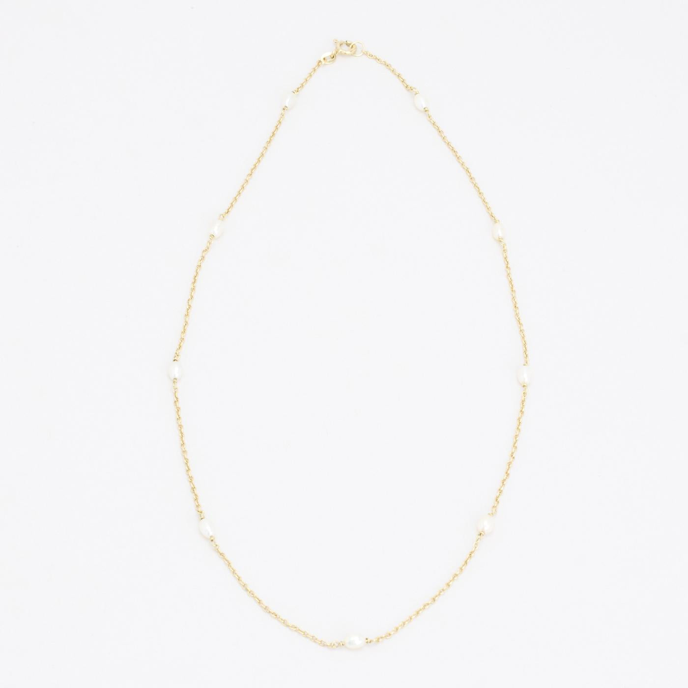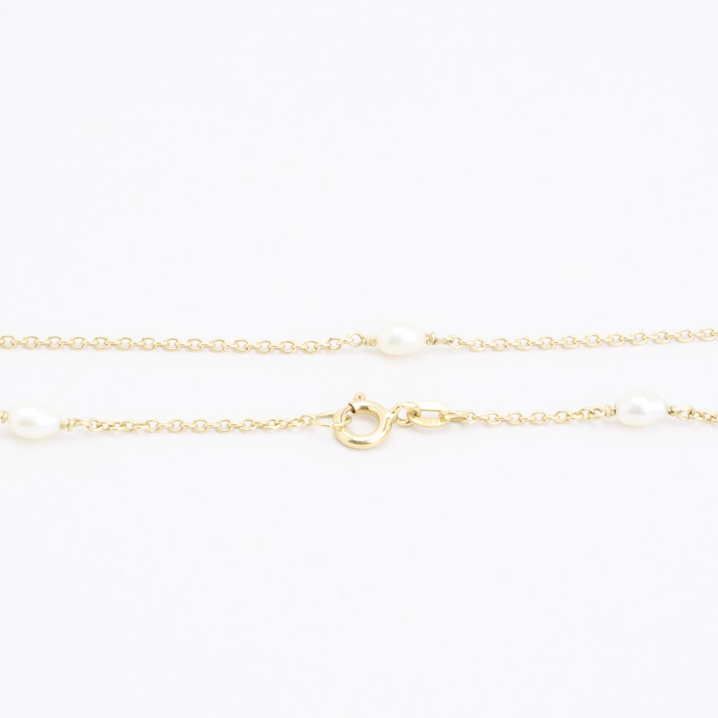 Ankerkjede Halskjede i 14 karat med en perle, 45 cm