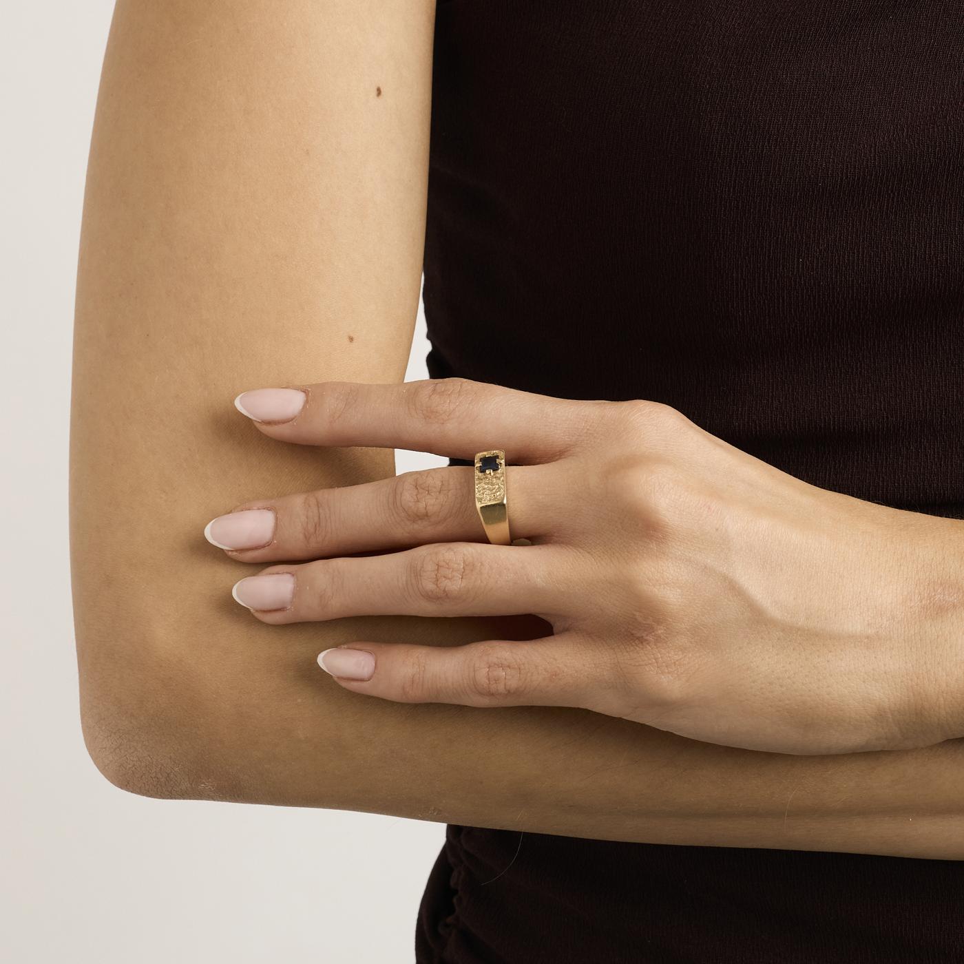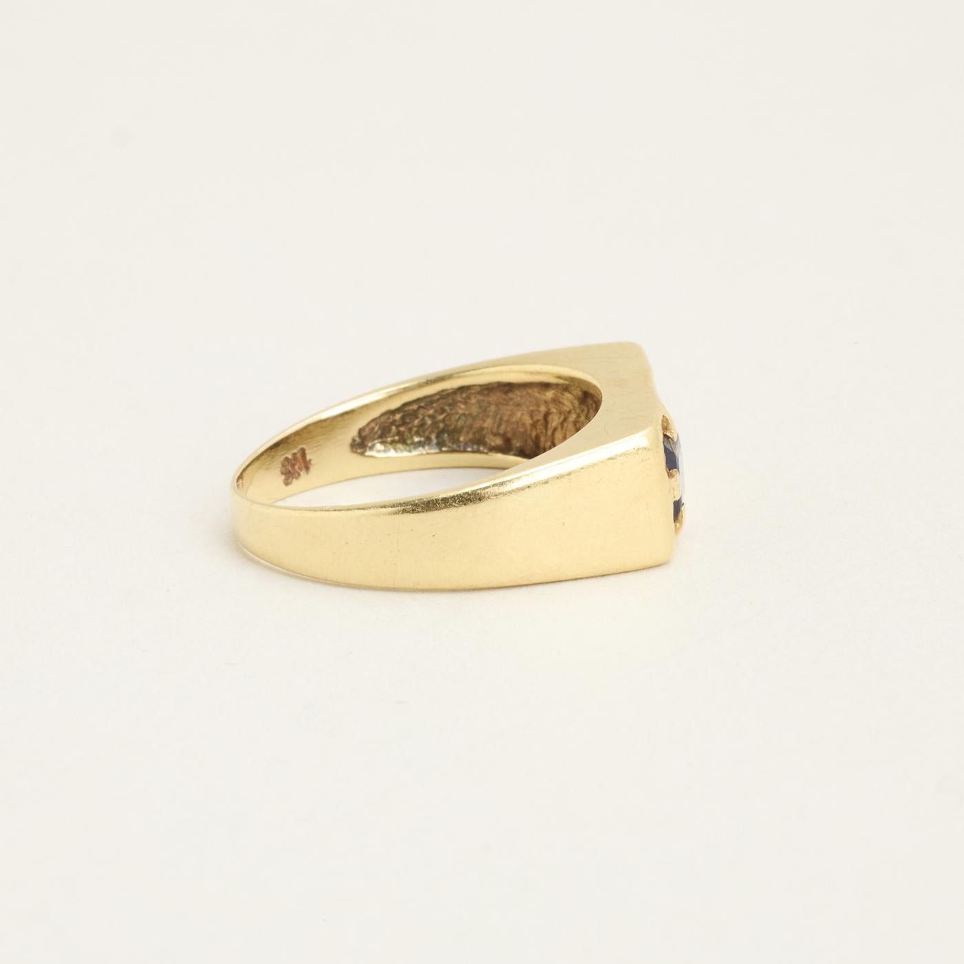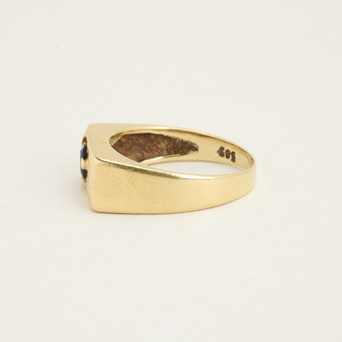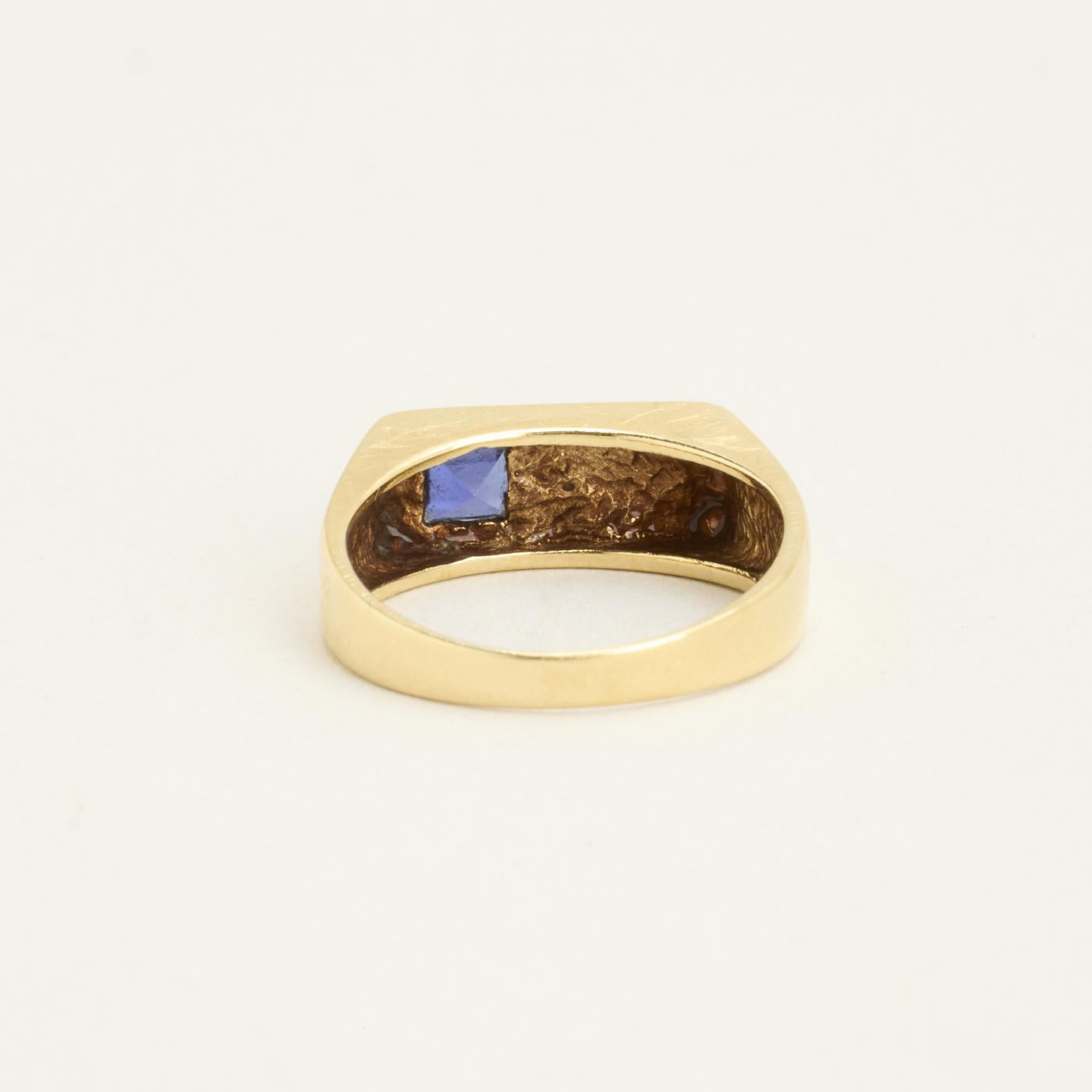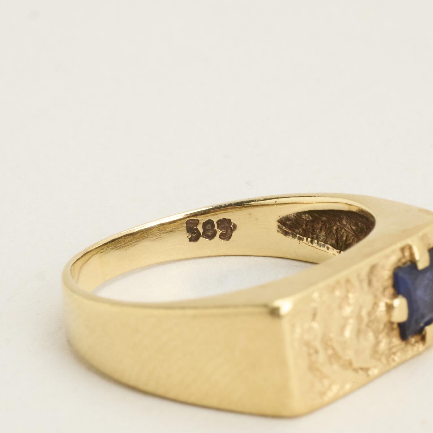 Modell: Signaturring i 14 karat med en syntetisk safir str. 52