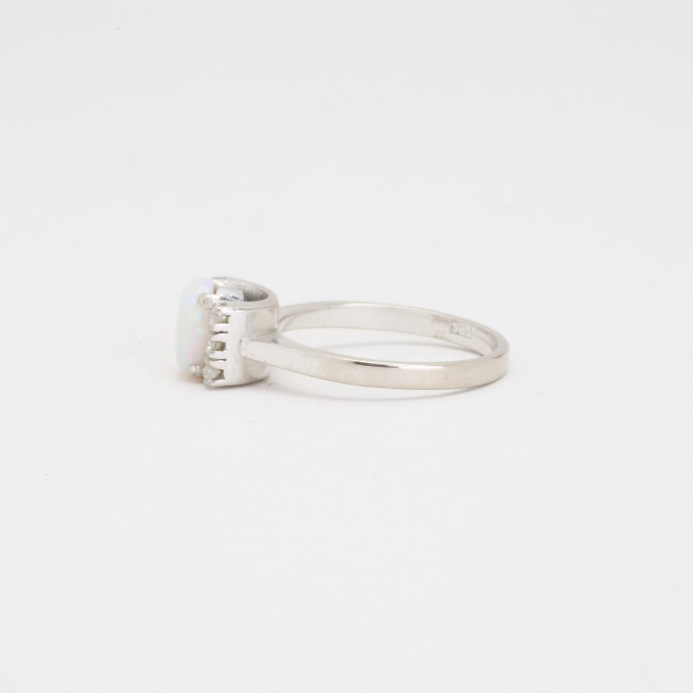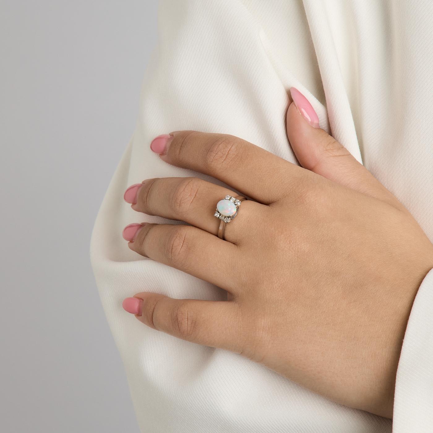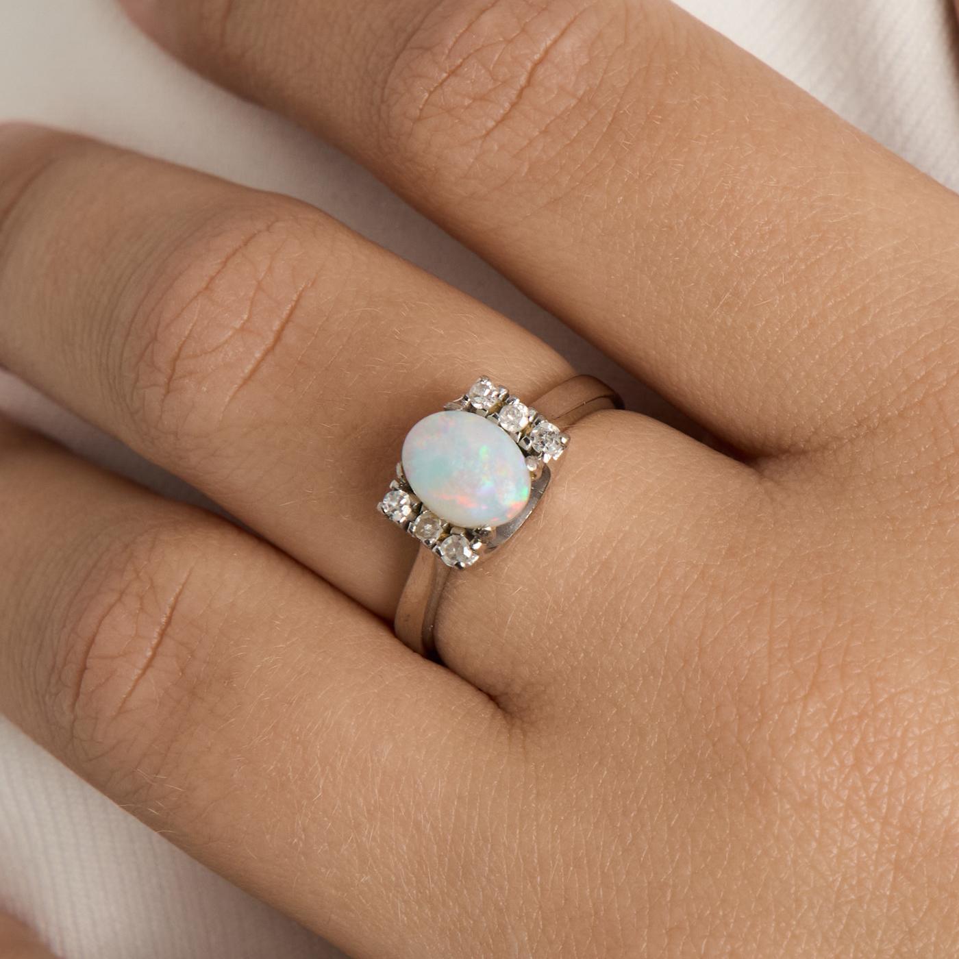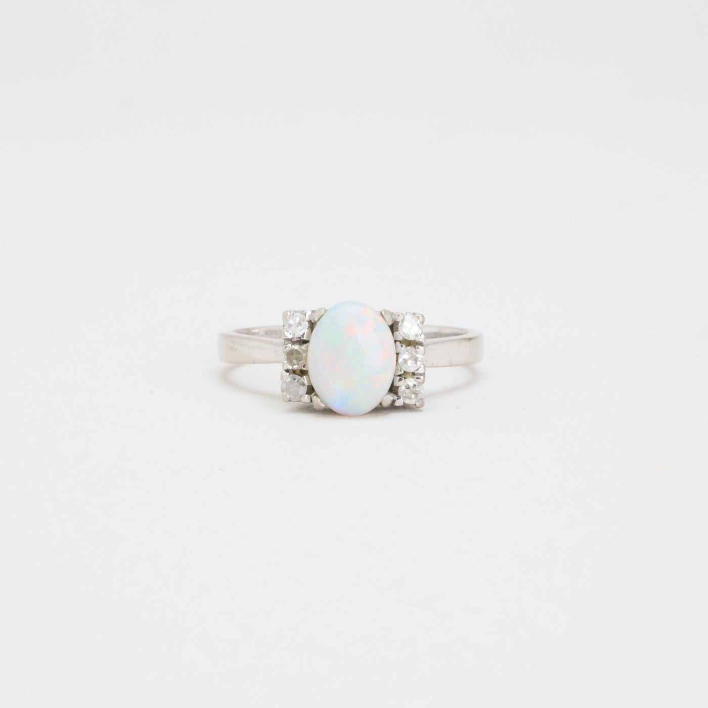 Modell: Rosettring med diamant (0.09 ct) i 14 karat med en opal str. 55