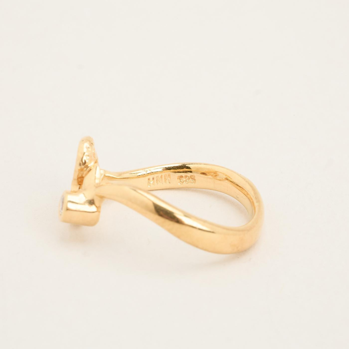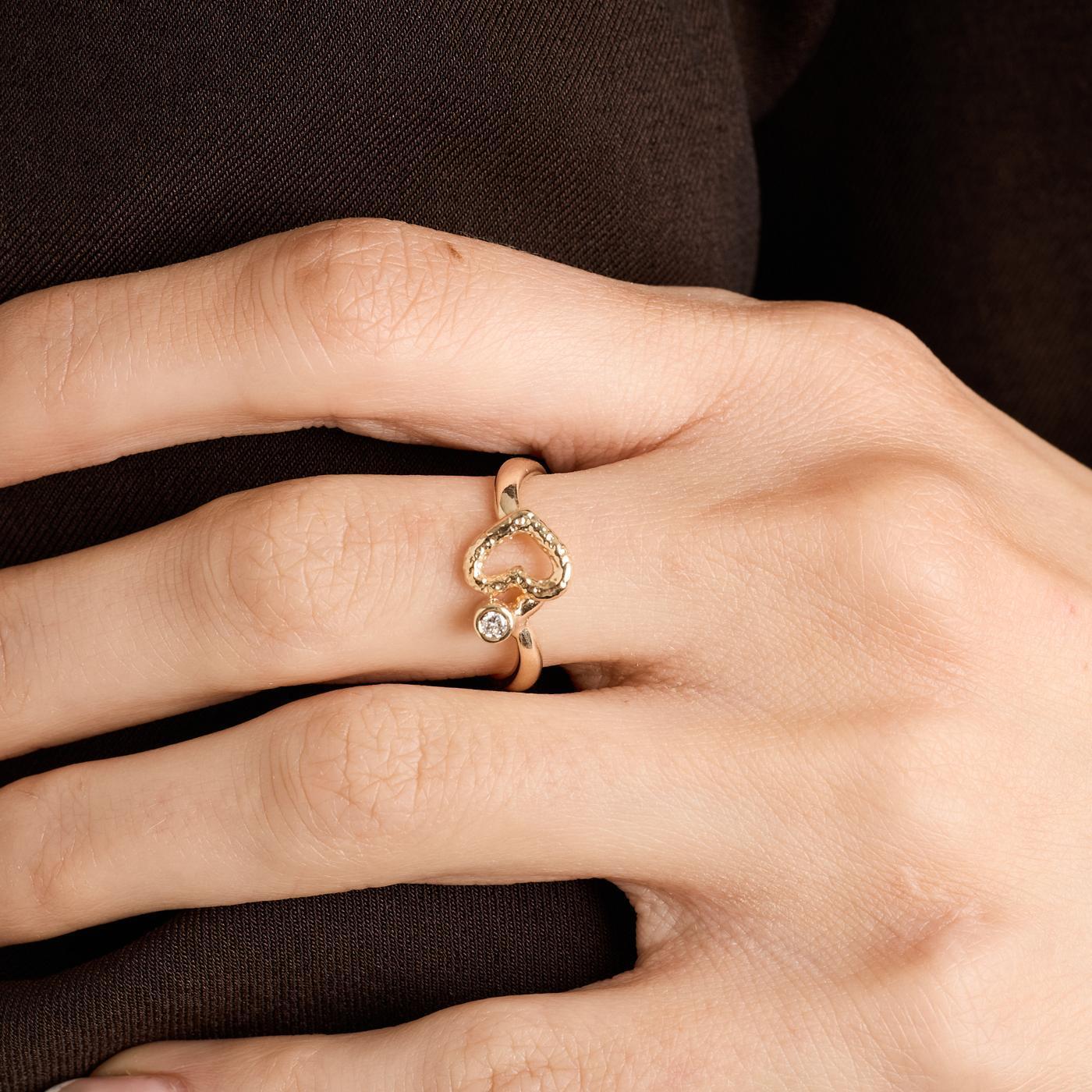 Modell: Hjertering med diamant (0.03 ct) i 14 karat str. 49