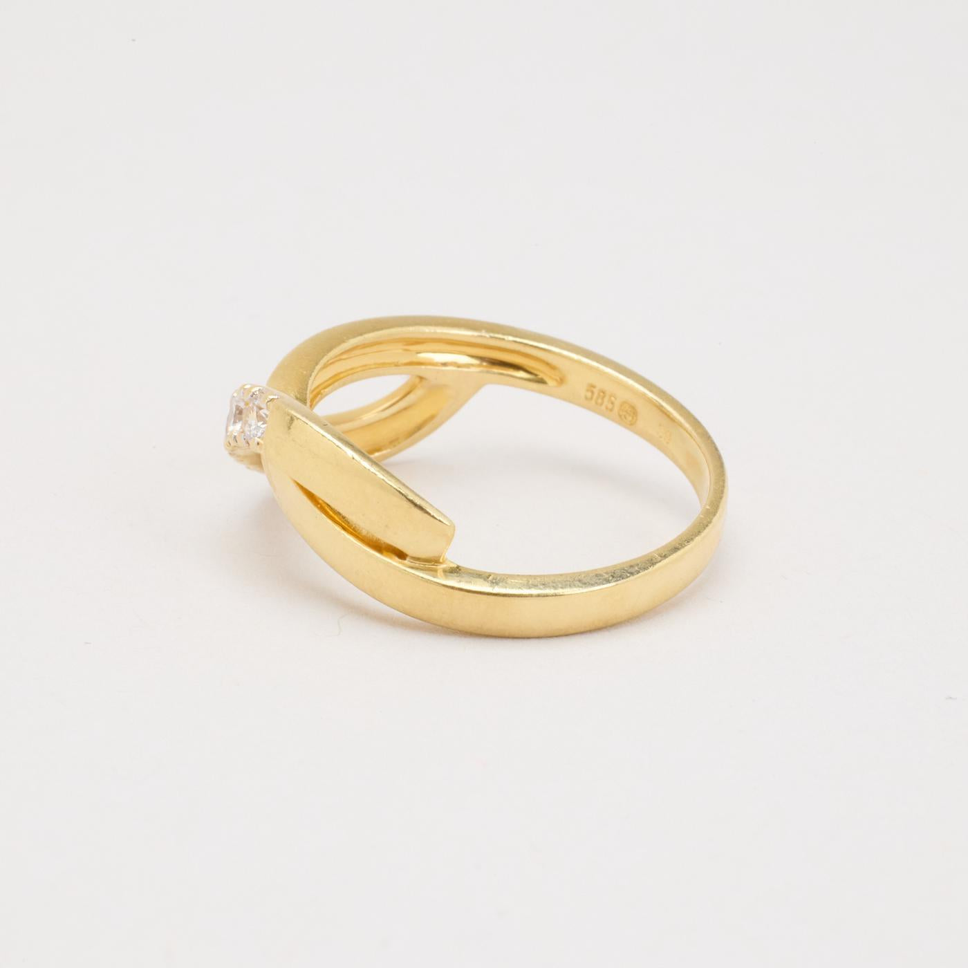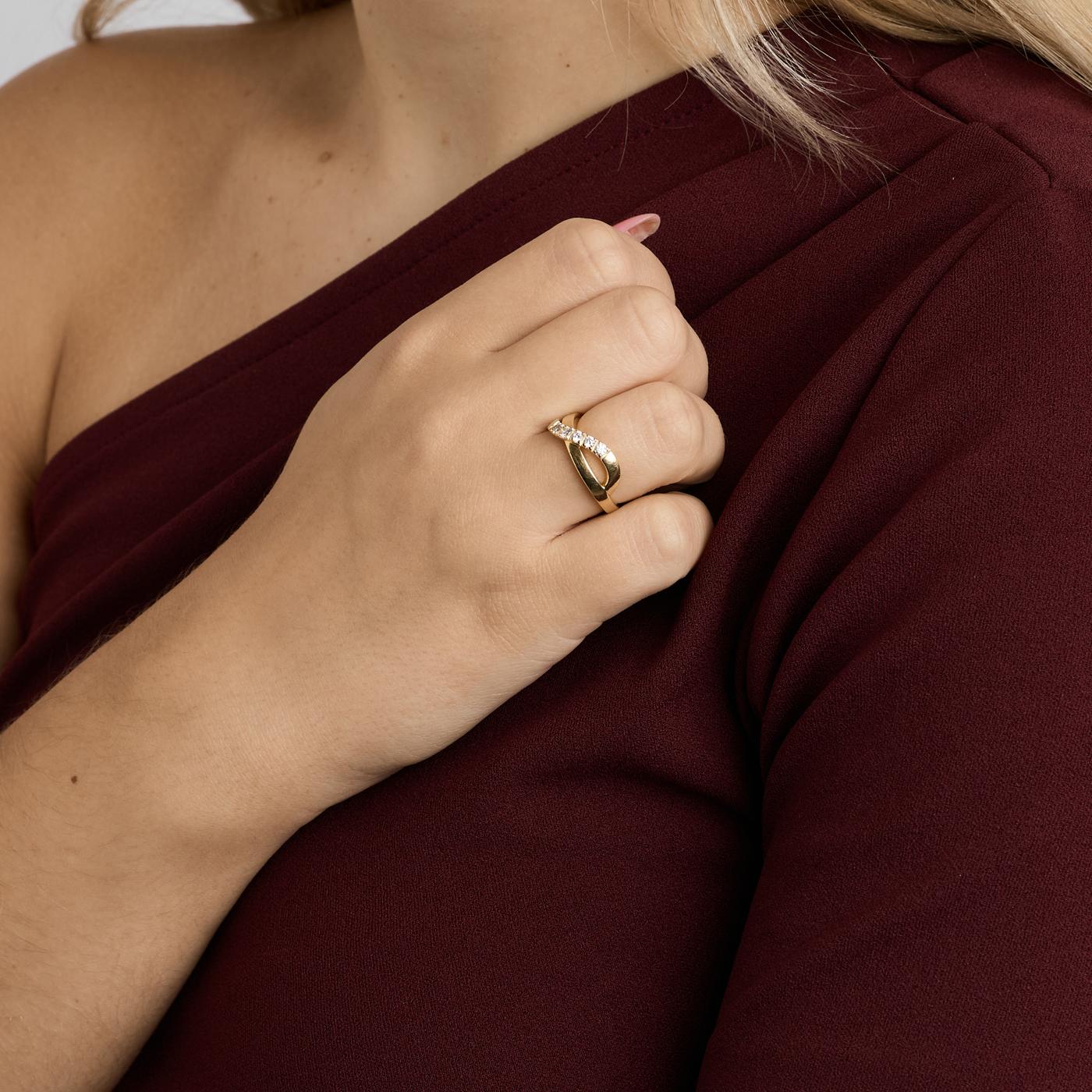 Modell: Crossoverring i 14 karat med en Zirkonia str. 55