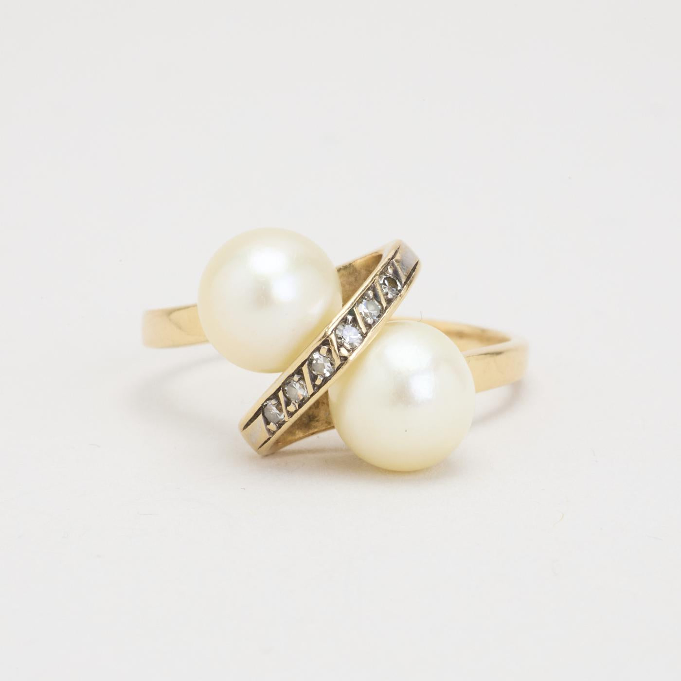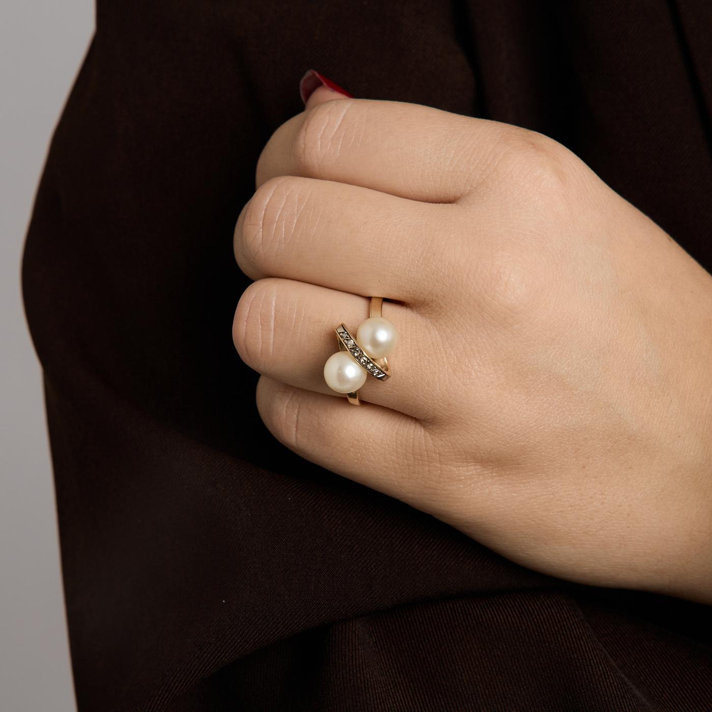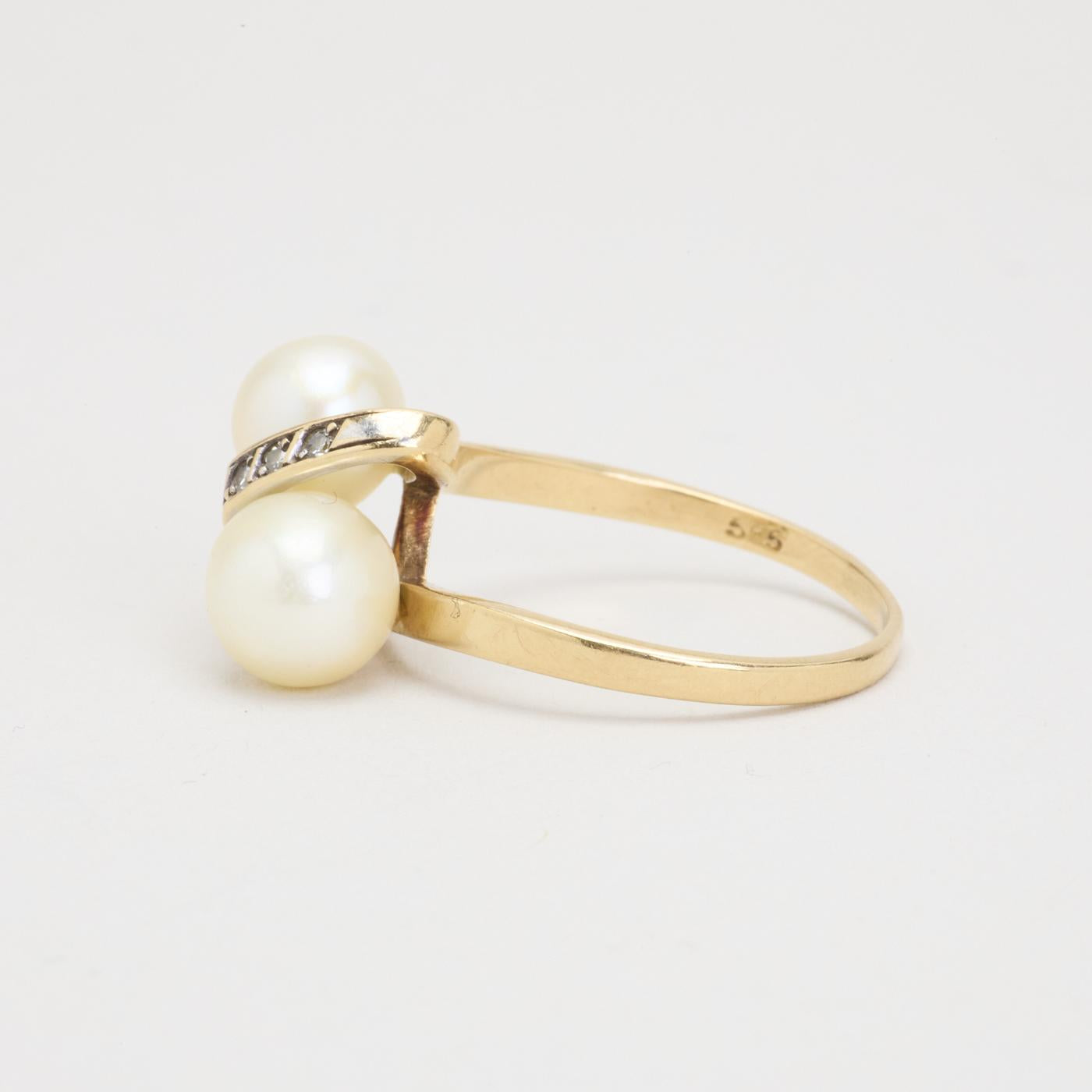 Modell: Perlering med diamant (0.09 ct) i 14 karat med en perle str. 58