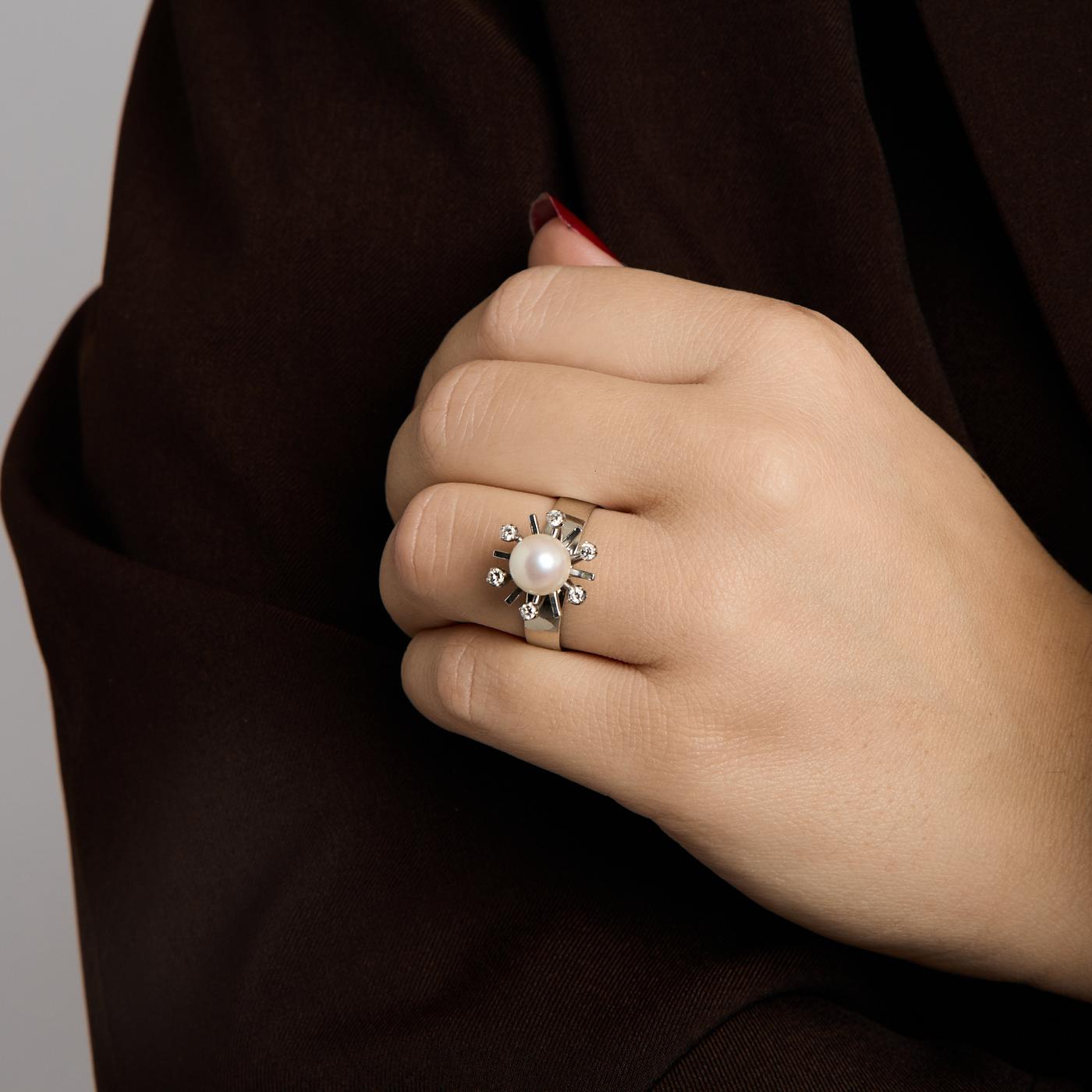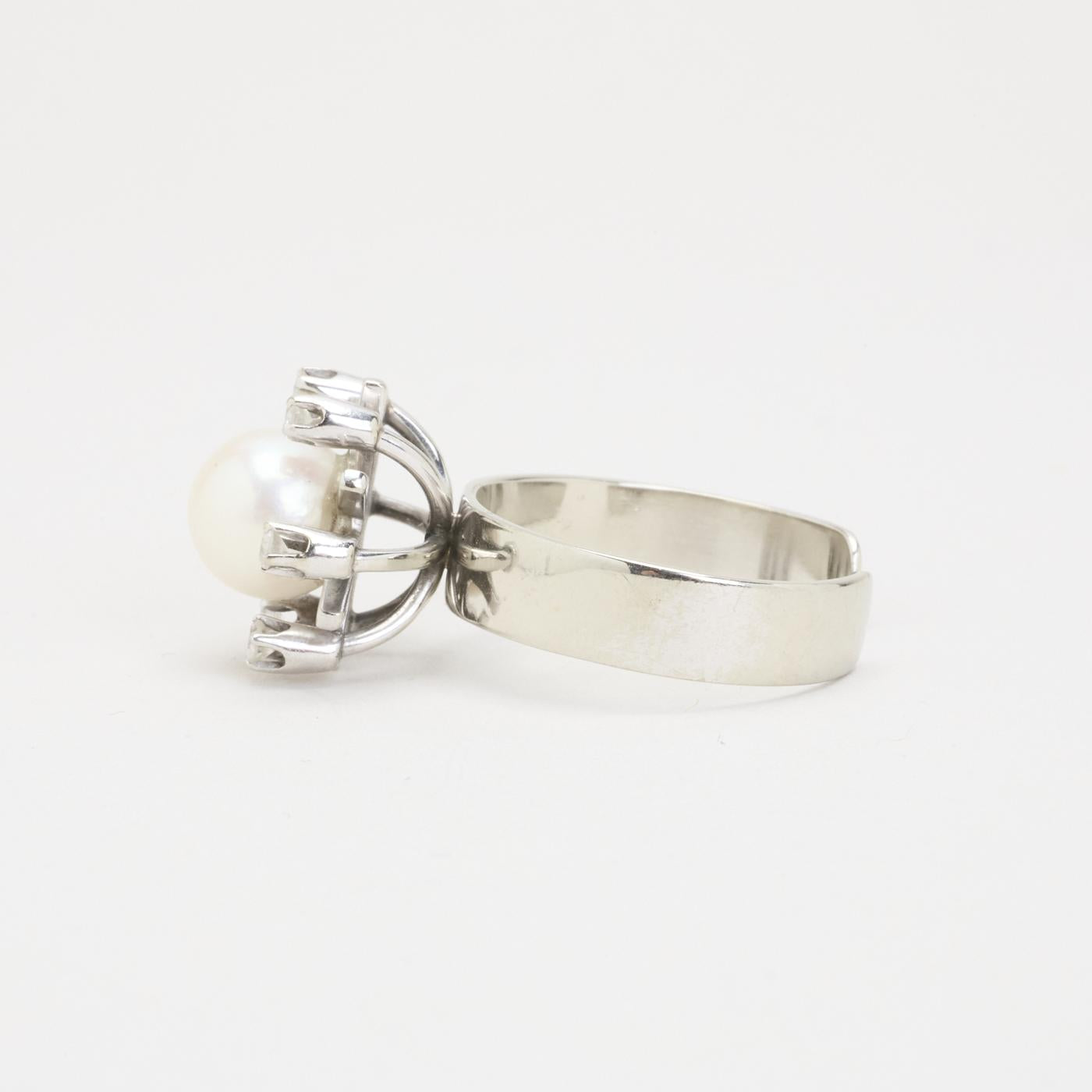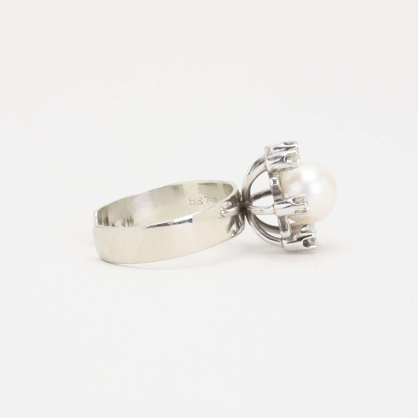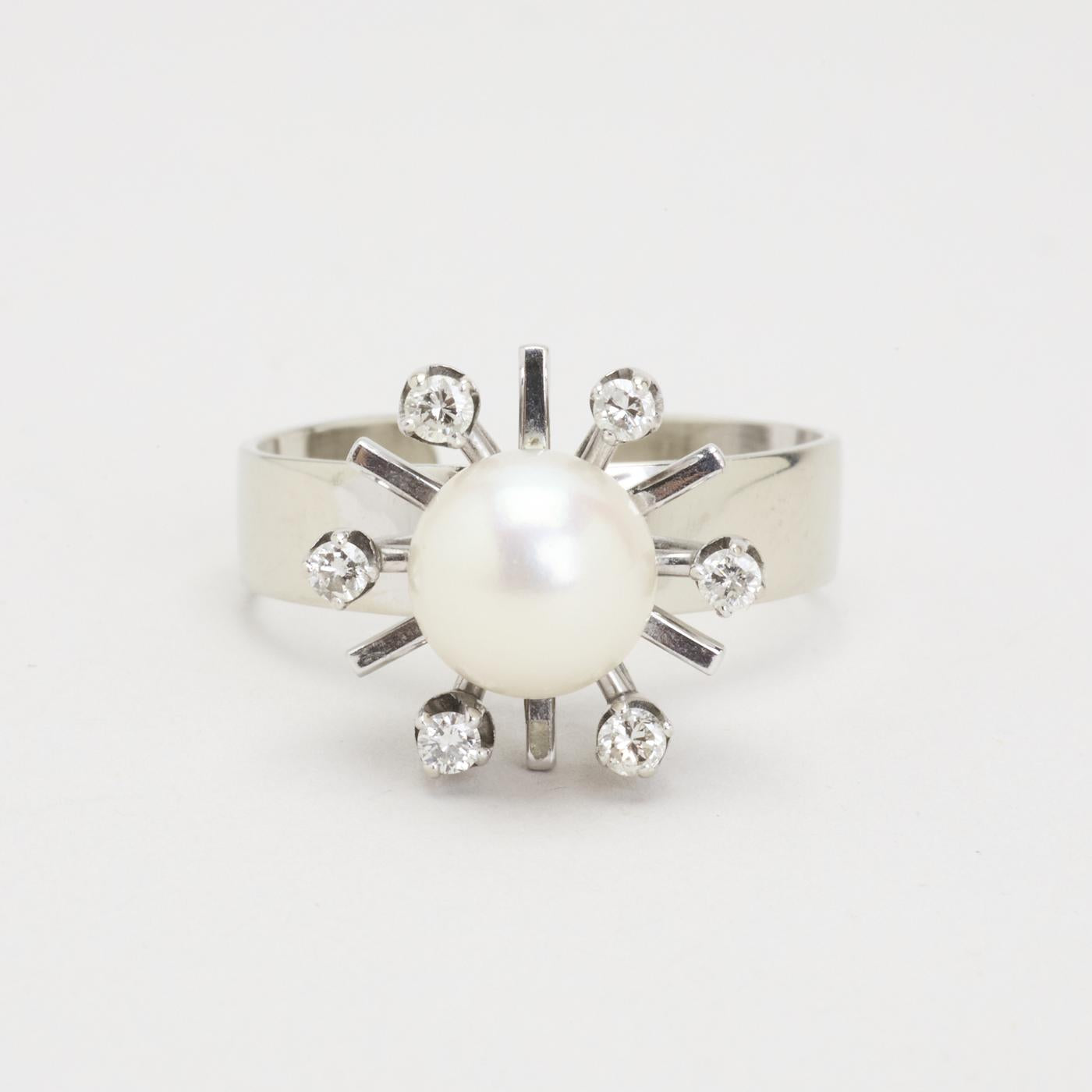 Modell: Perlering med diamant (0.16 ct) i 18 karat med en perle str. 58