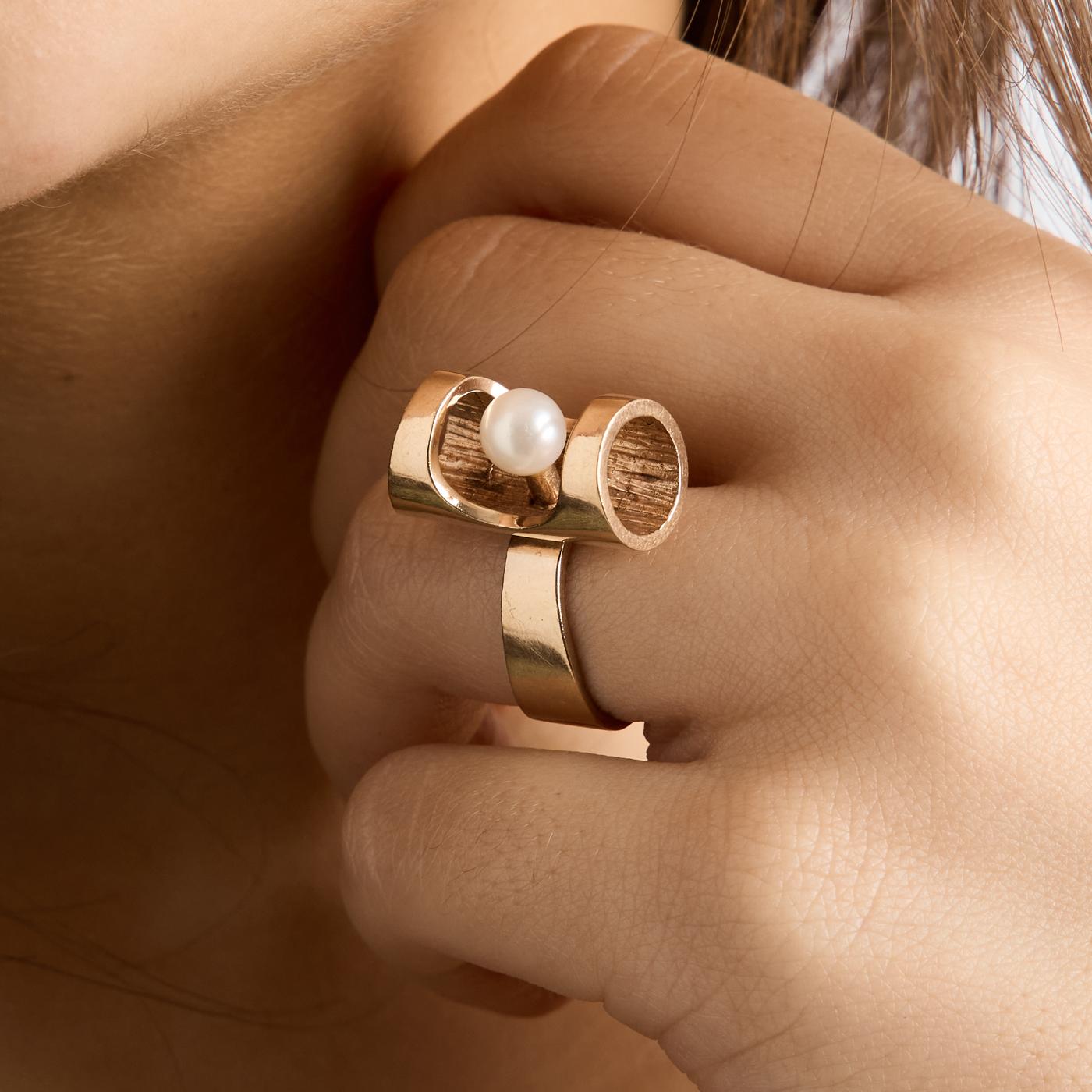Modell: Uttalelse ring i 8 karat med en perle str. 50 - 51