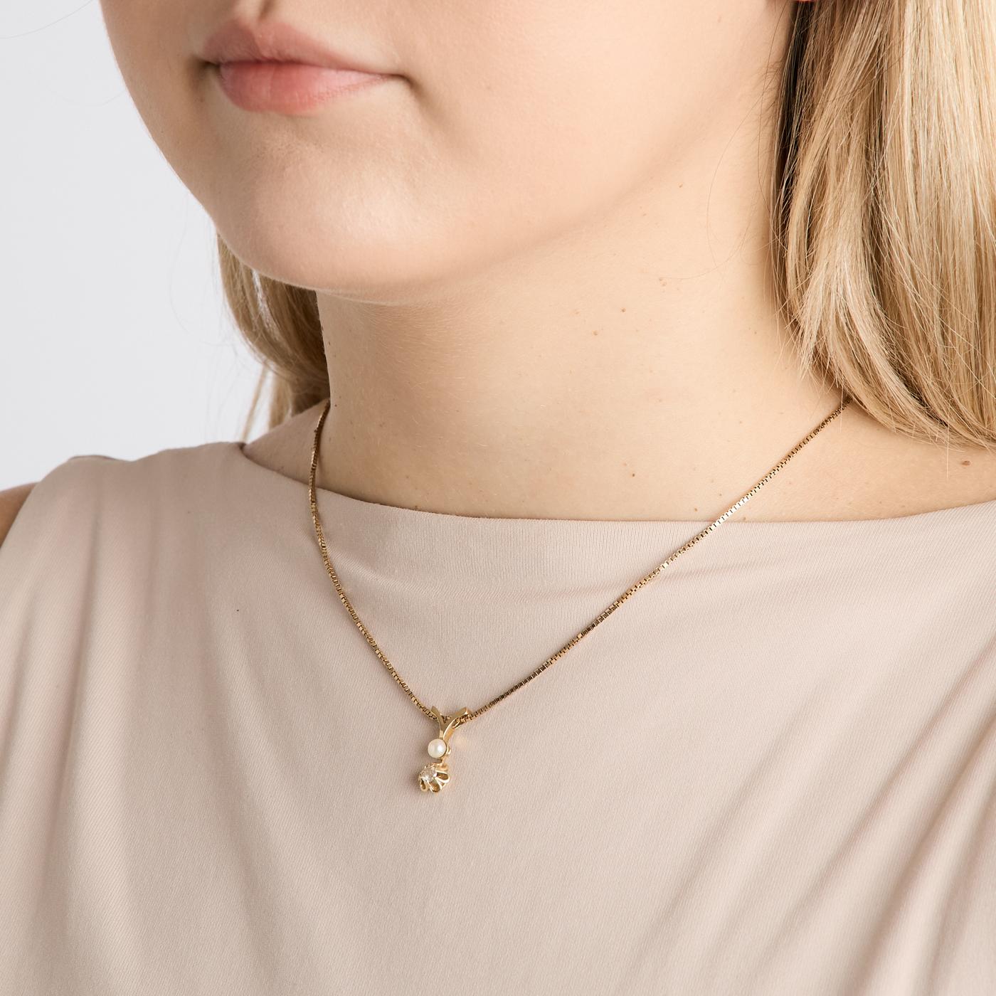 Modell: Anheng med diamant (0.19 ct) i 14 karat med en perle, 1.7 cm