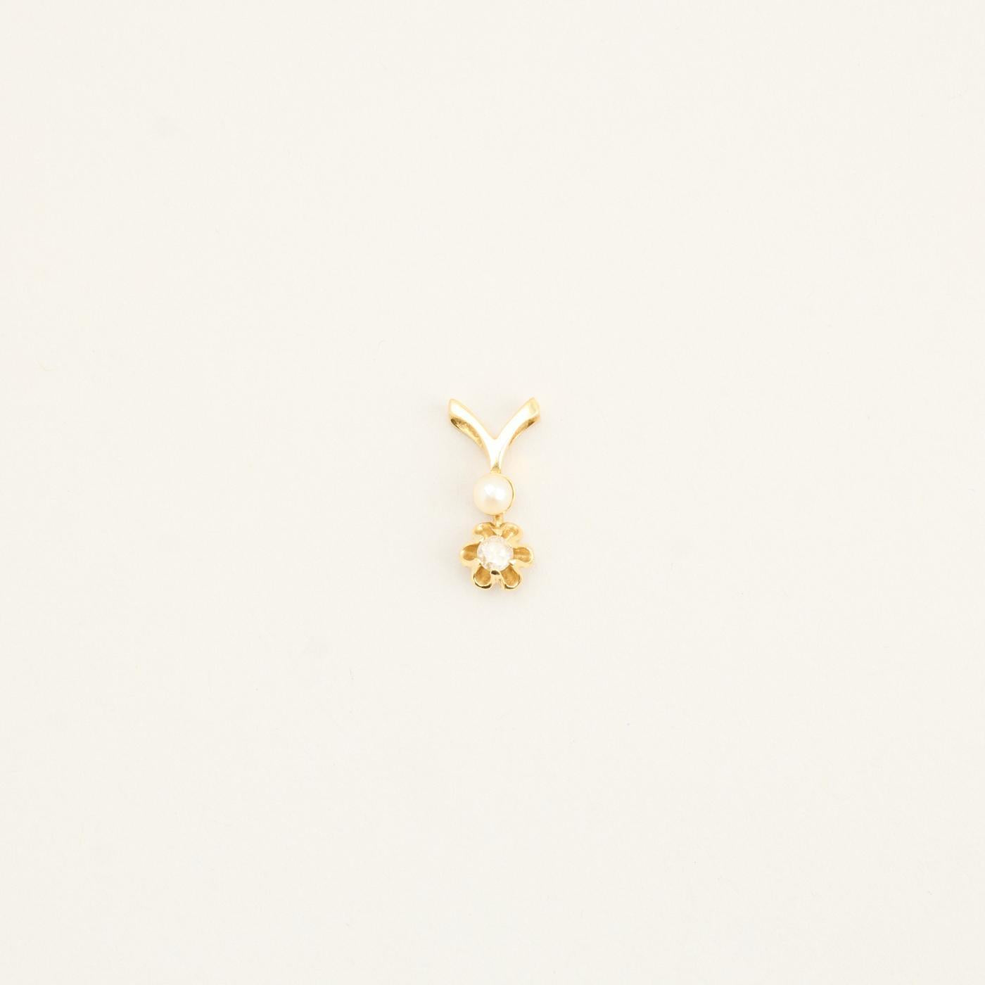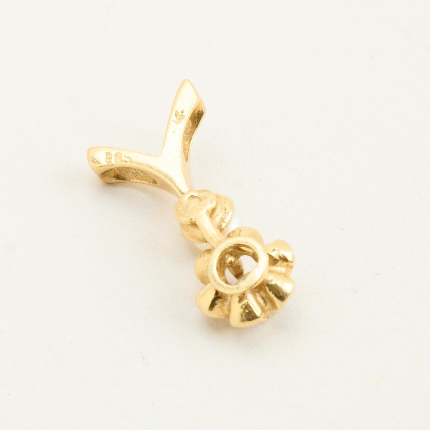 Anheng med diamant (0.19 ct) i 14 karat med en perle, 1.7 cm