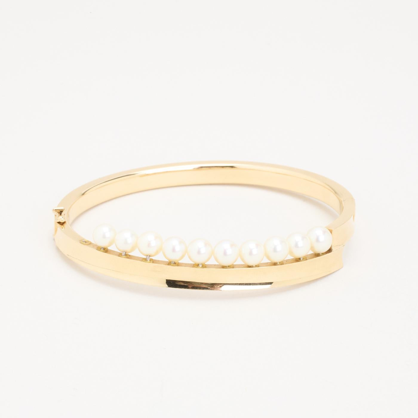 Modell: Armring i 14 karat med en perle, 5.8 cm