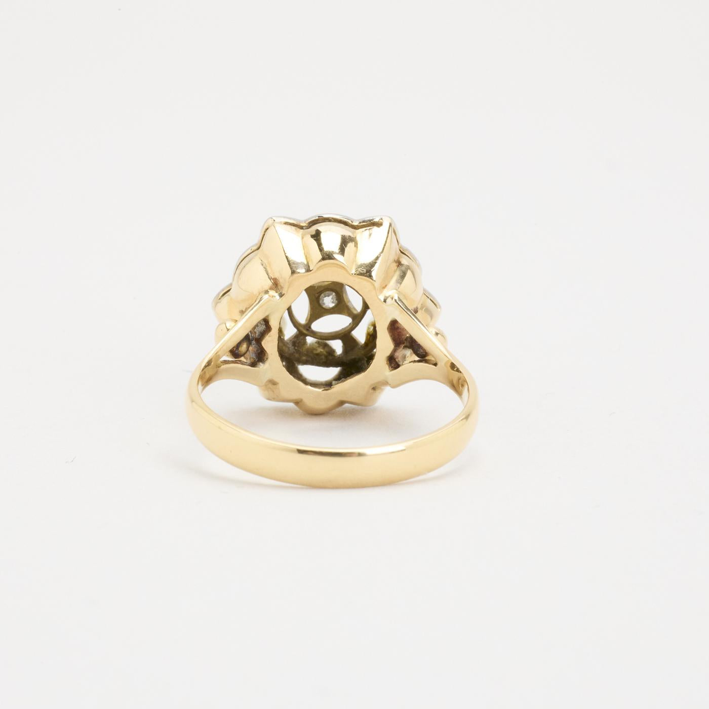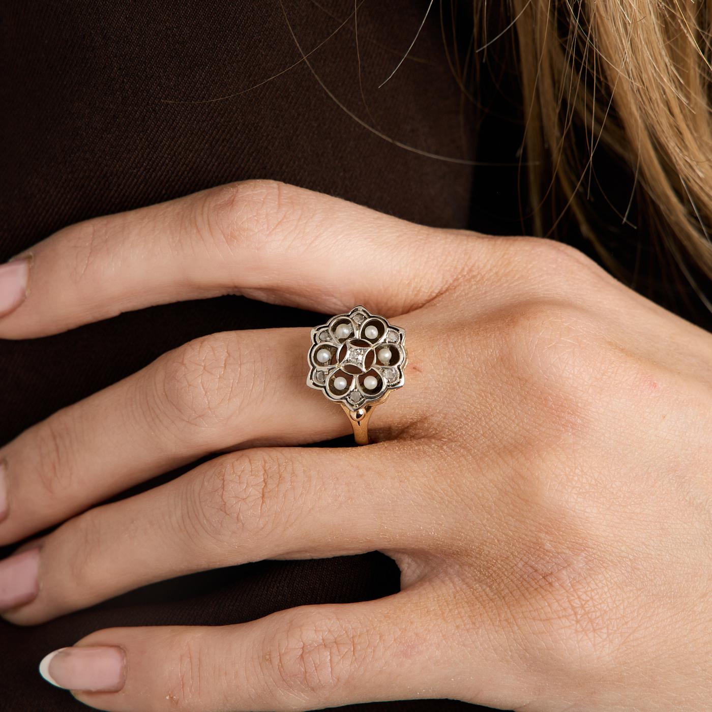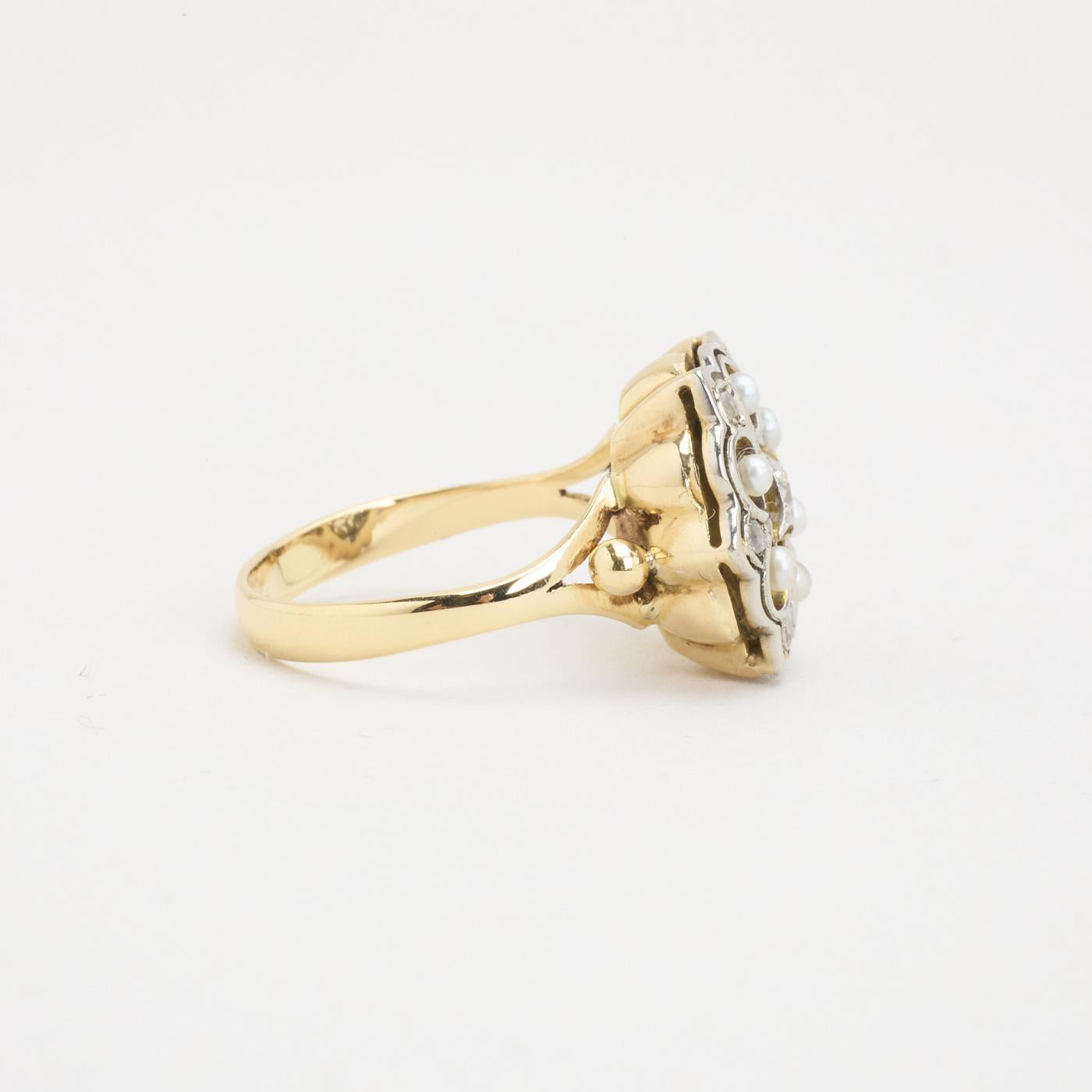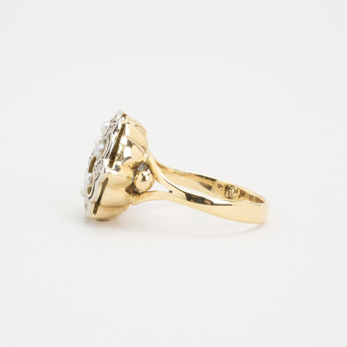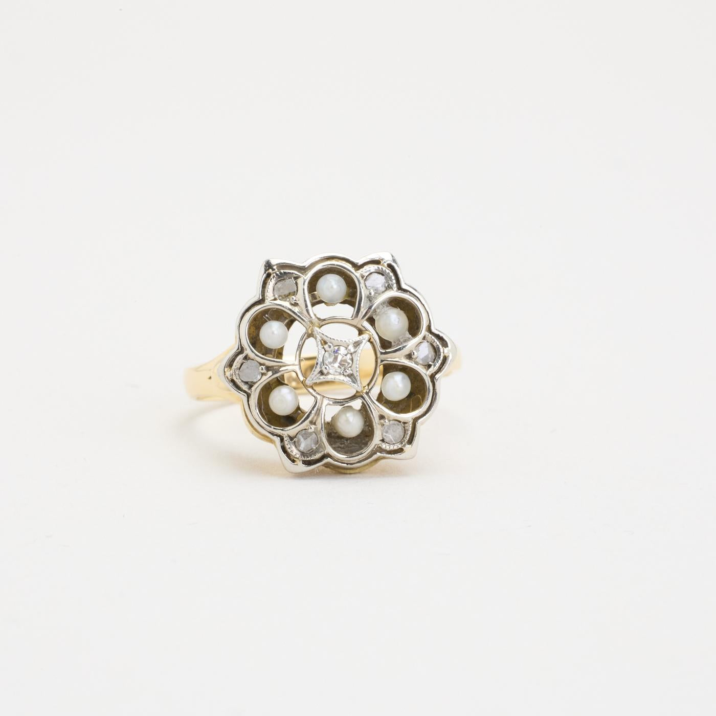 Modell: Rosettring med diamant (0.05 ct) i 18 karat med en perle str. 53