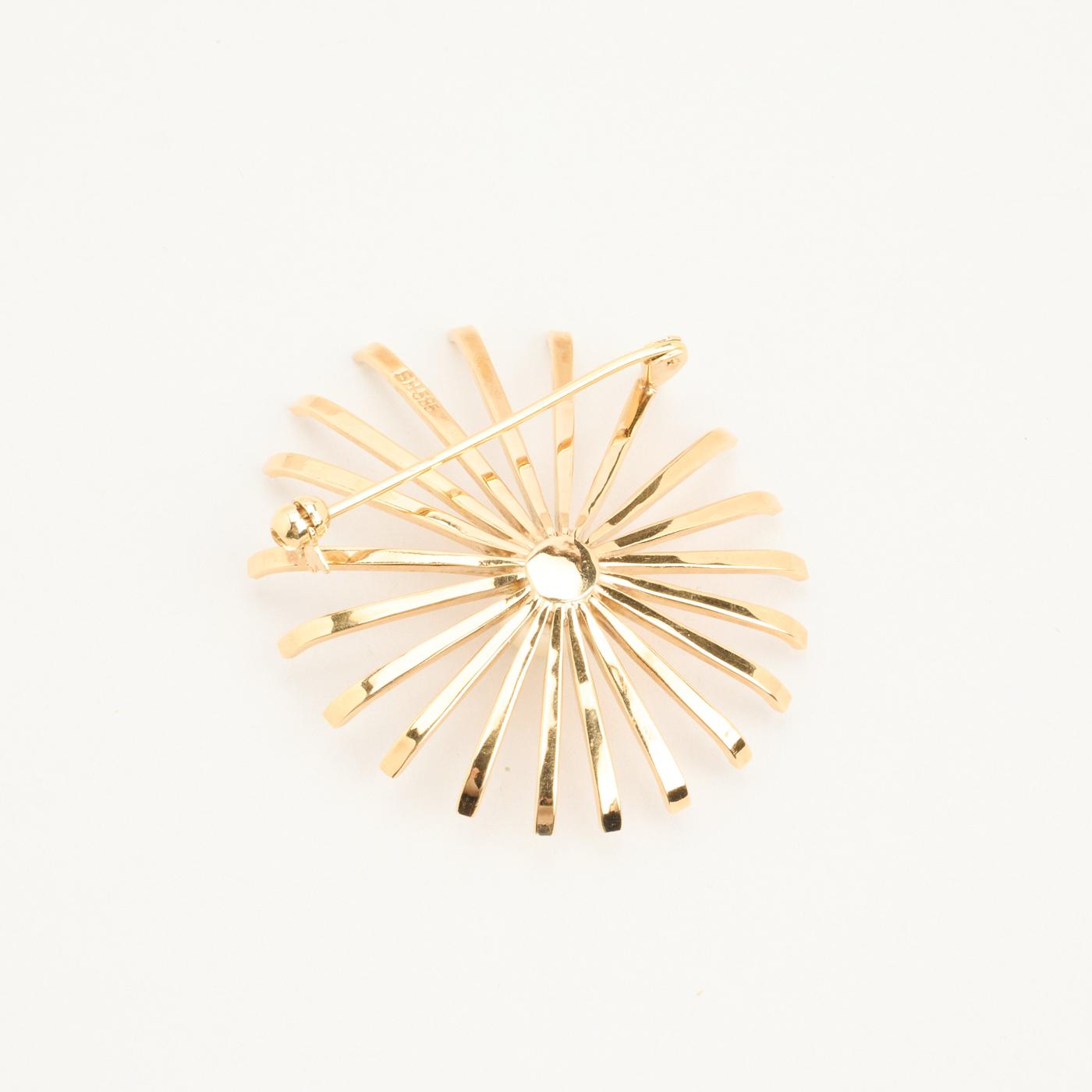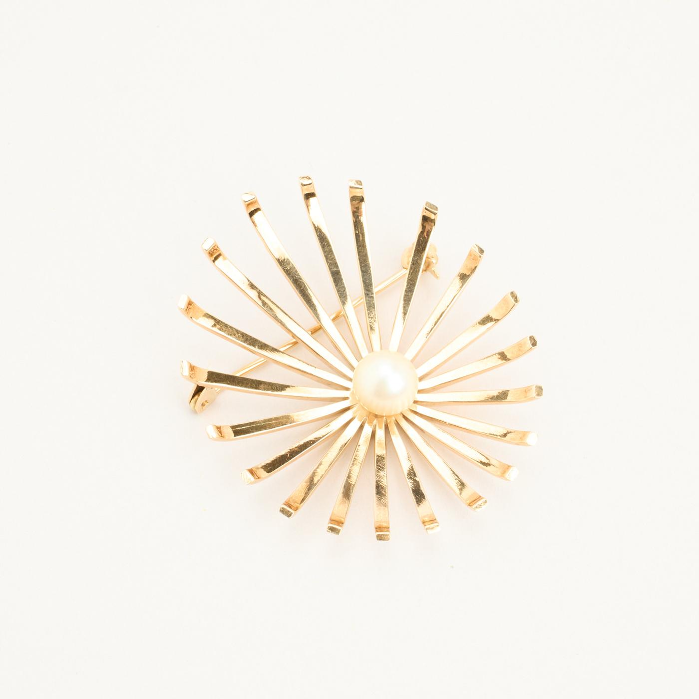 Blomst Brosje i 14 karat med en perle, 4.5 cm