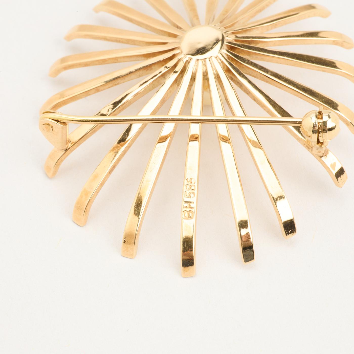 Modell: Blomst Brosje i 14 karat med en perle, 4.5 cm
