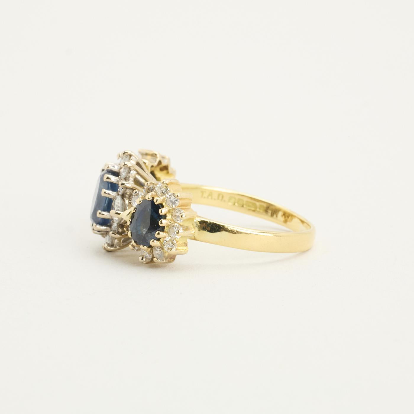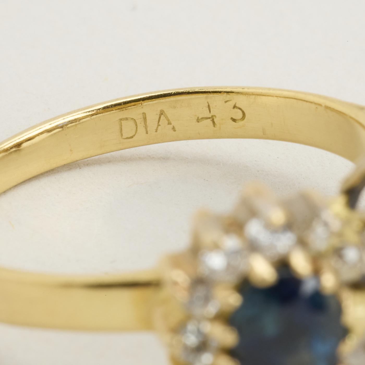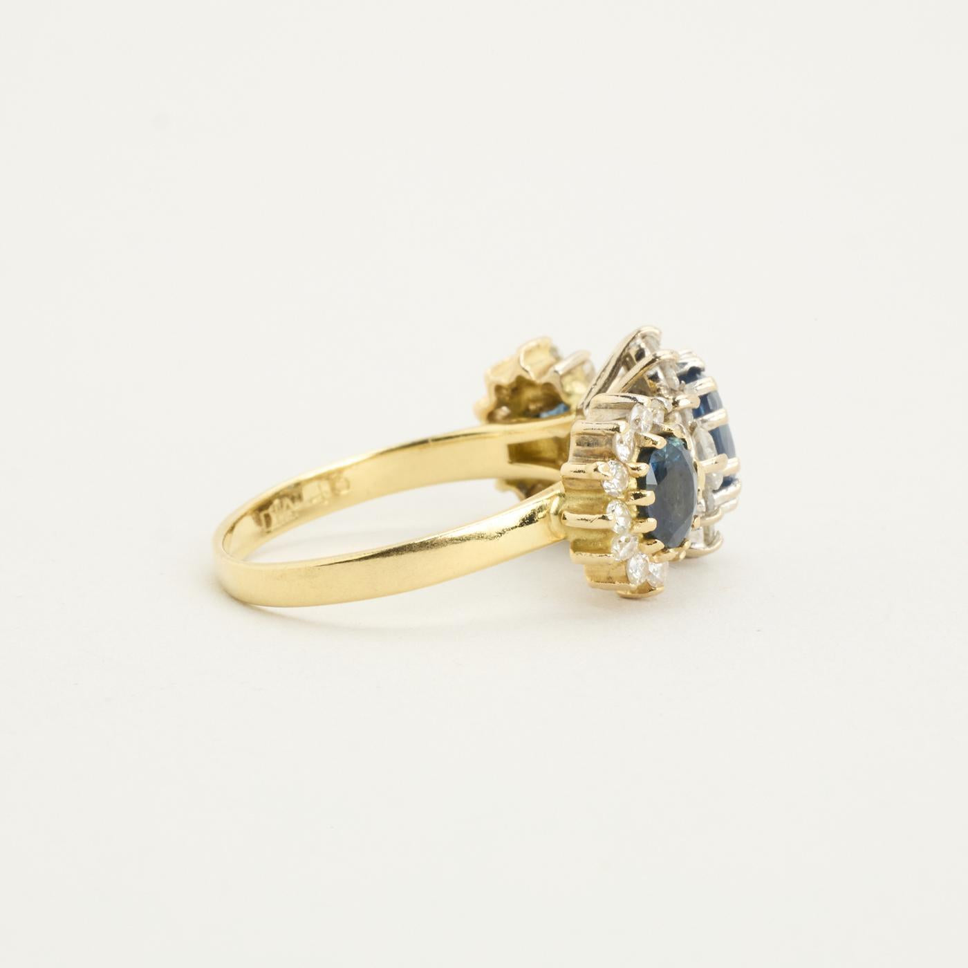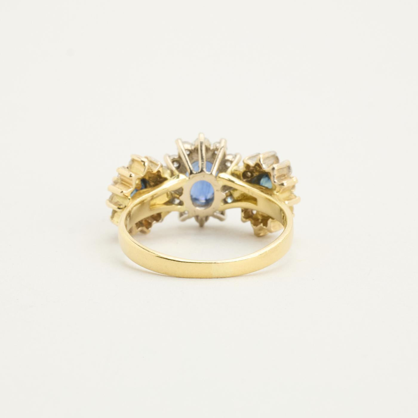 Rosettring med diamant (0.83 ct) i 18 karat med en safir str. 53 - 54