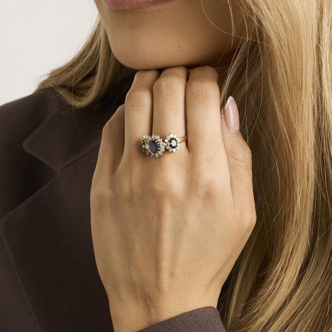 Modell: Rosettring med diamant (0.83 ct) i 18 karat med en safir str. 53 - 54
