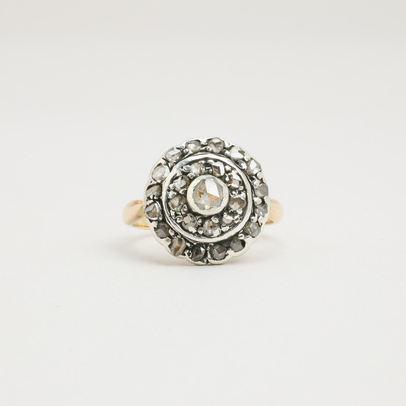 Modell: Rosettring med diamant (0.11 ct) i 14 karat str. 50