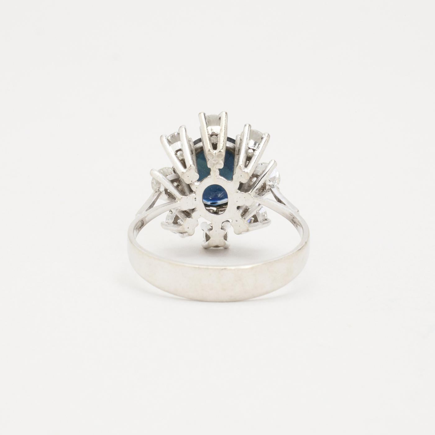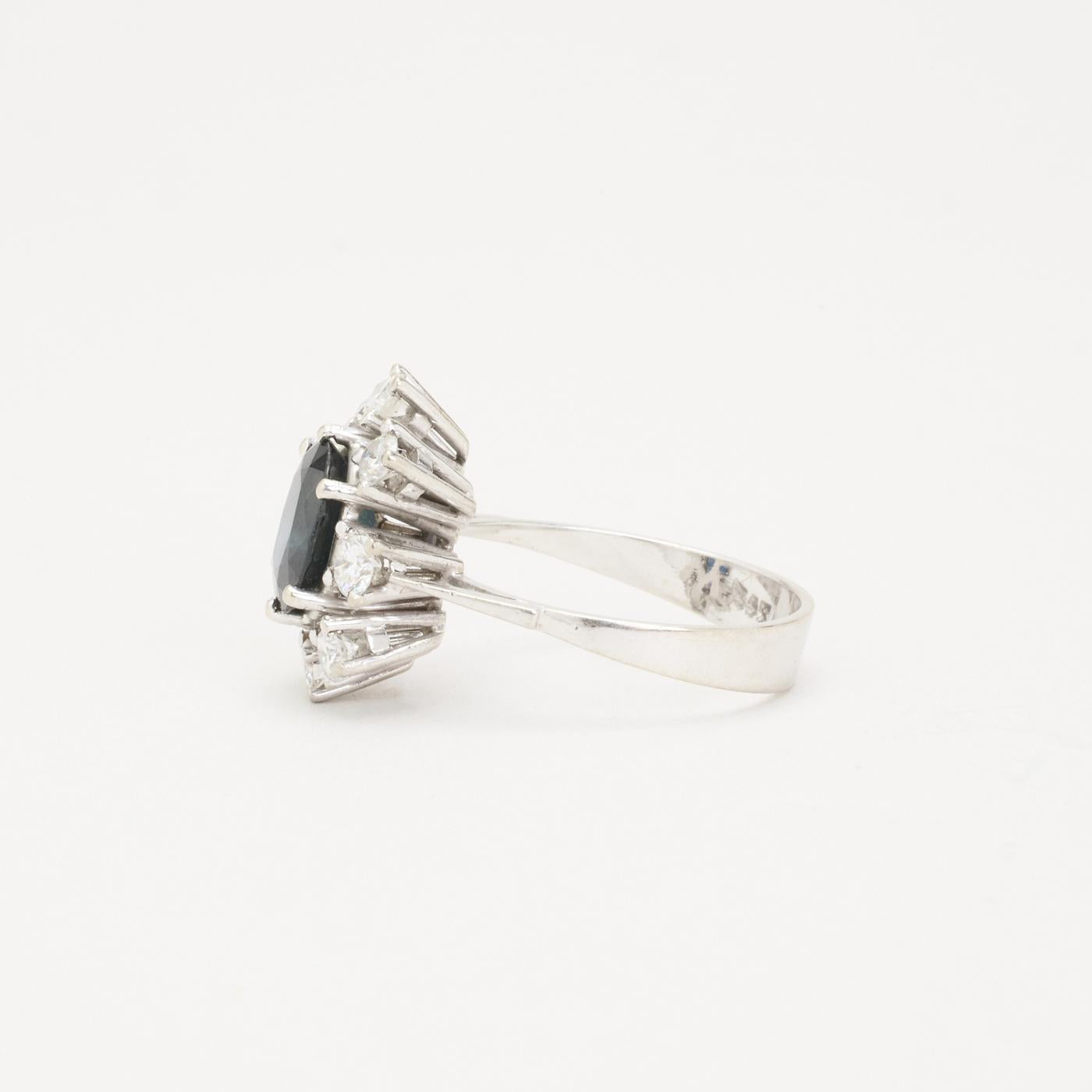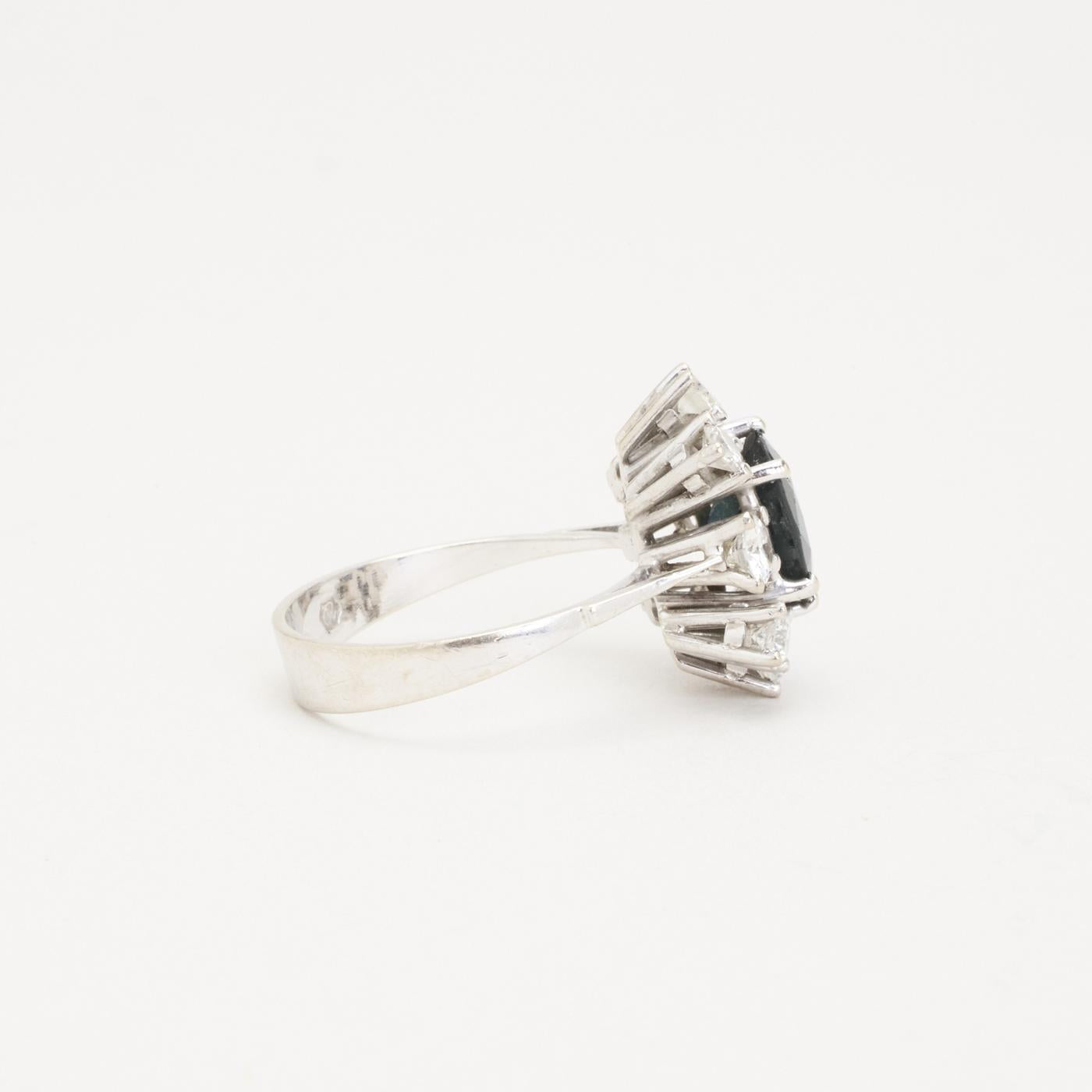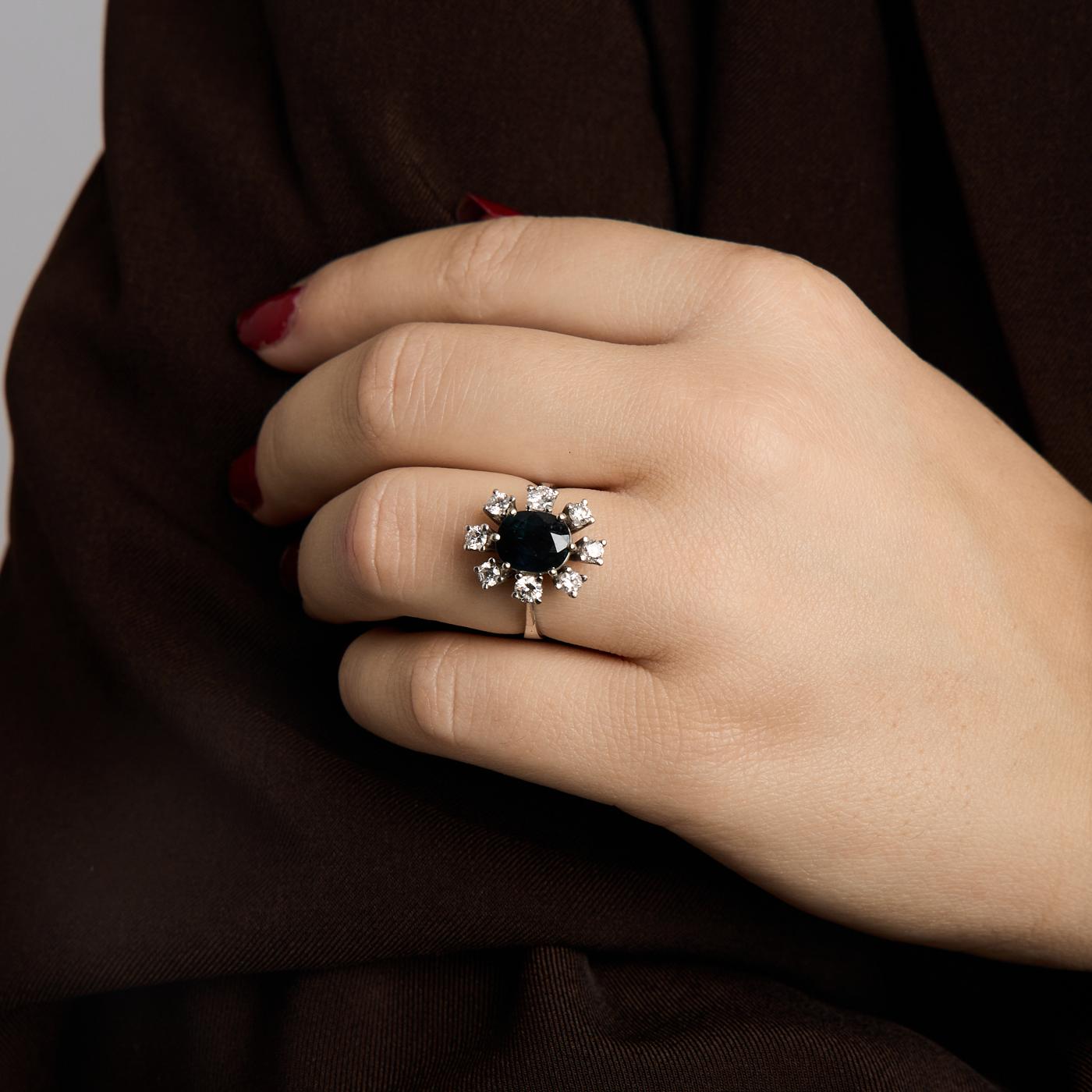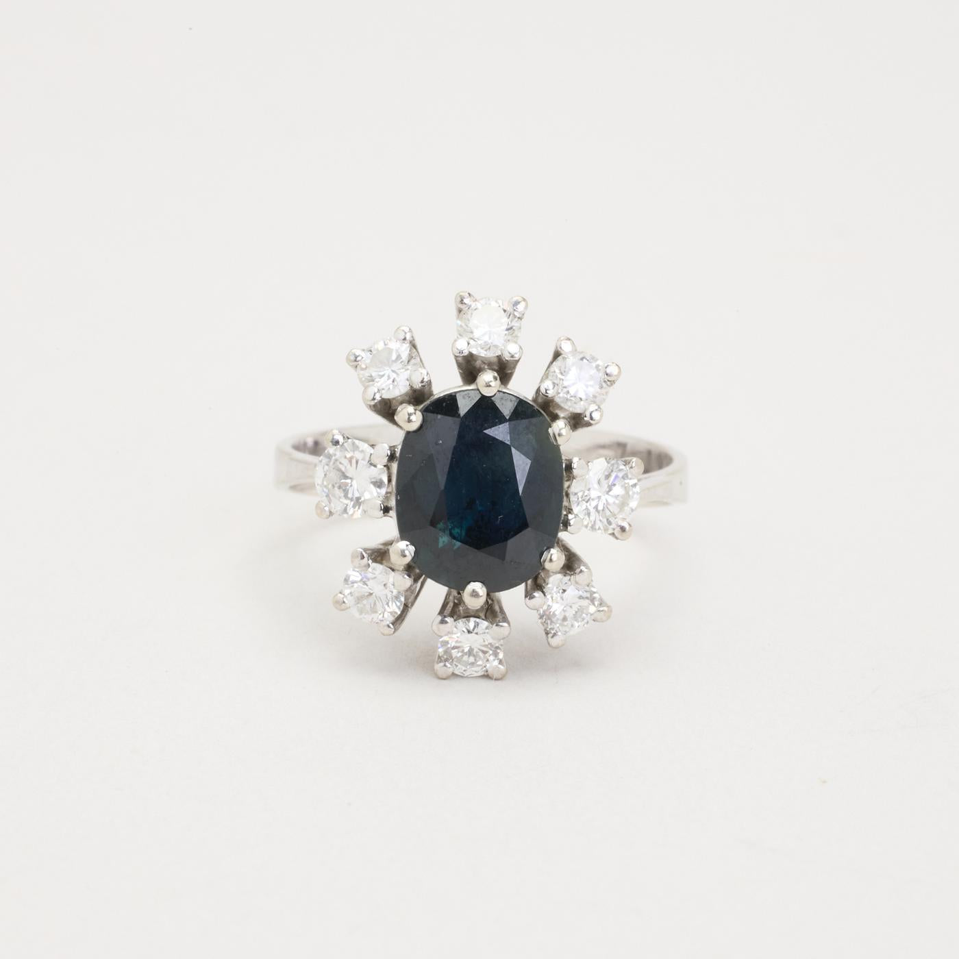 Modell: Rosettring med diamant (0.8 ct) i 14 karat med en safir str. 54