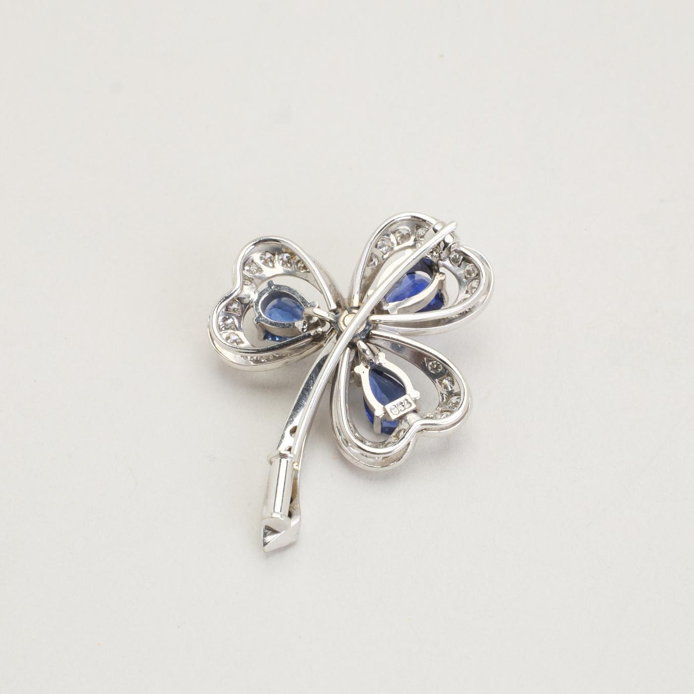 Modell: Brosje med diamant (0.74 ct) i 18 karat med en safir, 3.5 cm