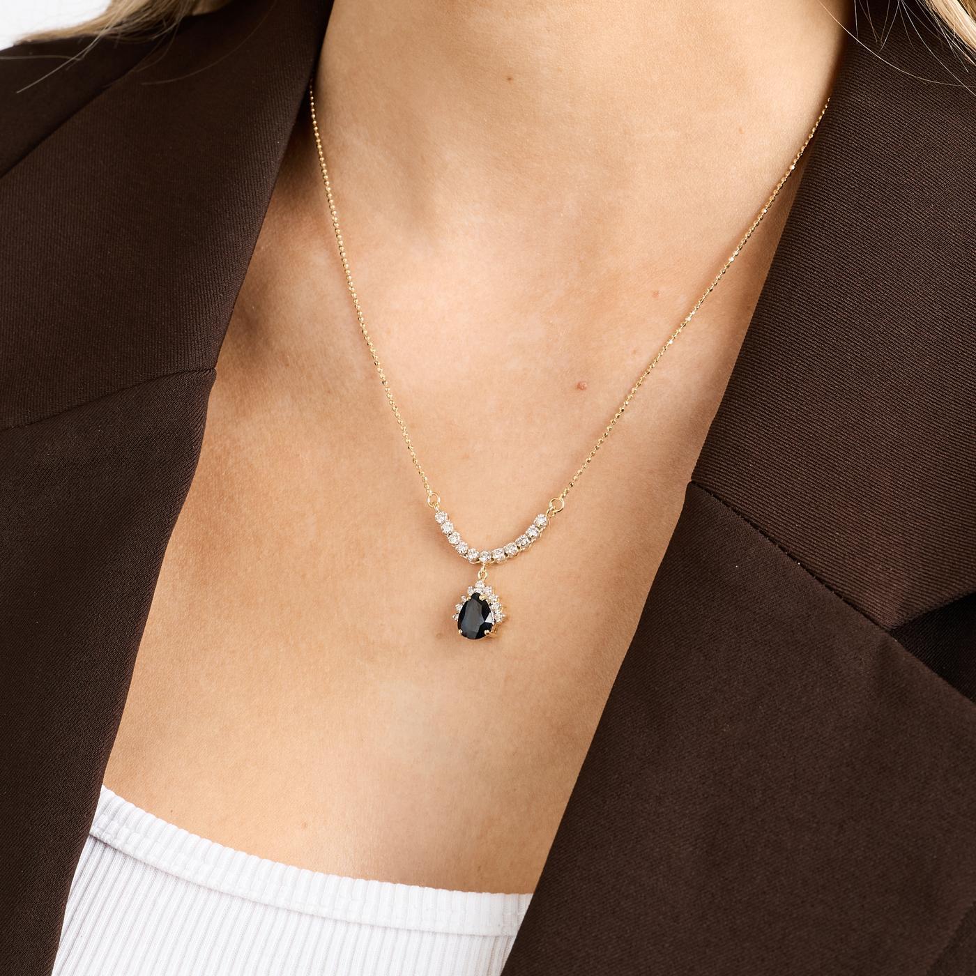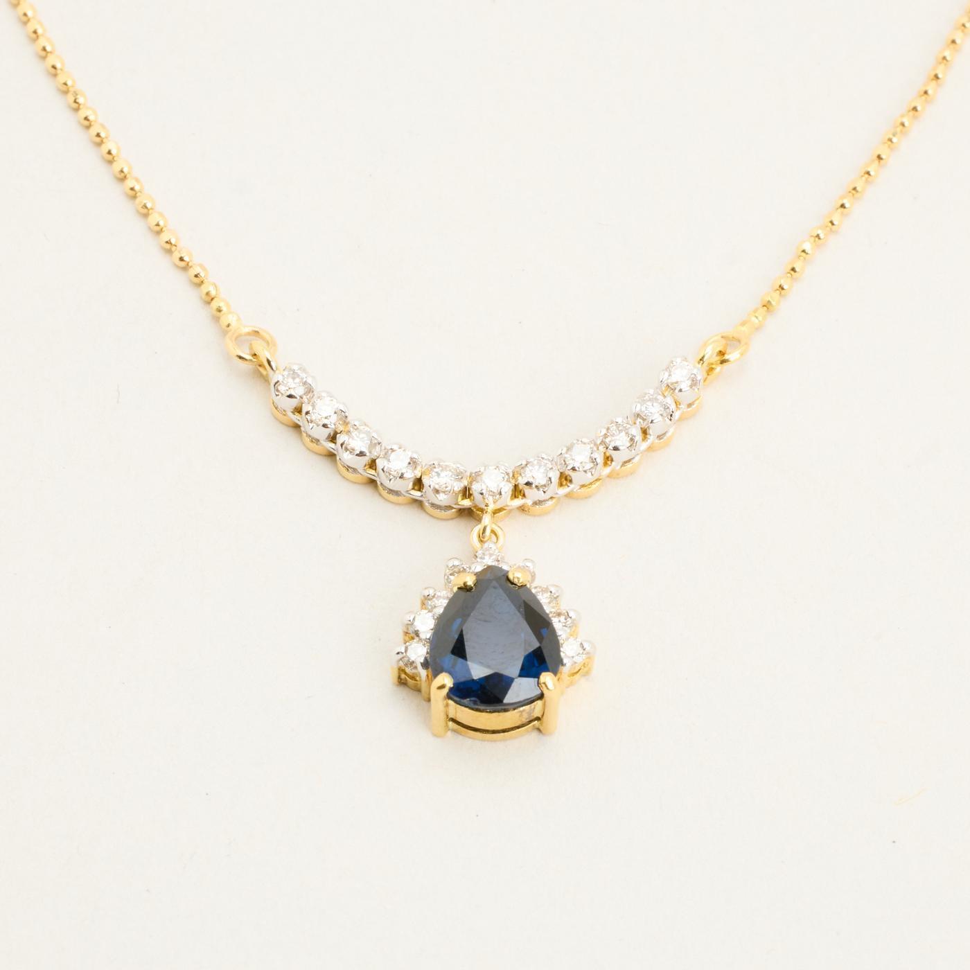 Modell: Ball Halskjede med diamant (0.33 ct) i 18 karat med en safir, 44 cm
