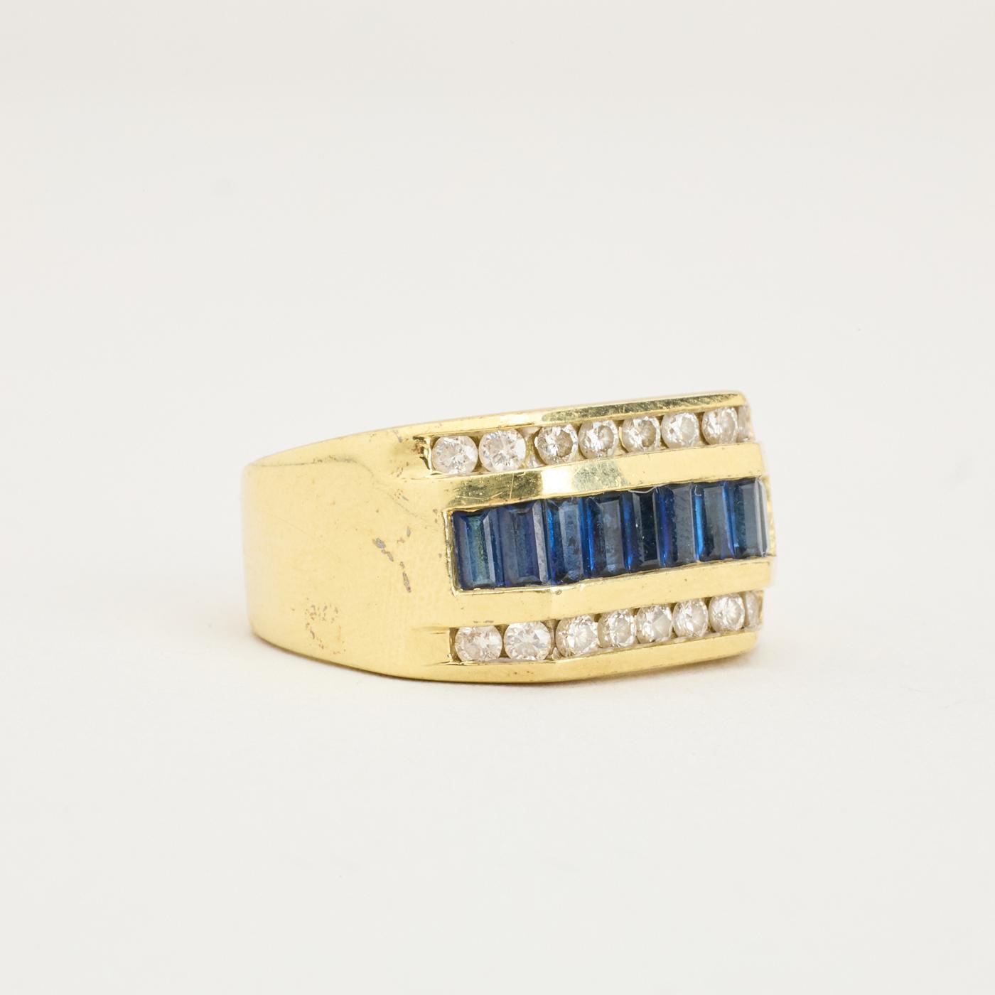 Uttalelse ring med diamant (0.27 ct) i 14 karat med en safir str. 60 - 61