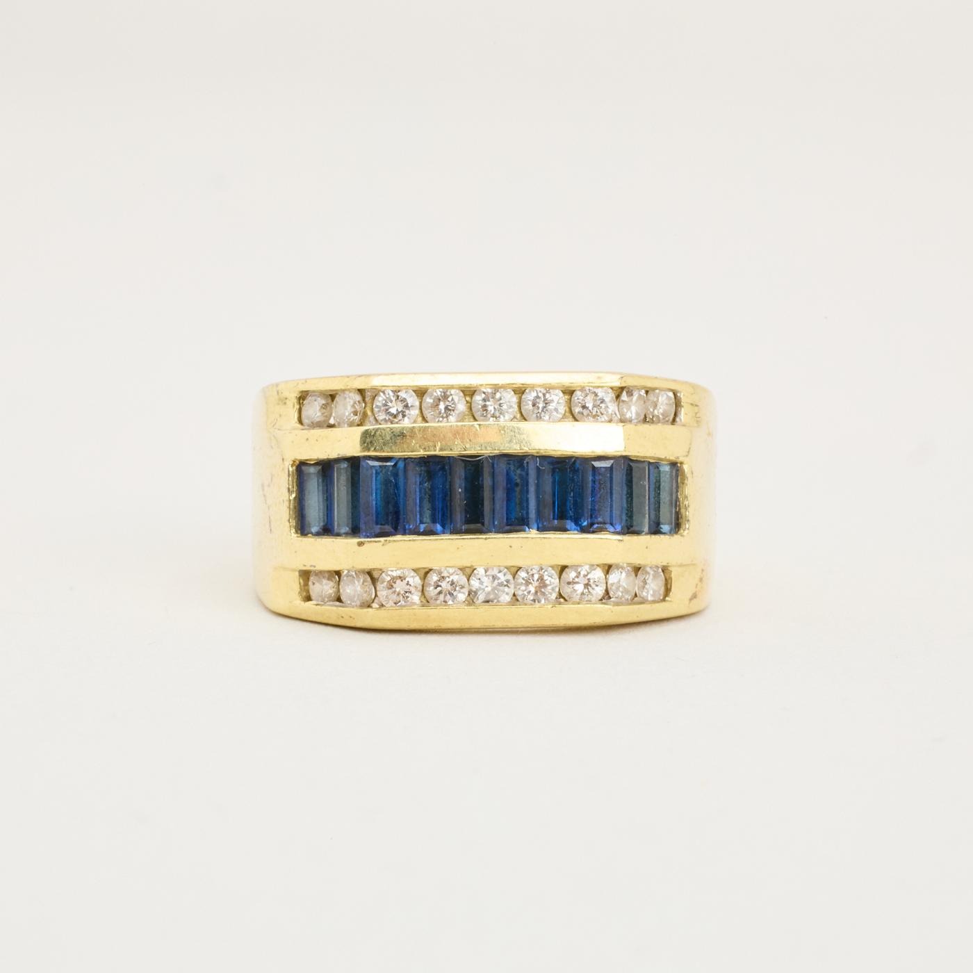 Modell: Uttalelse ring med diamant (0.27 ct) i 14 karat med en safir str. 60 - 61