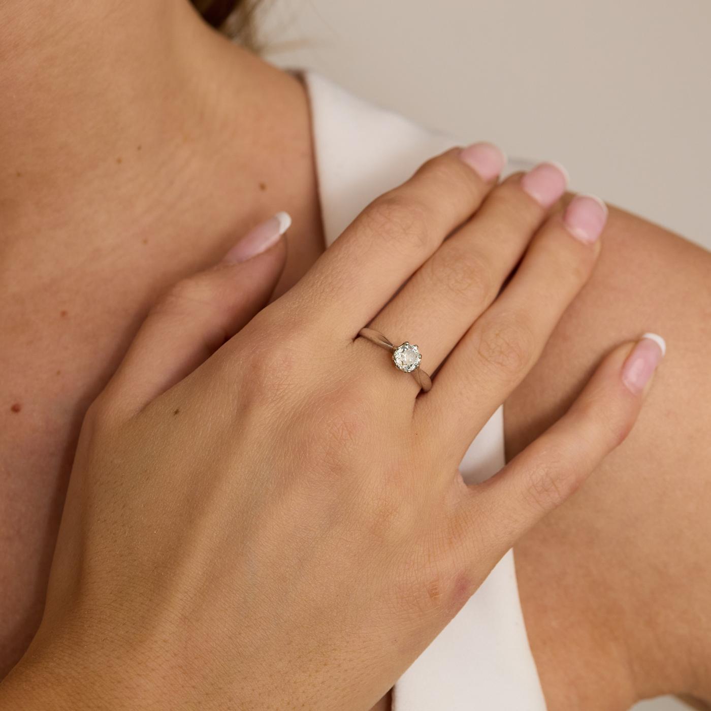 Modell: Solitairring med diamant (0.68 ct) i 14 karat str. 52
