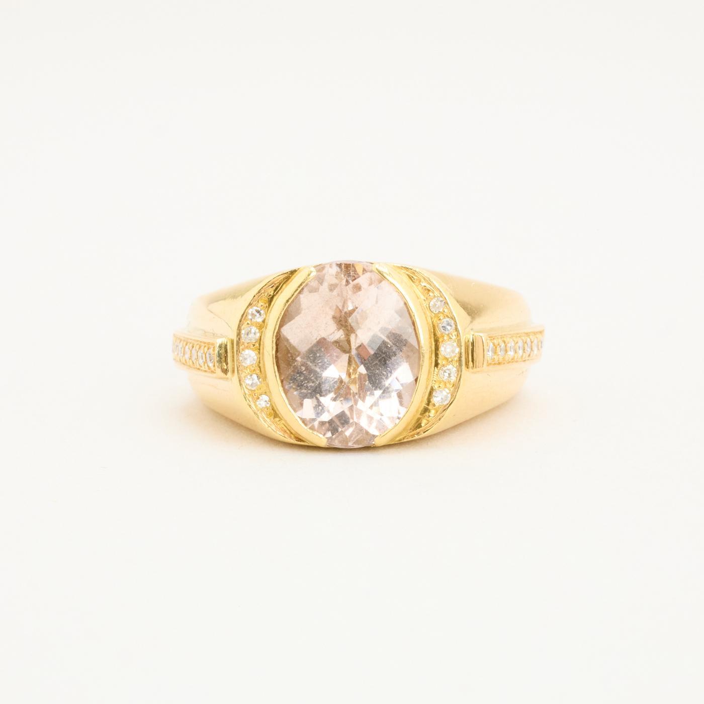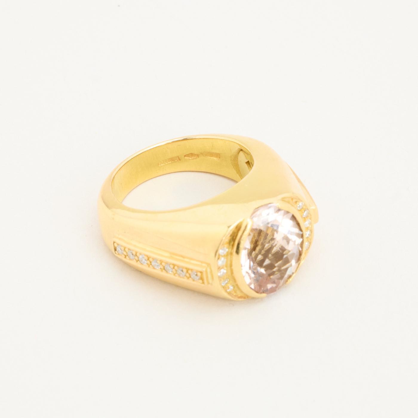 Signaturring med diamant (0.17 ct) i 18 karat med en morganit str. 54