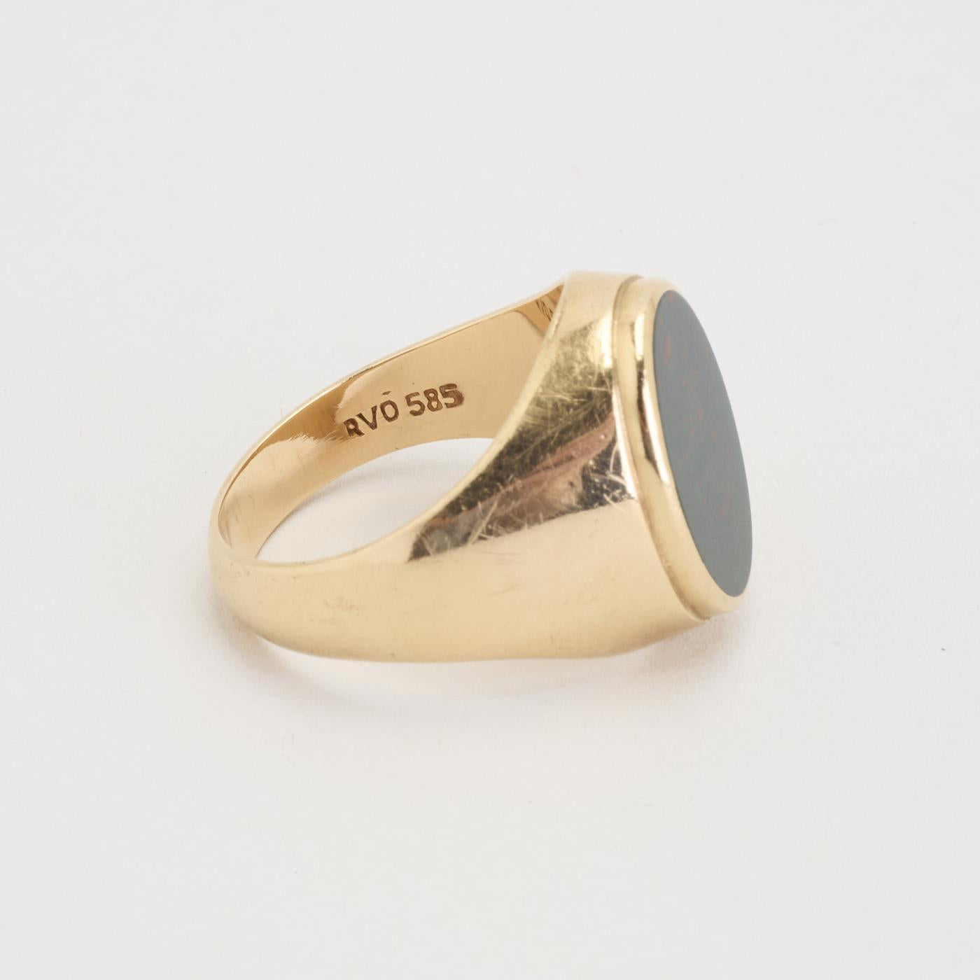 Modell: Signaturring i 14 karat med en blodstein str. 60