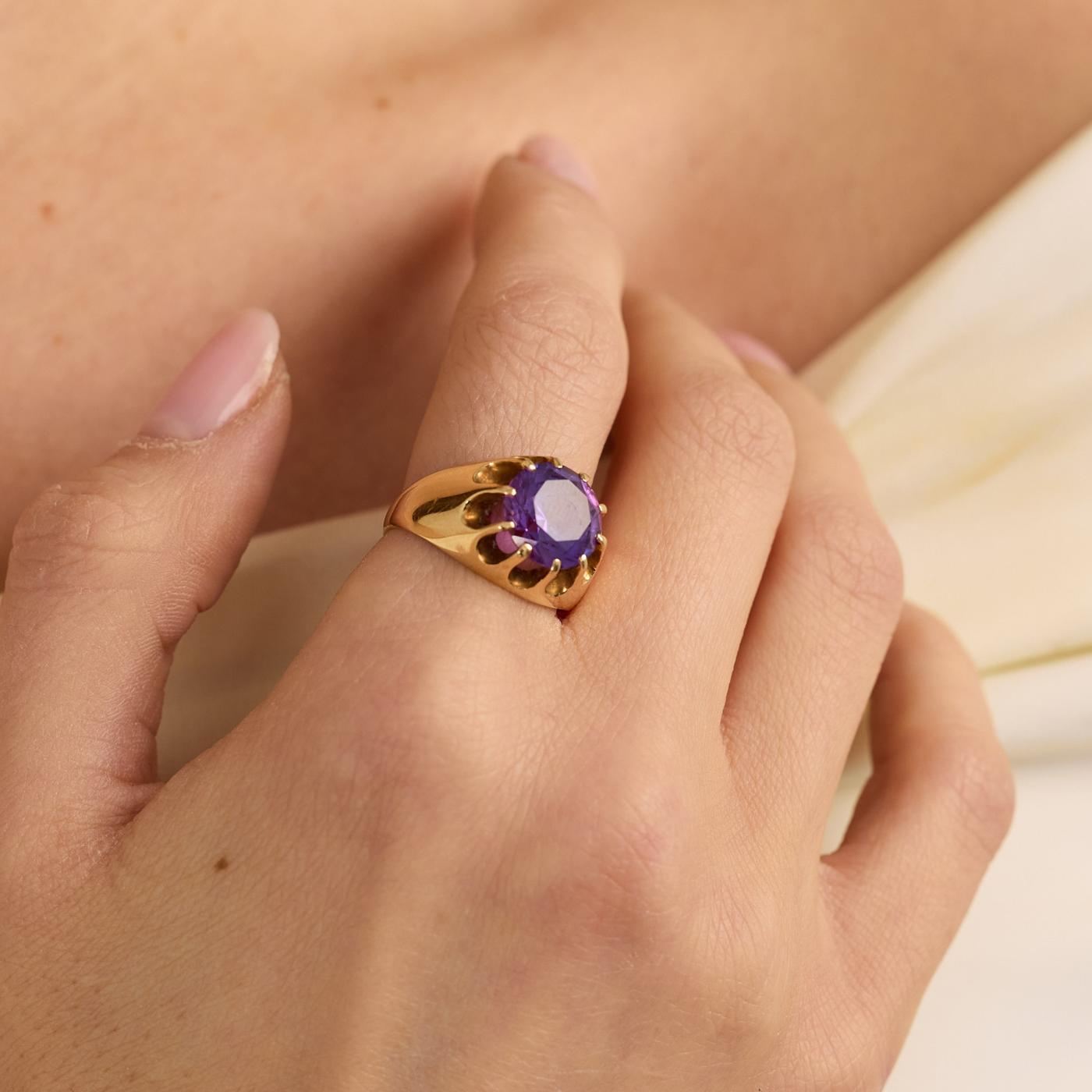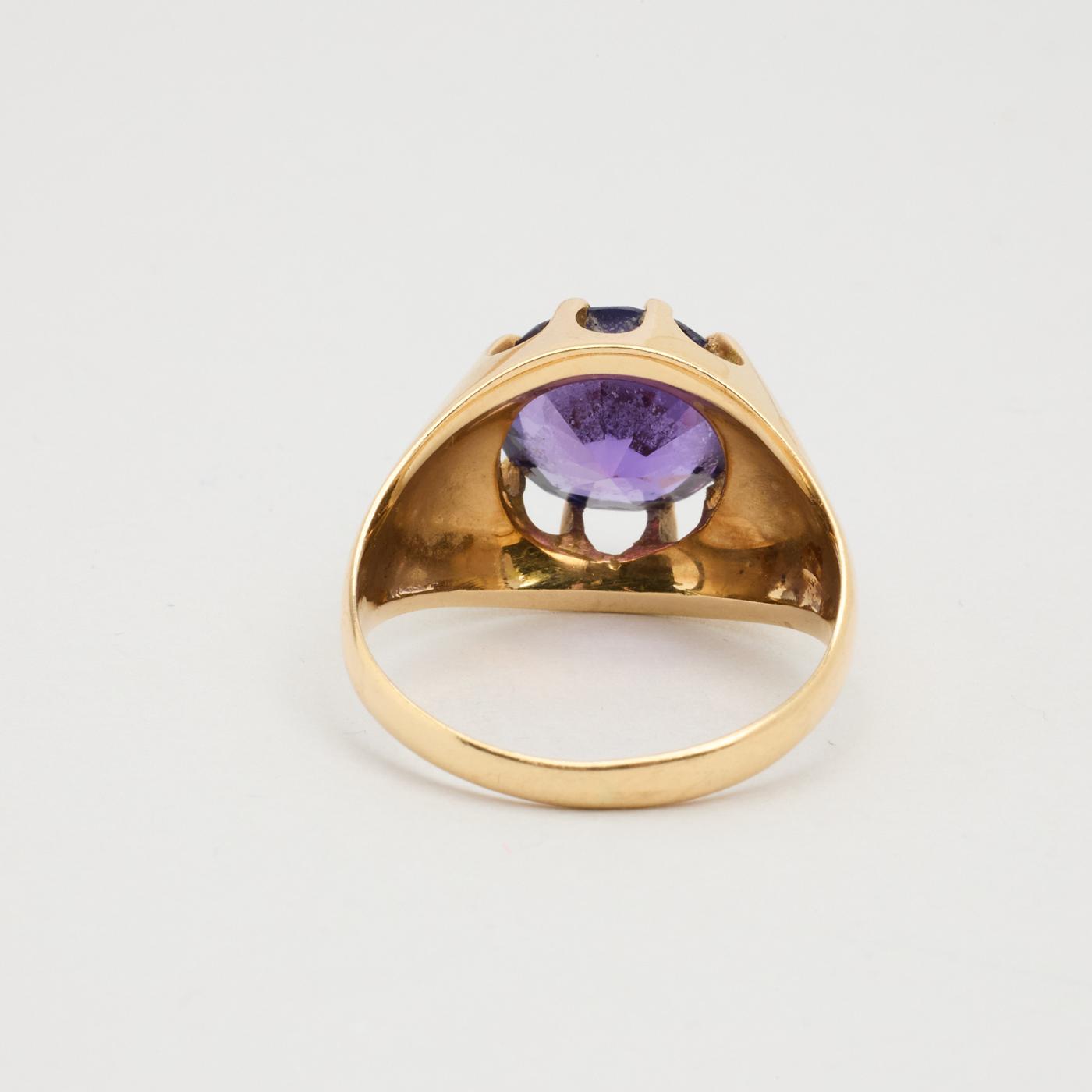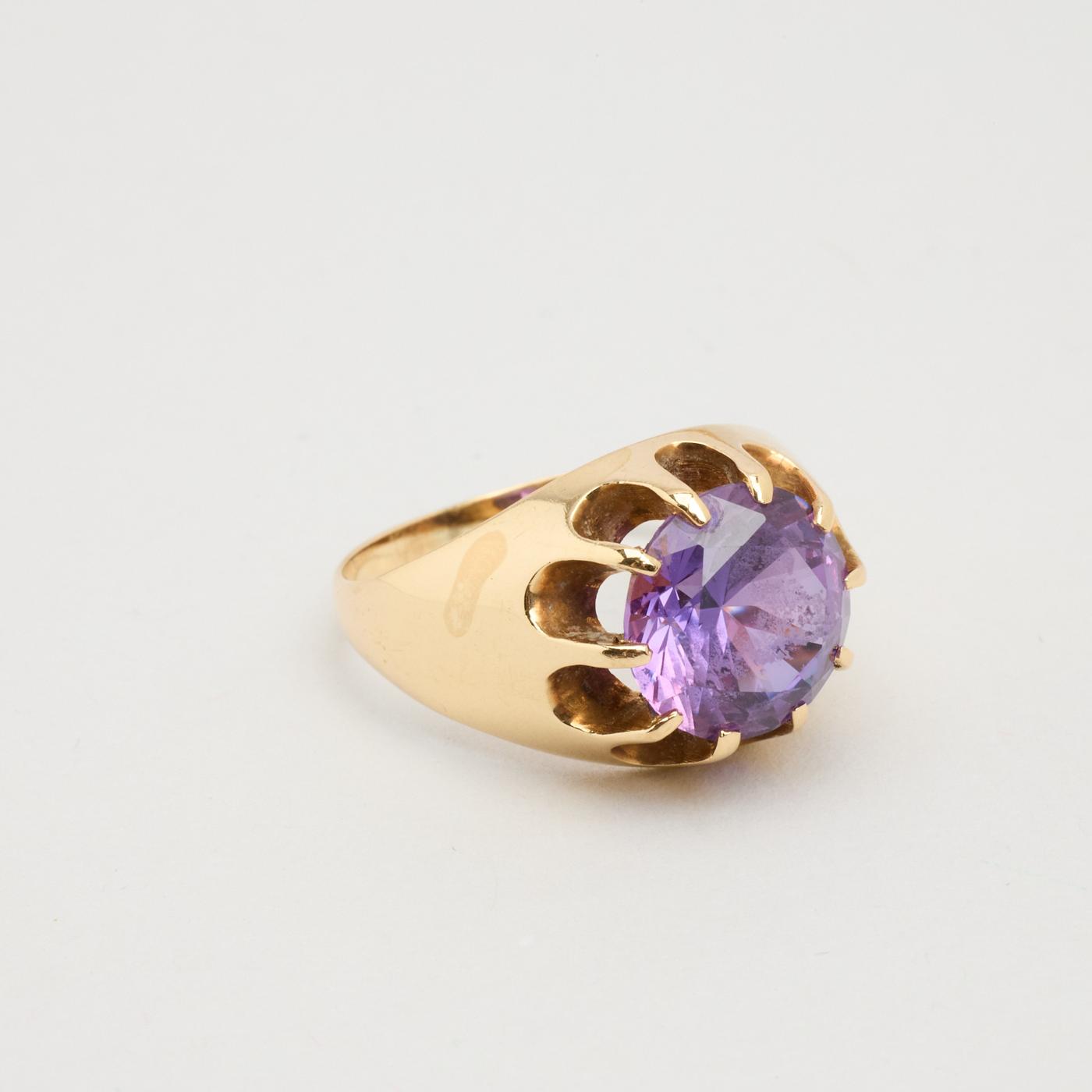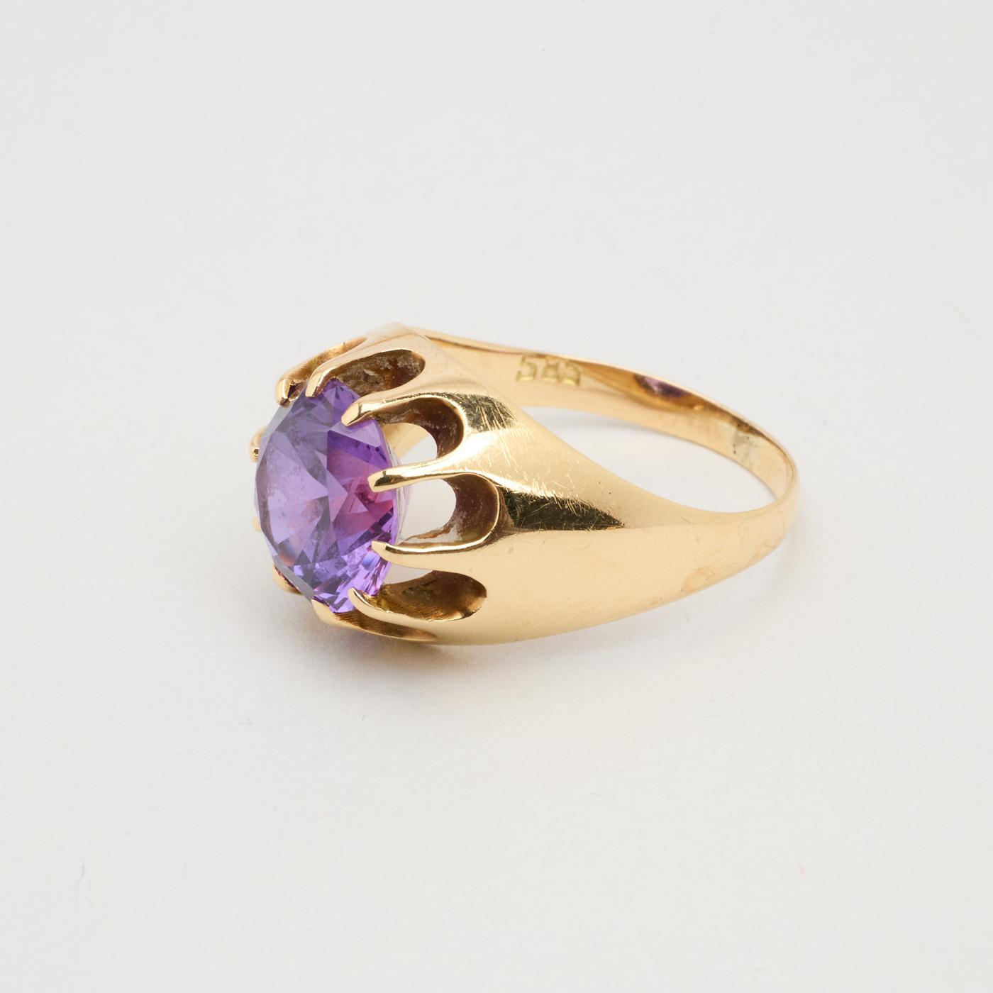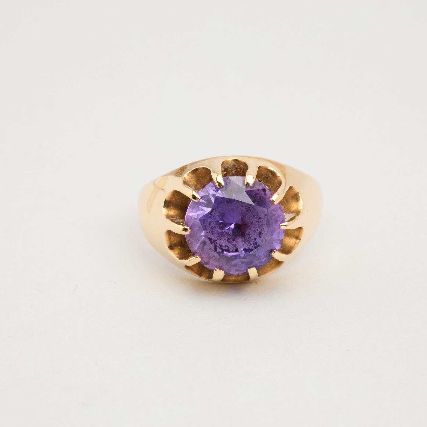 Modell: Signaturring i 14 karat med en syntetisk safir str. 55 - 56