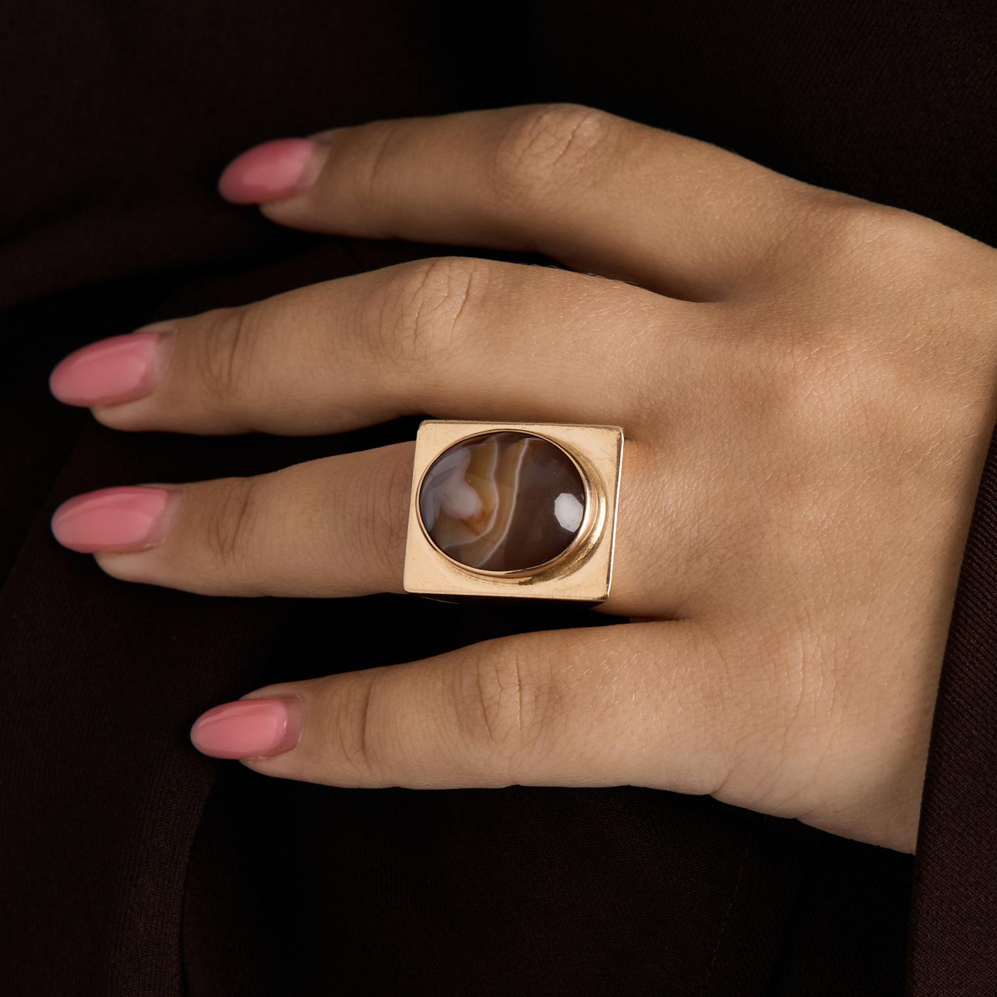 Modell: Signaturring i 14 karat med en kalsedon str. 53