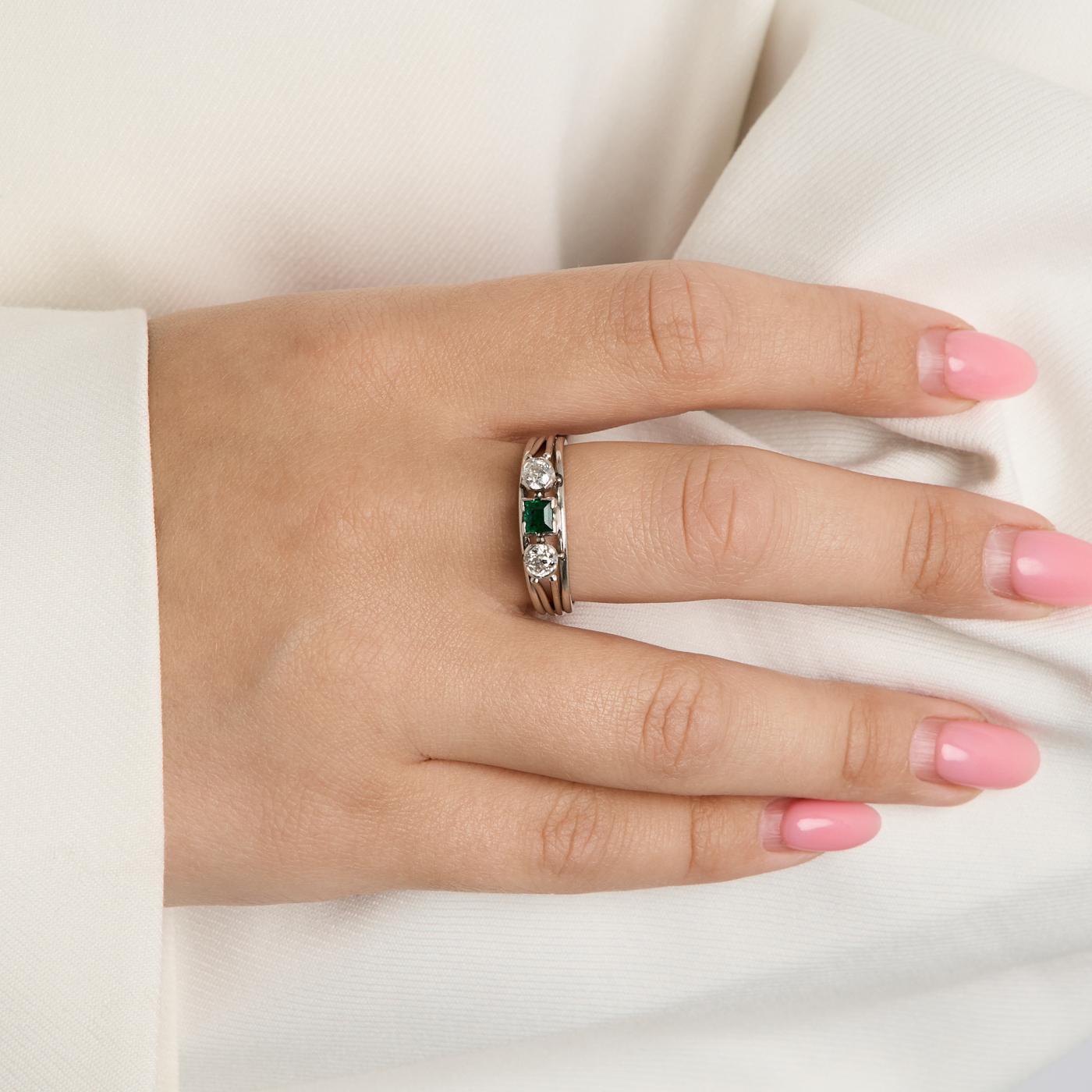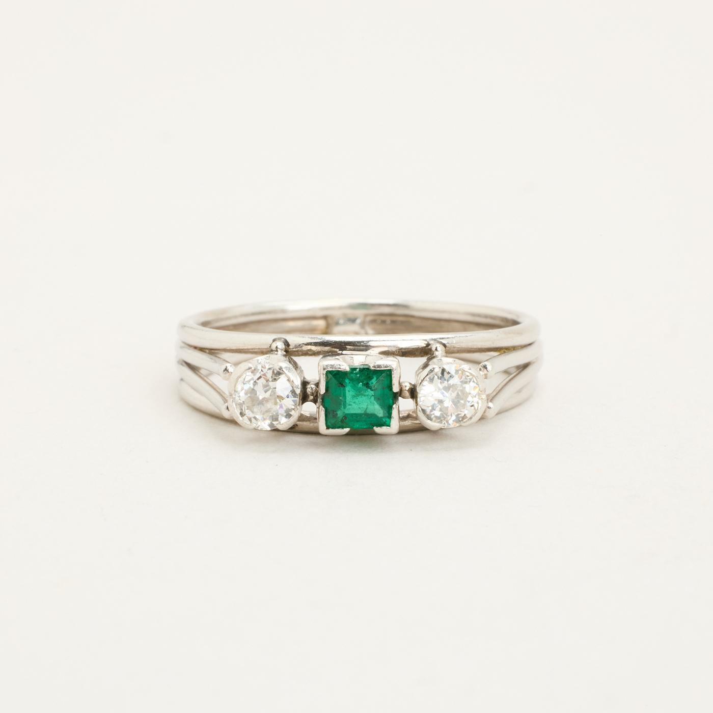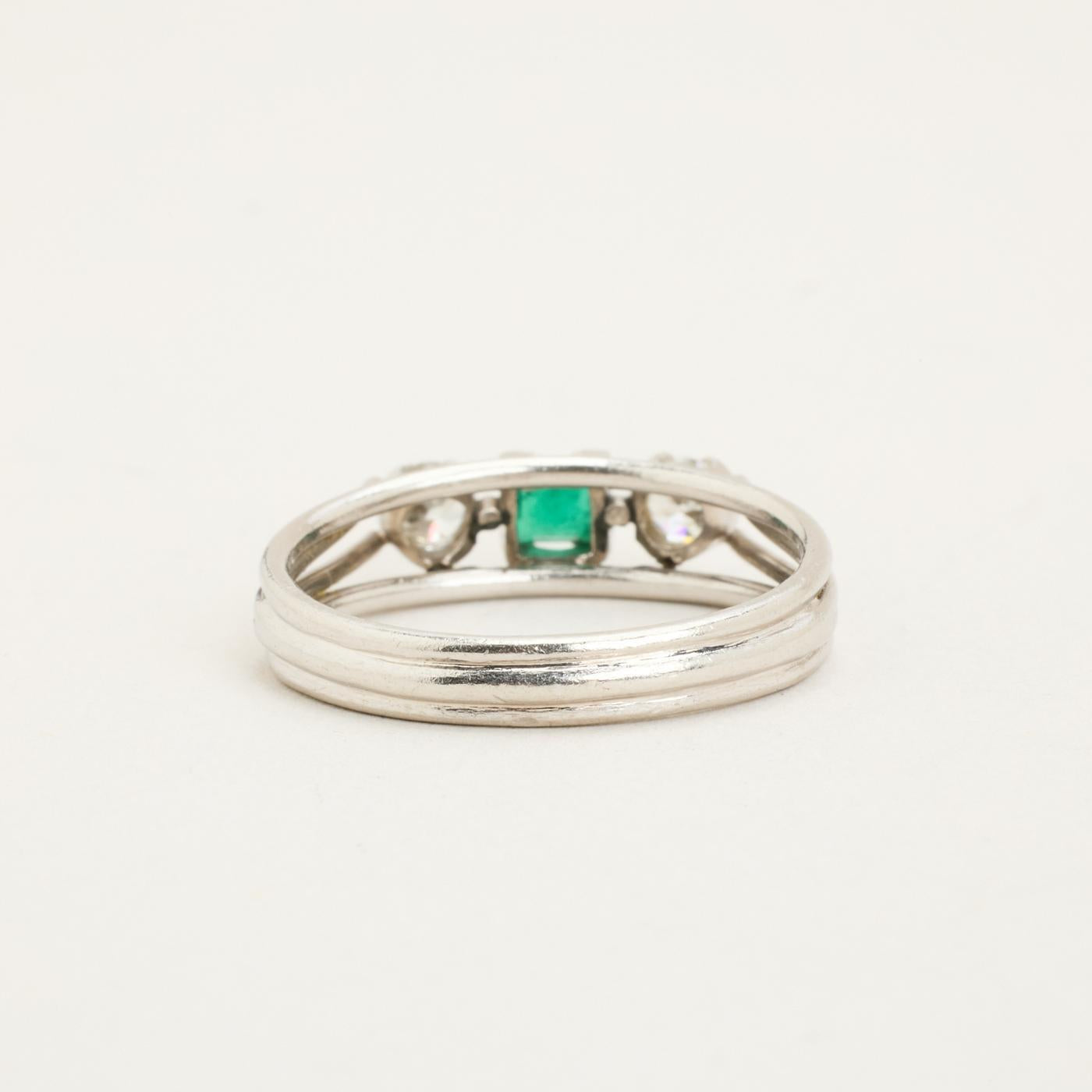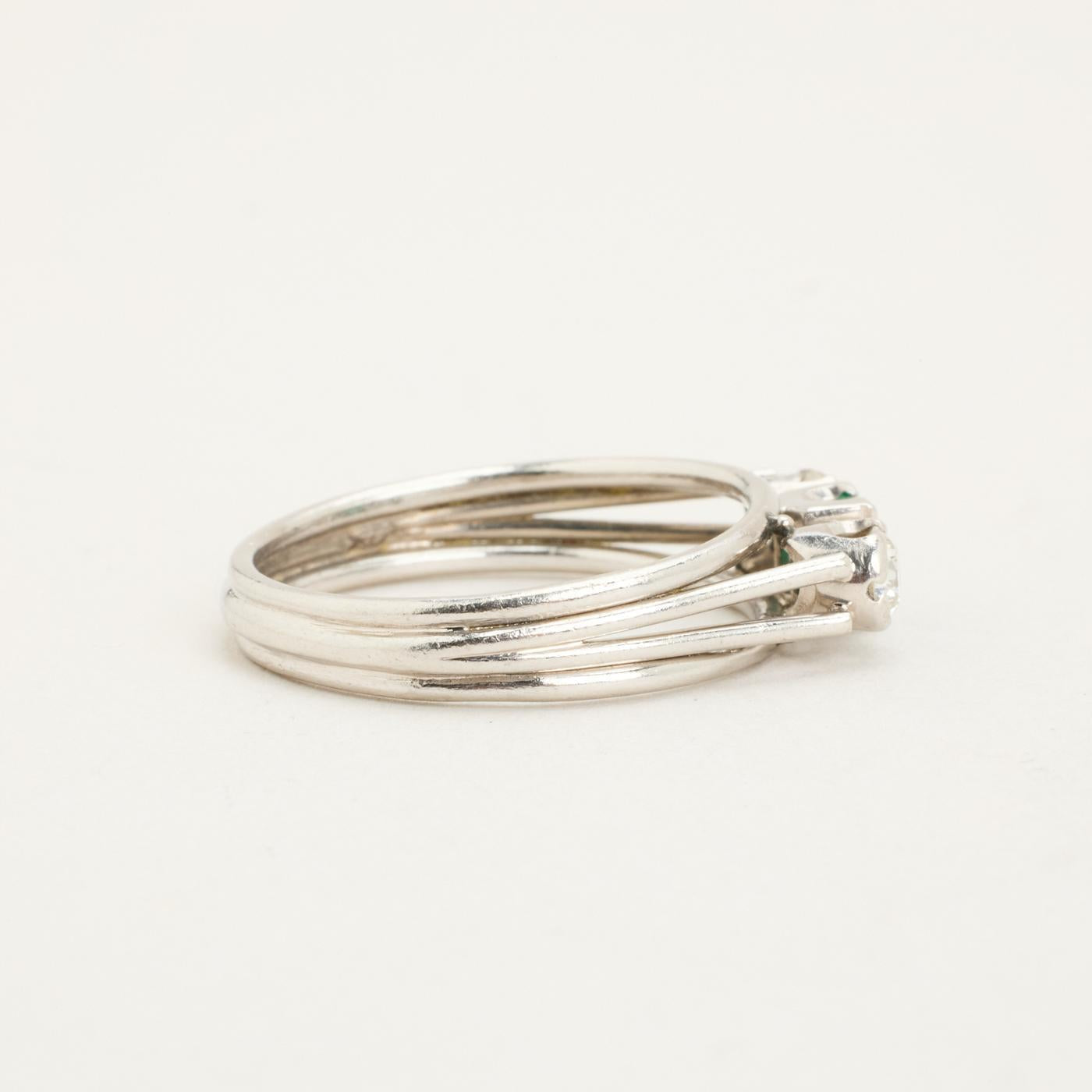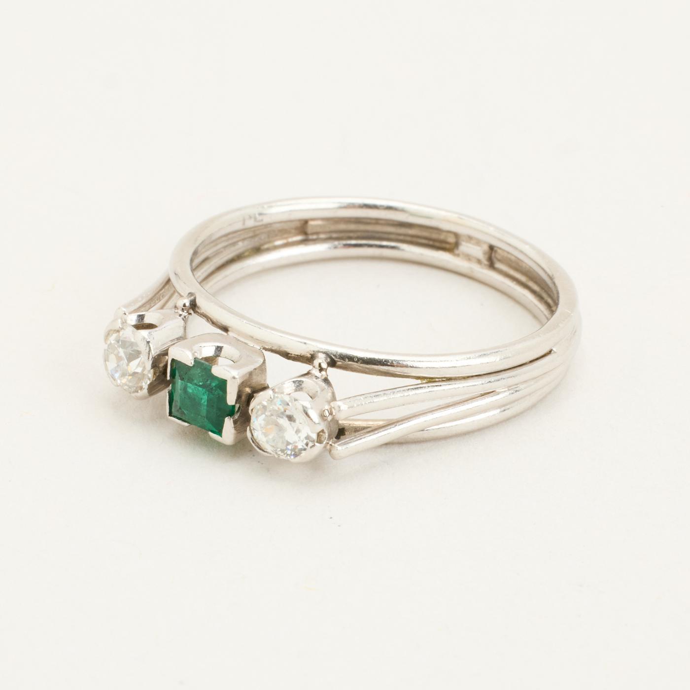 Modell: Tre stein ring med diamant (0.38 ct) i 14 karat med en smaragd str. 60 - 61