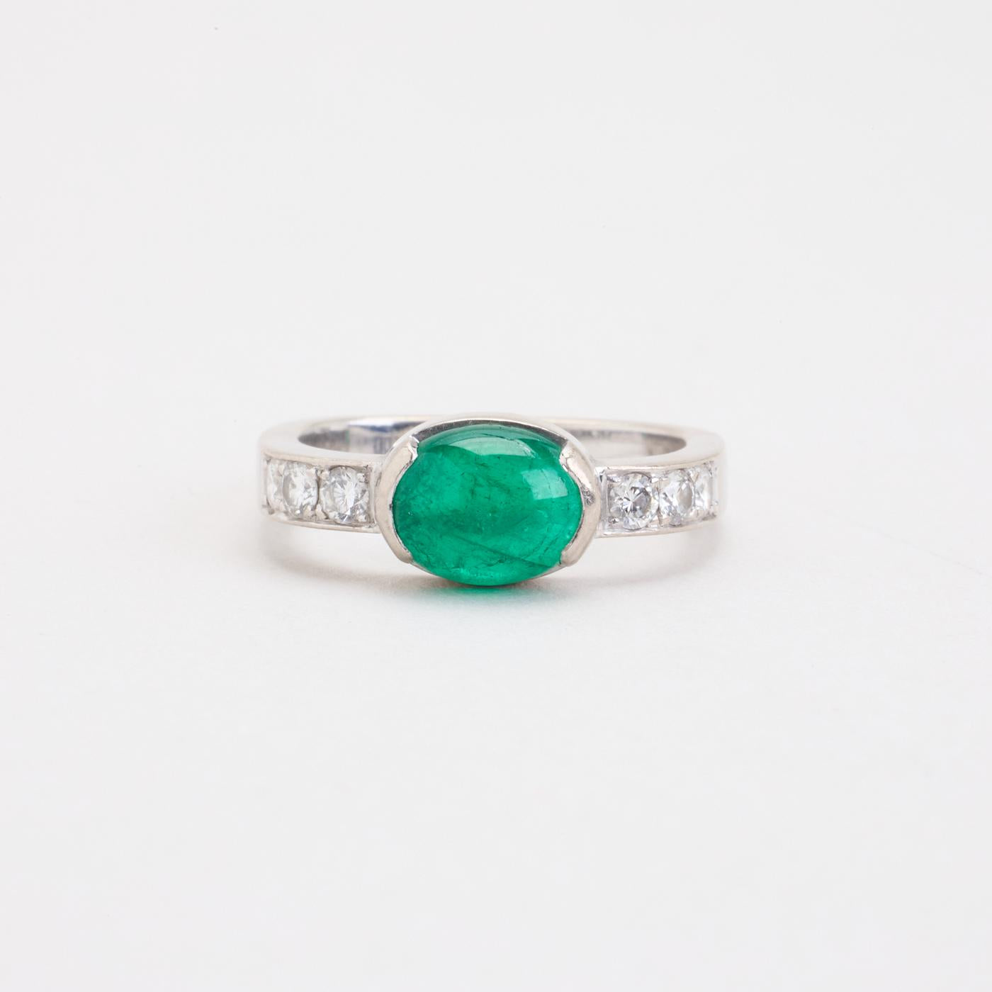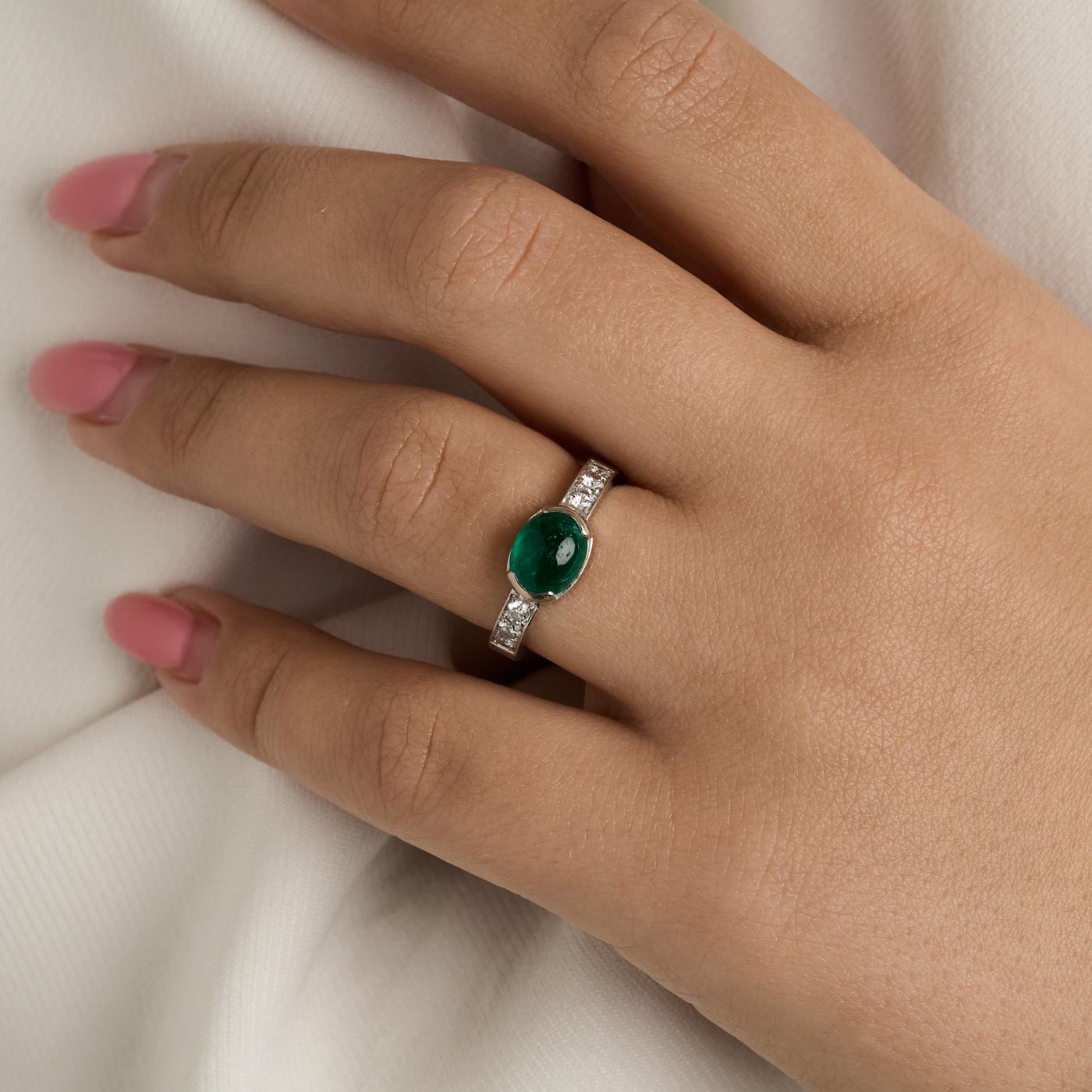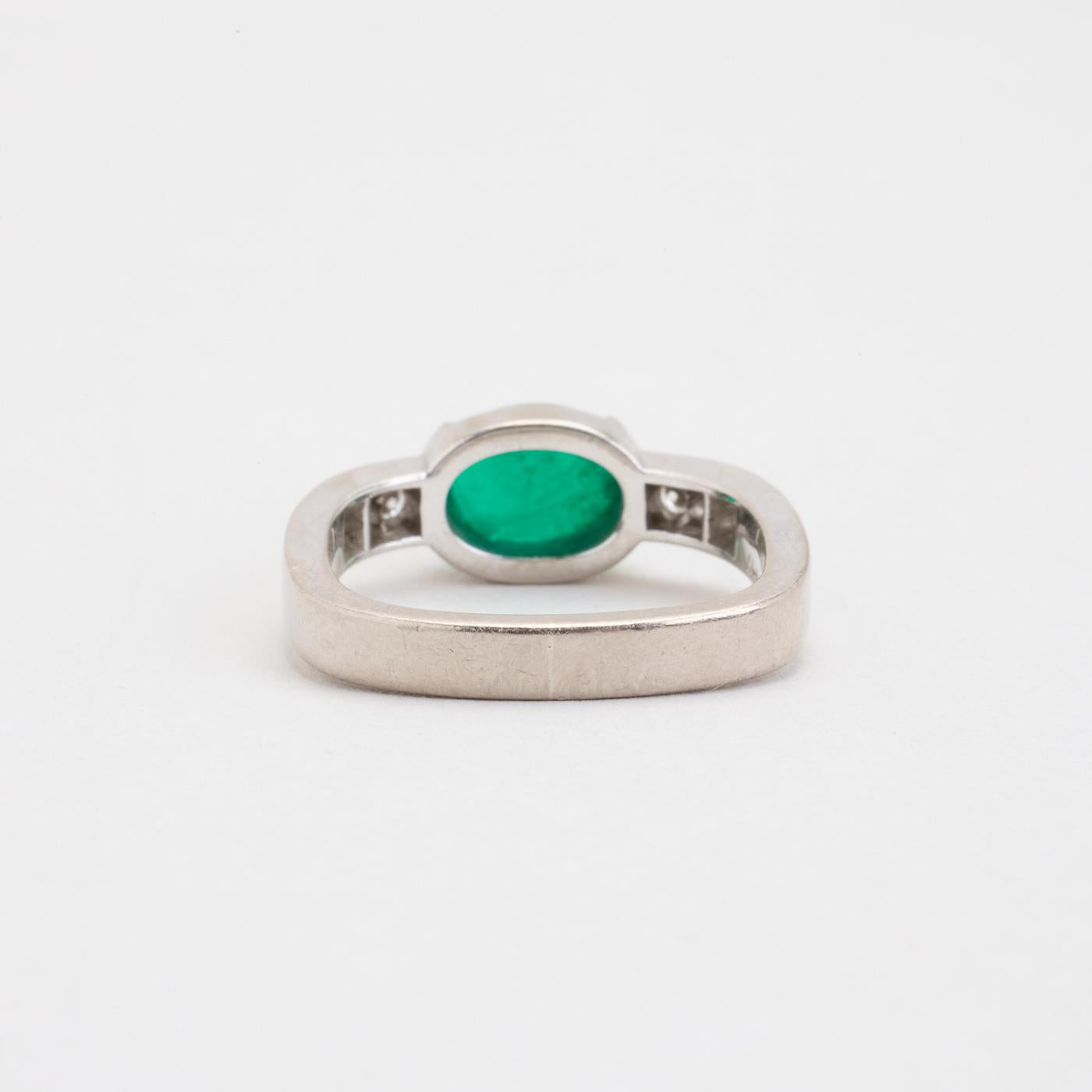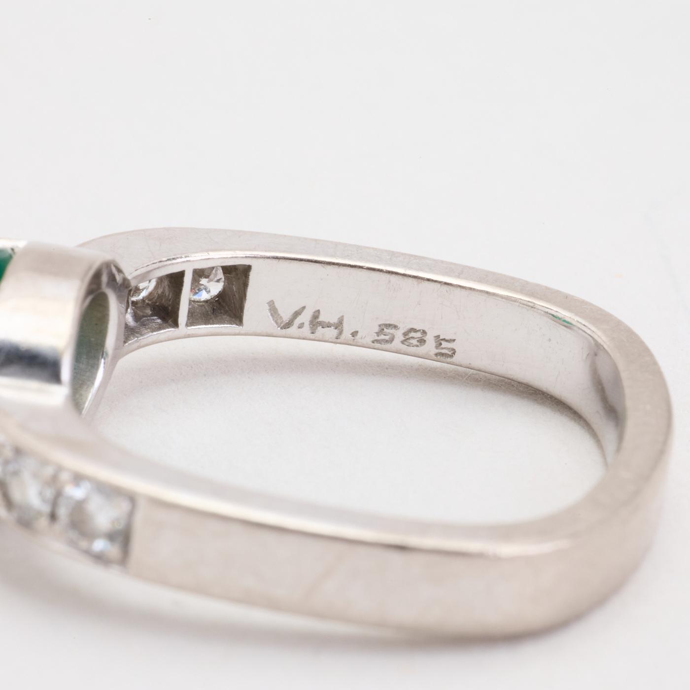 Modell: Solitairring med diamant (0.19 ct) i 14 karat med en smaragd str. 52