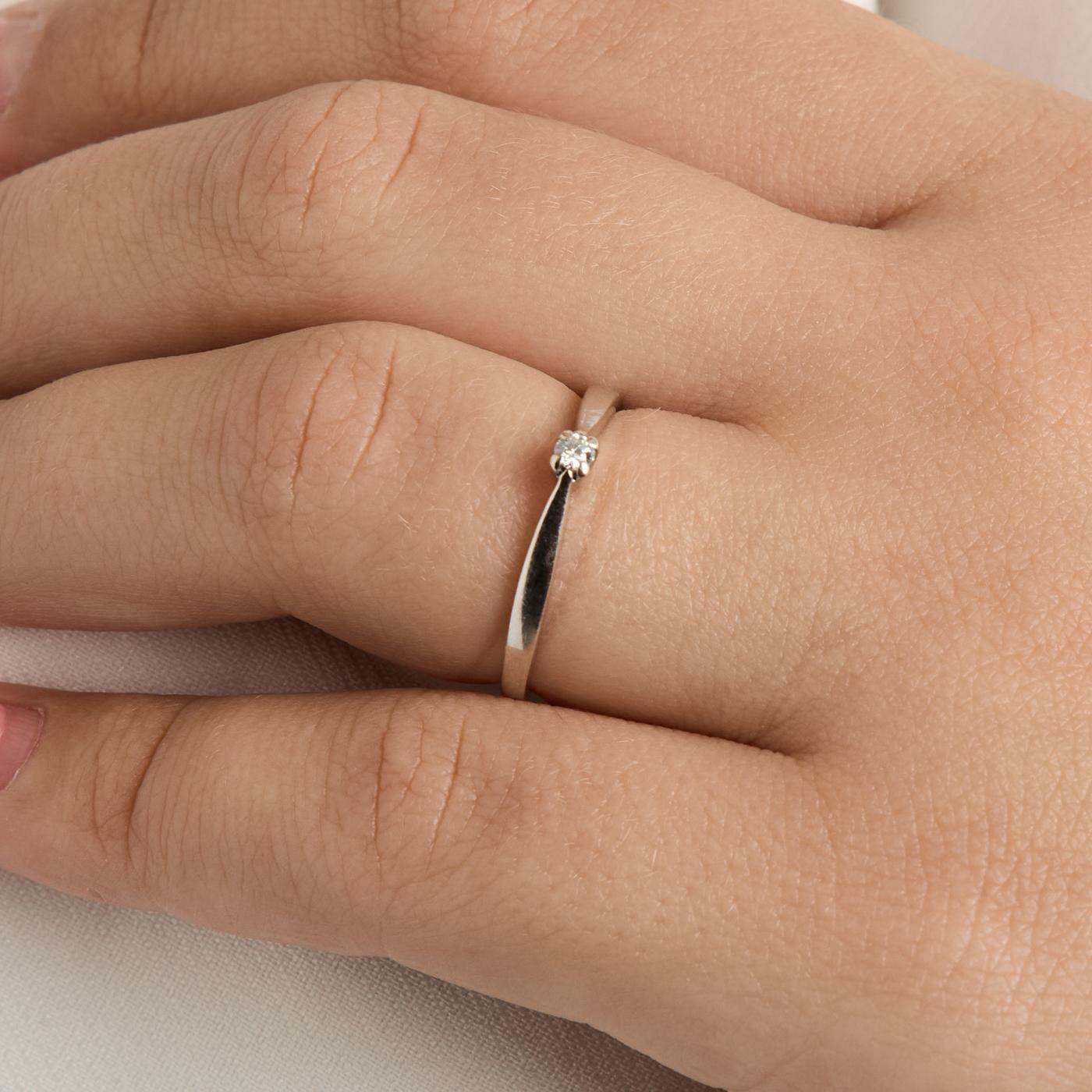 Modell: Solitairring med diamant (0.05 ct) i 14 karat str. 54