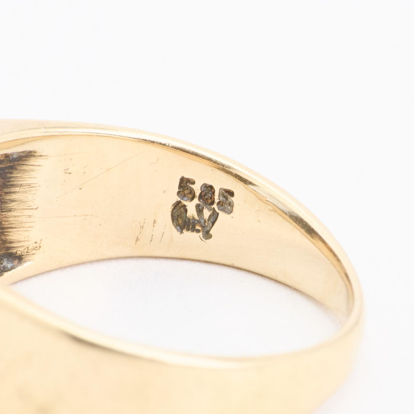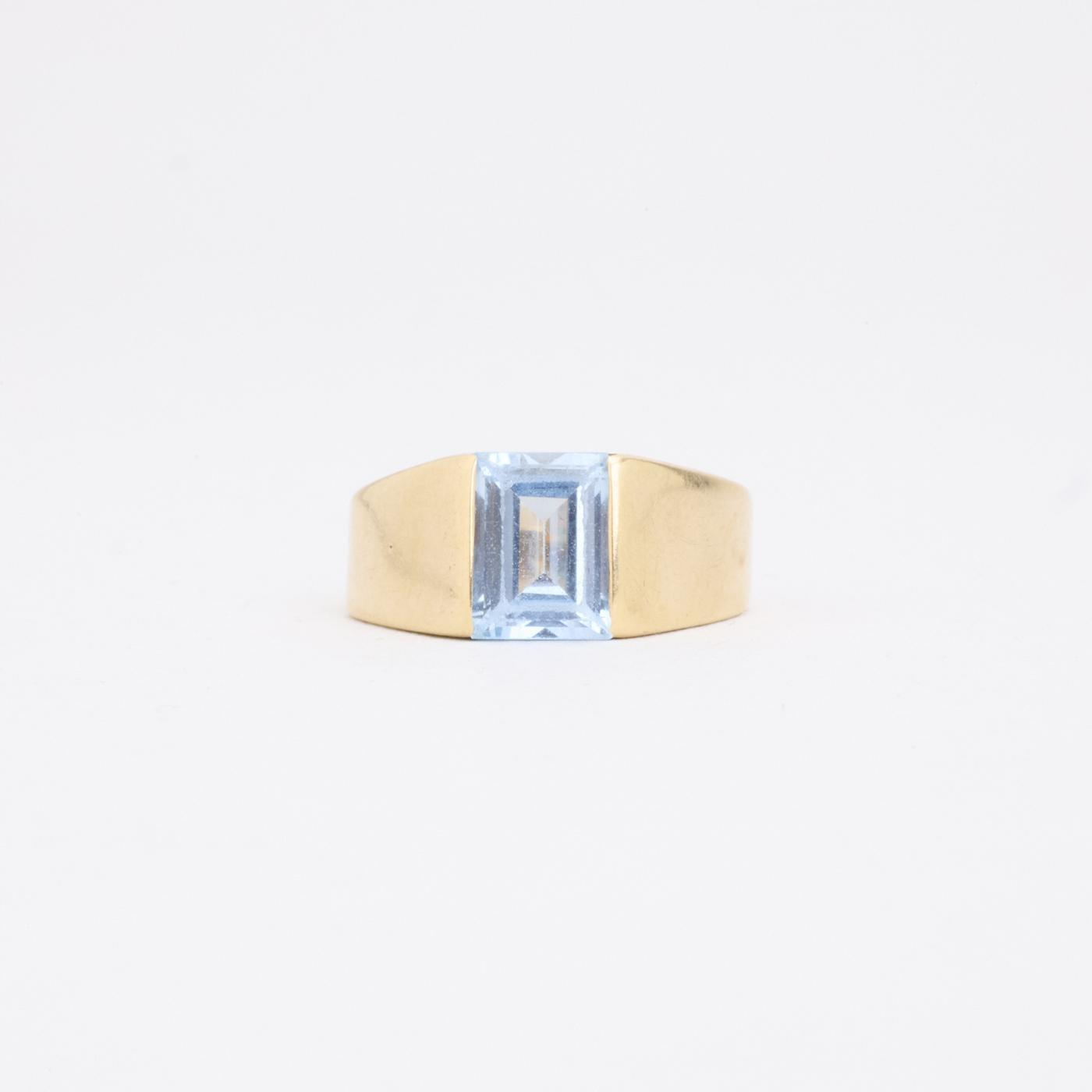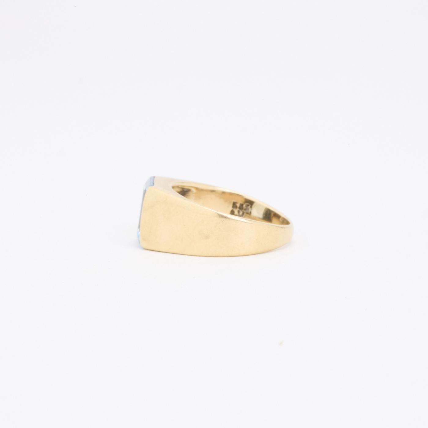 Modell: Signaturring i 14 karat med en syntetisk spinel str. 48