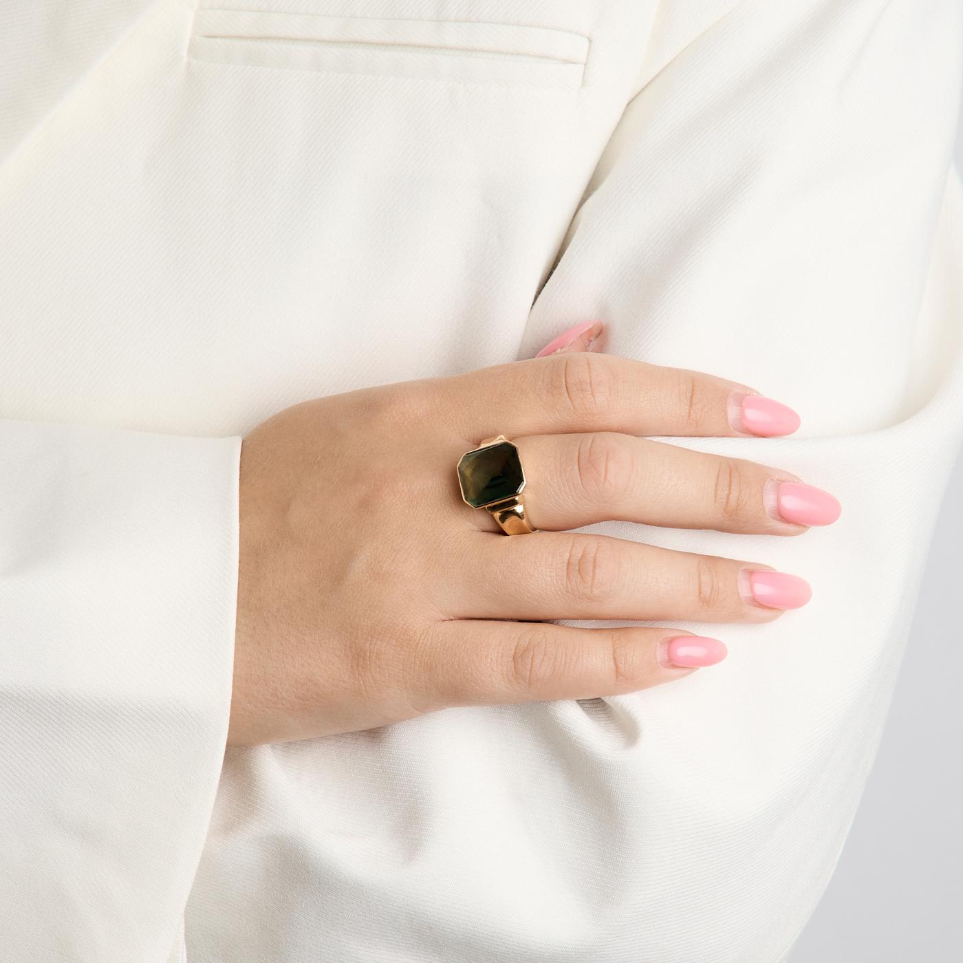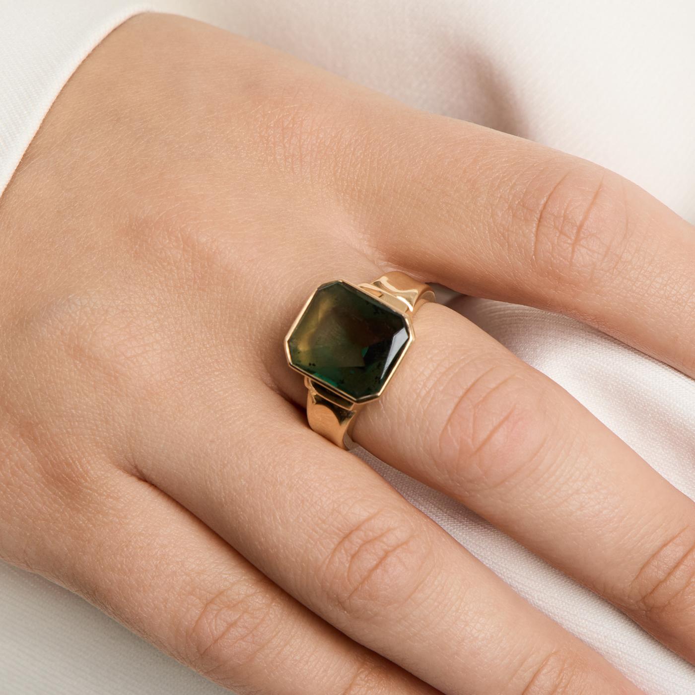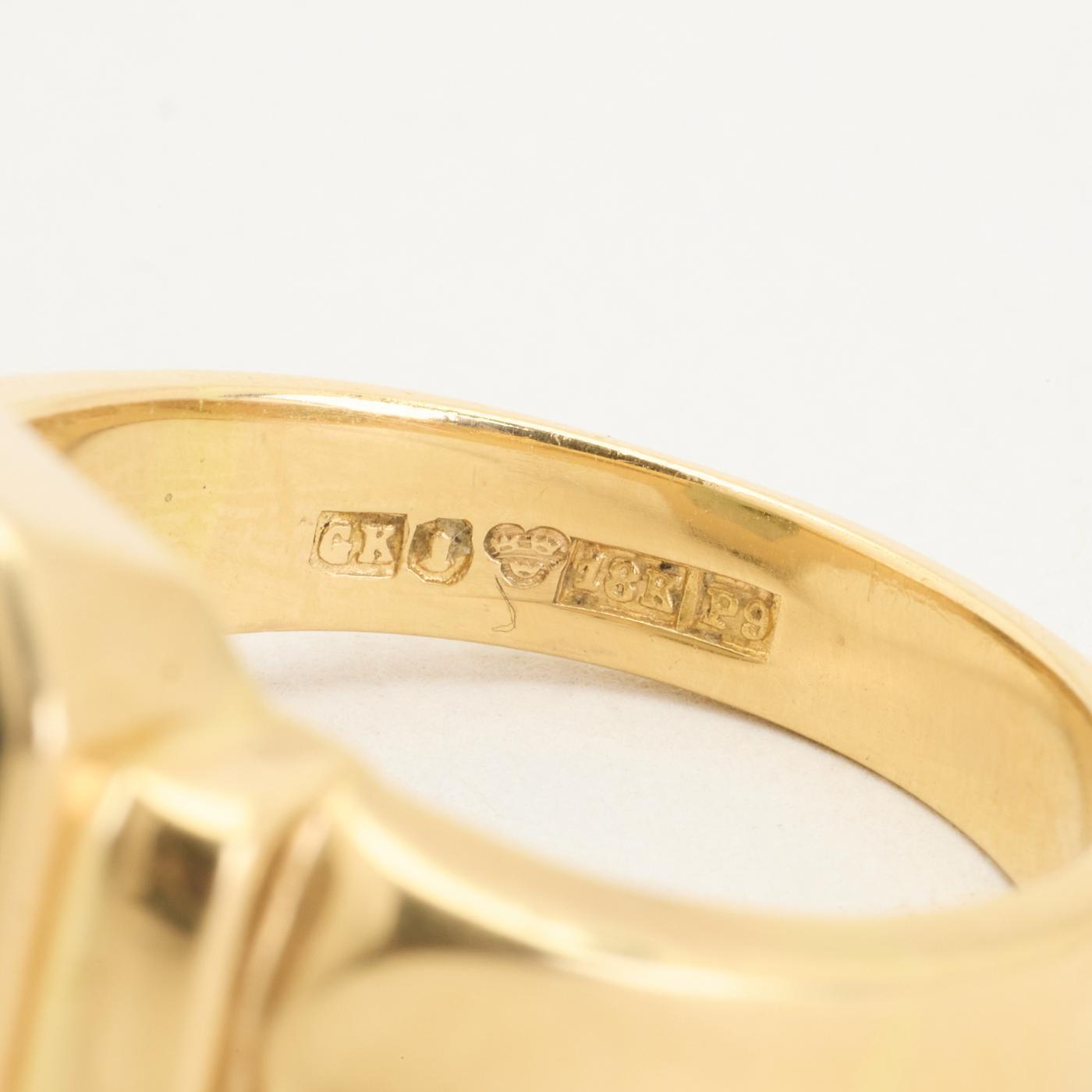 Modell: Signaturring i 18 karat med en syntetisk spinel str. 60