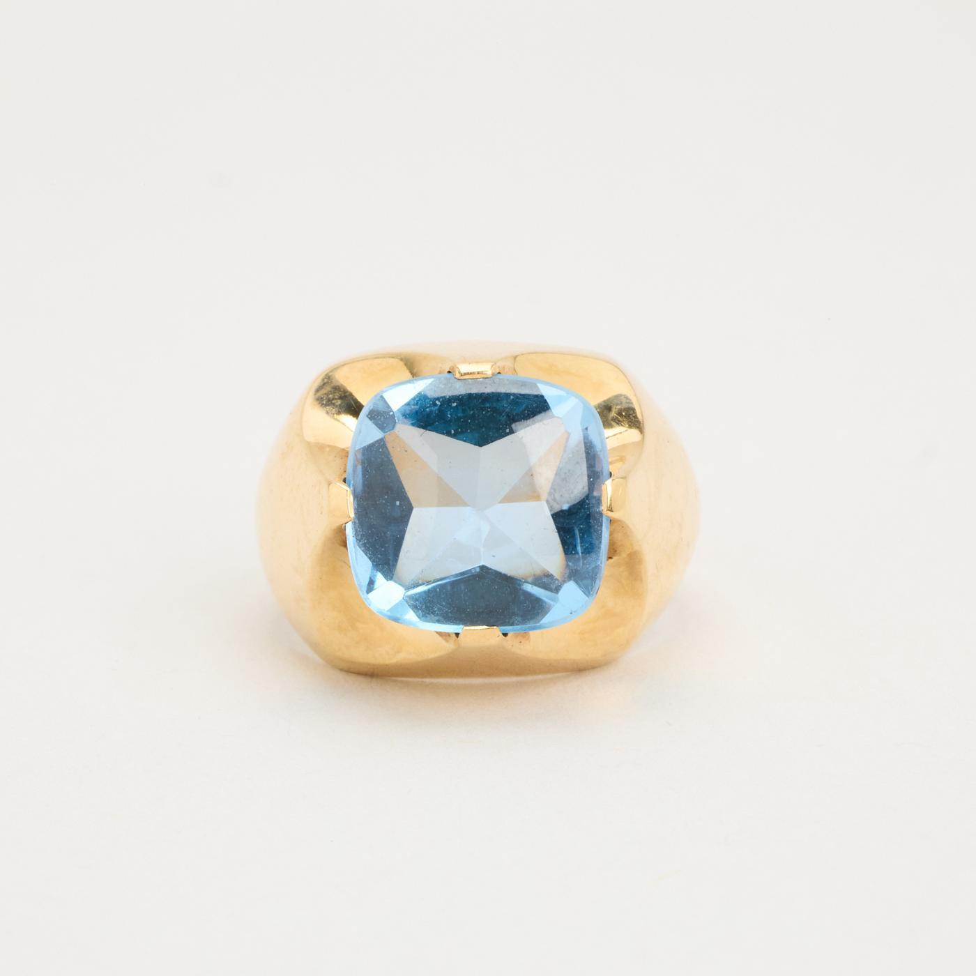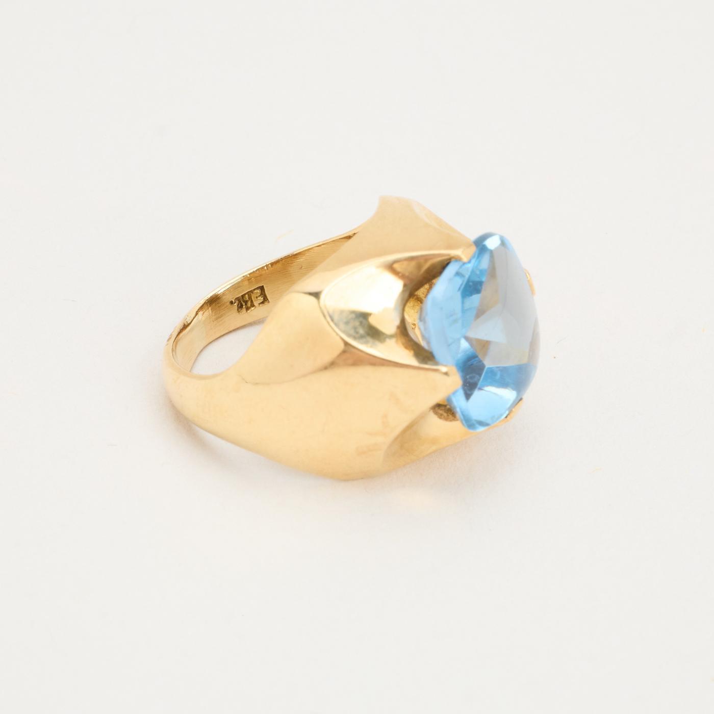 Modell: Signaturring i 14 karat med en syntetisk spinel str. 44