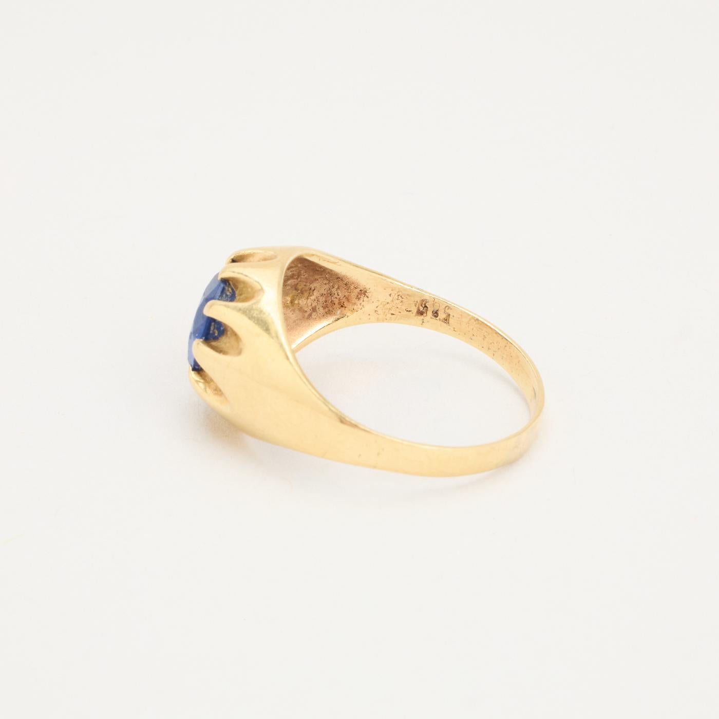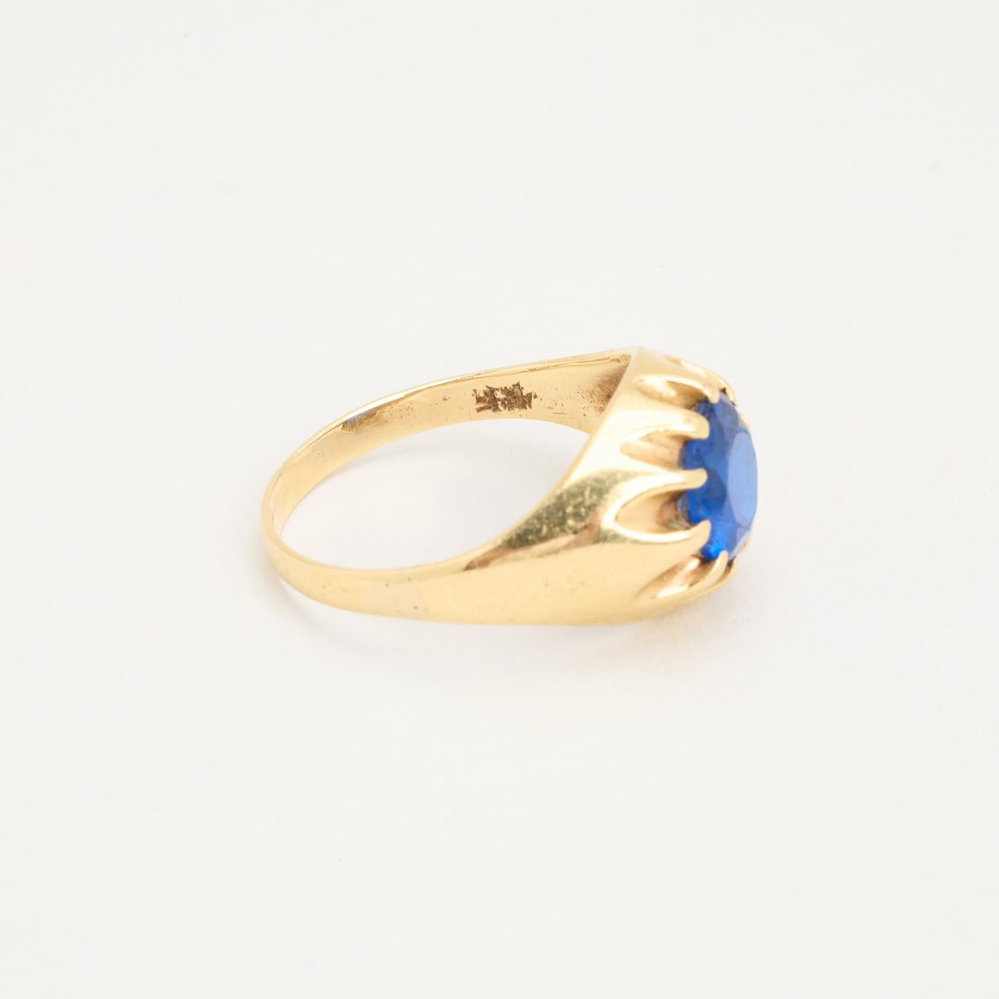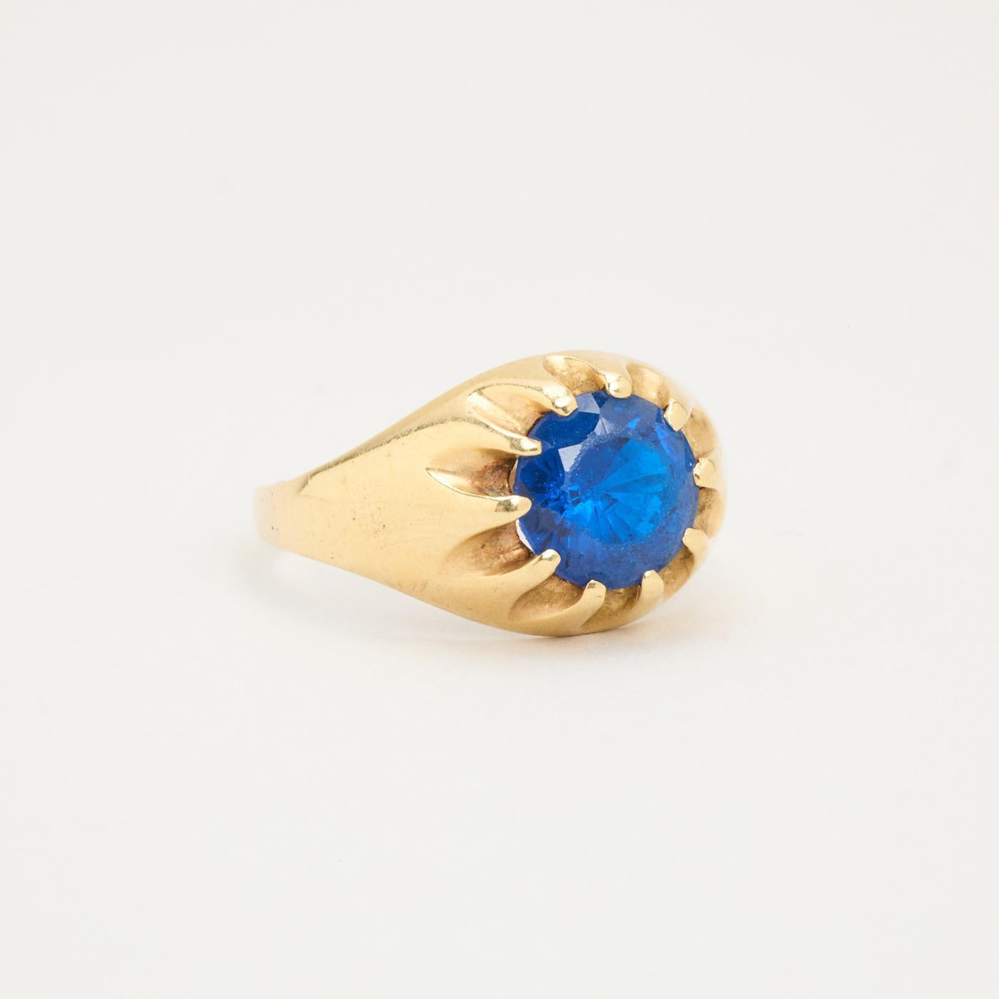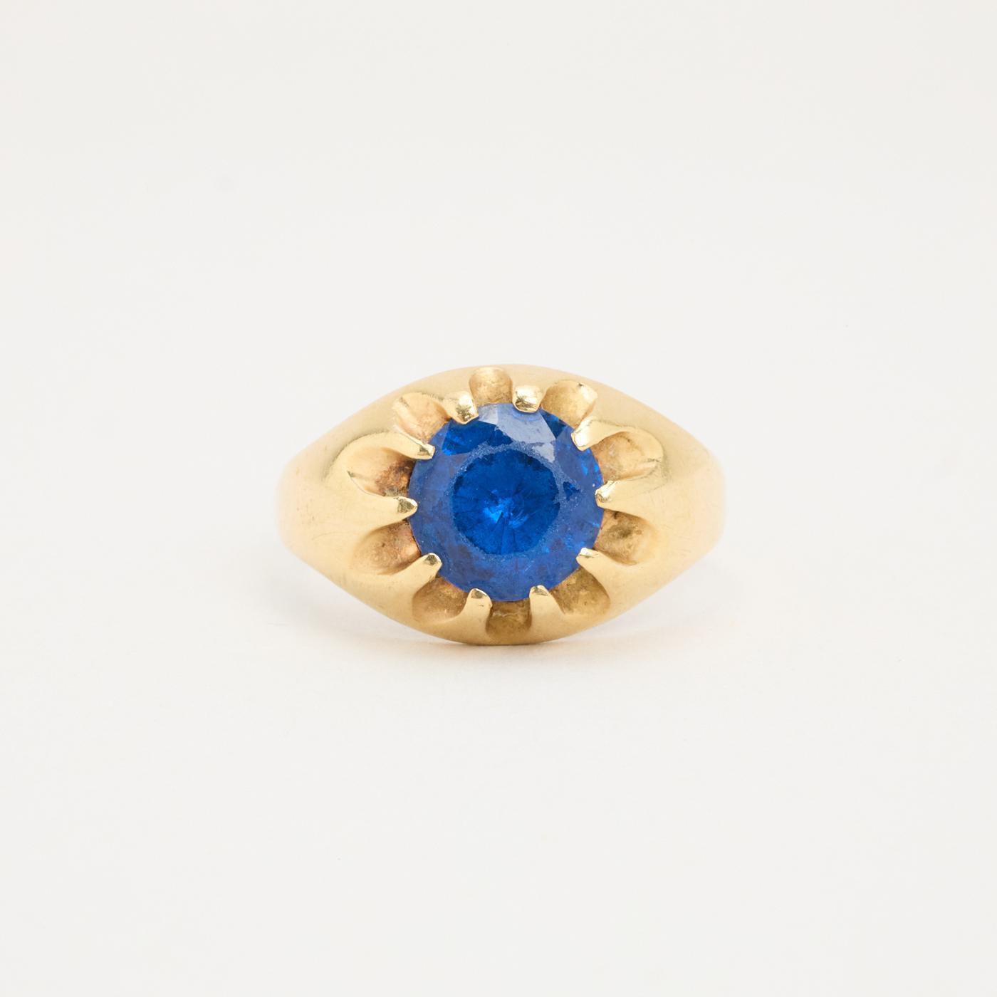 Gypsyring i 14 karat med en syntetisk spinel str. 56