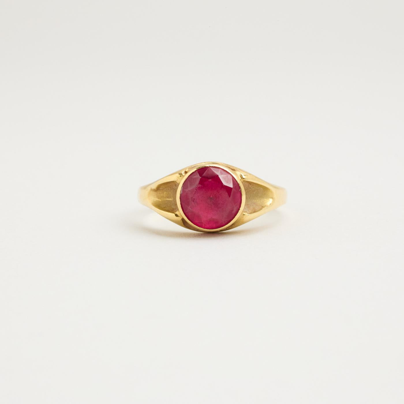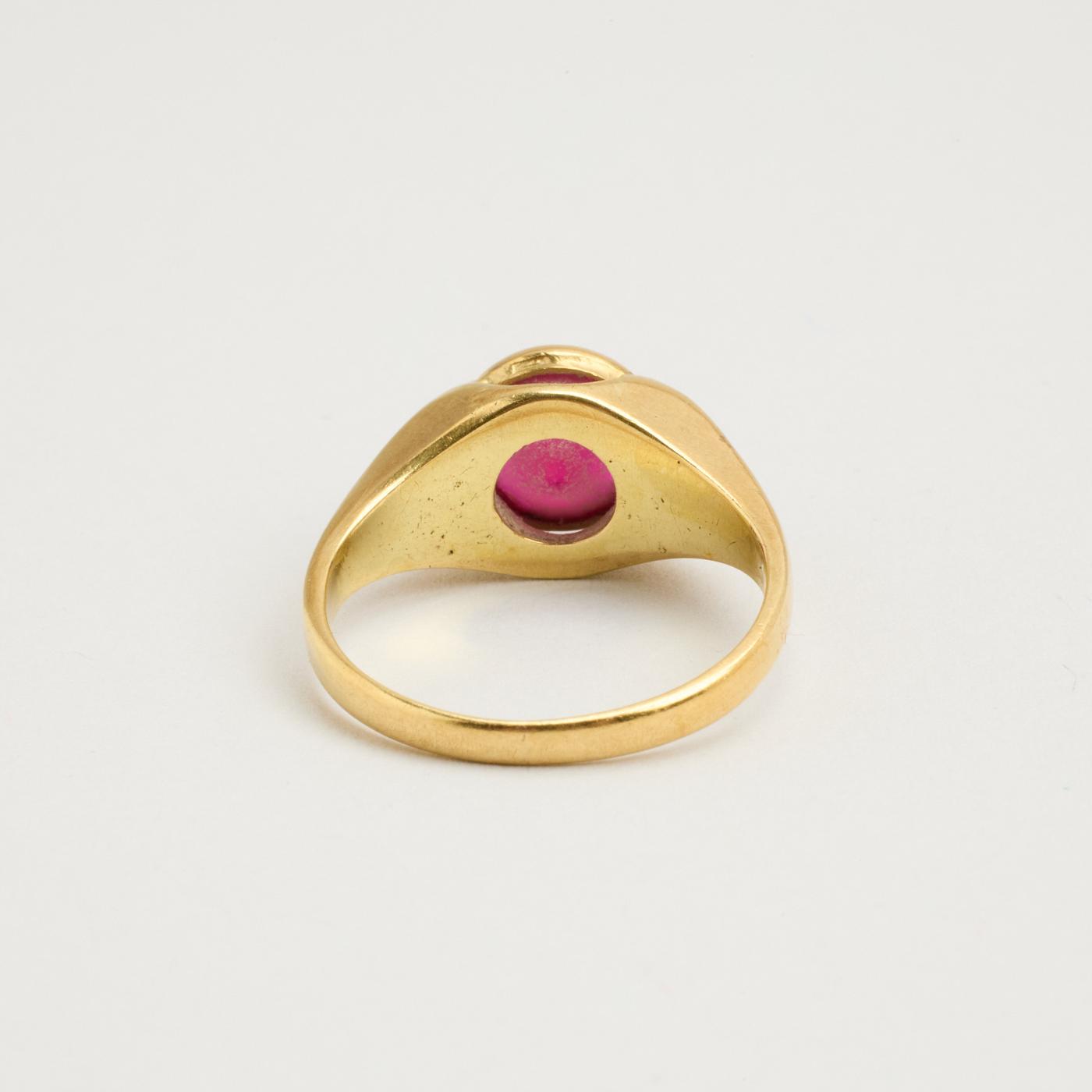 Modell: Uttalelse ring i 14 karat med en syntetisk rubin str. 53
