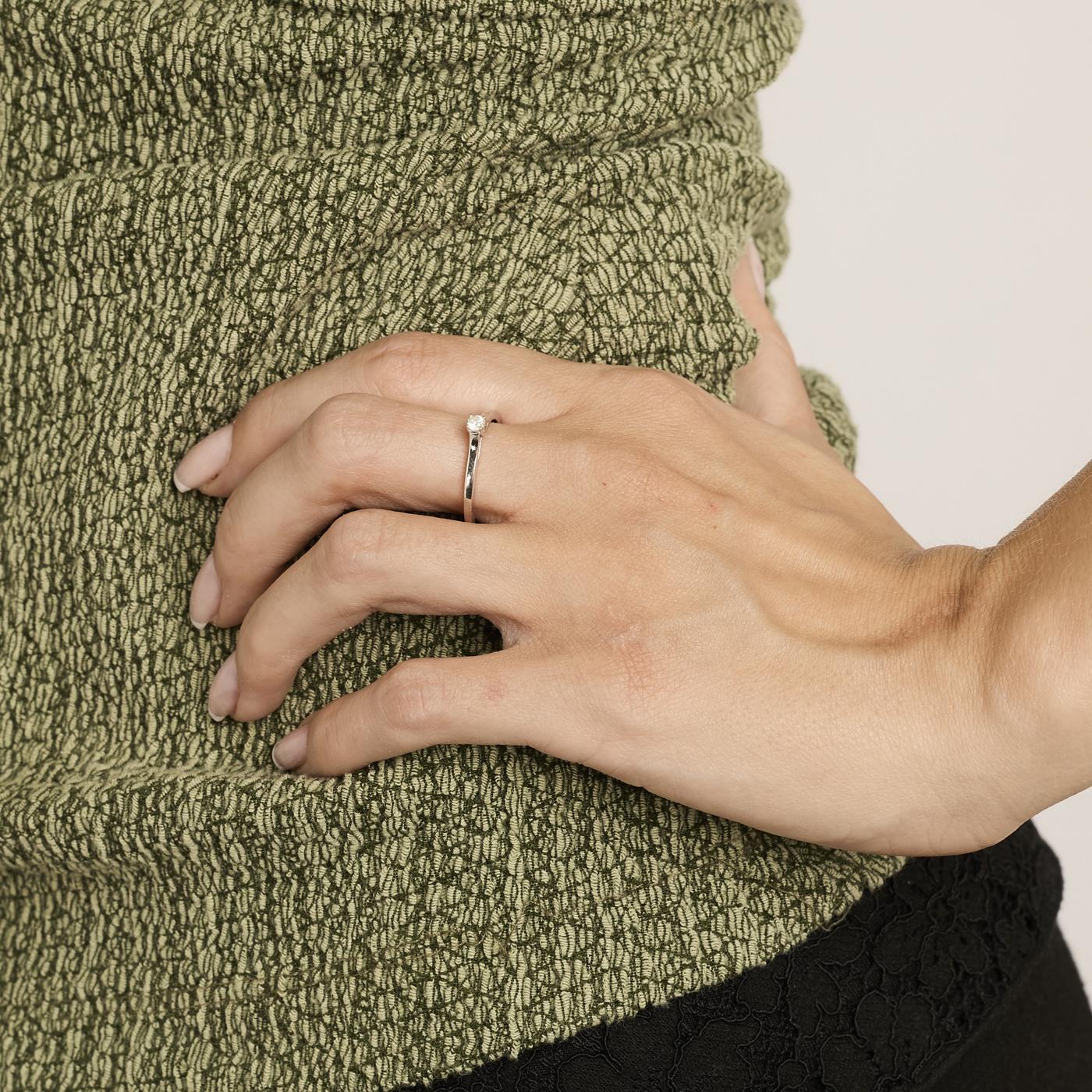 Solitairring med diamant (0.11 ct) i 14 karat str. 56